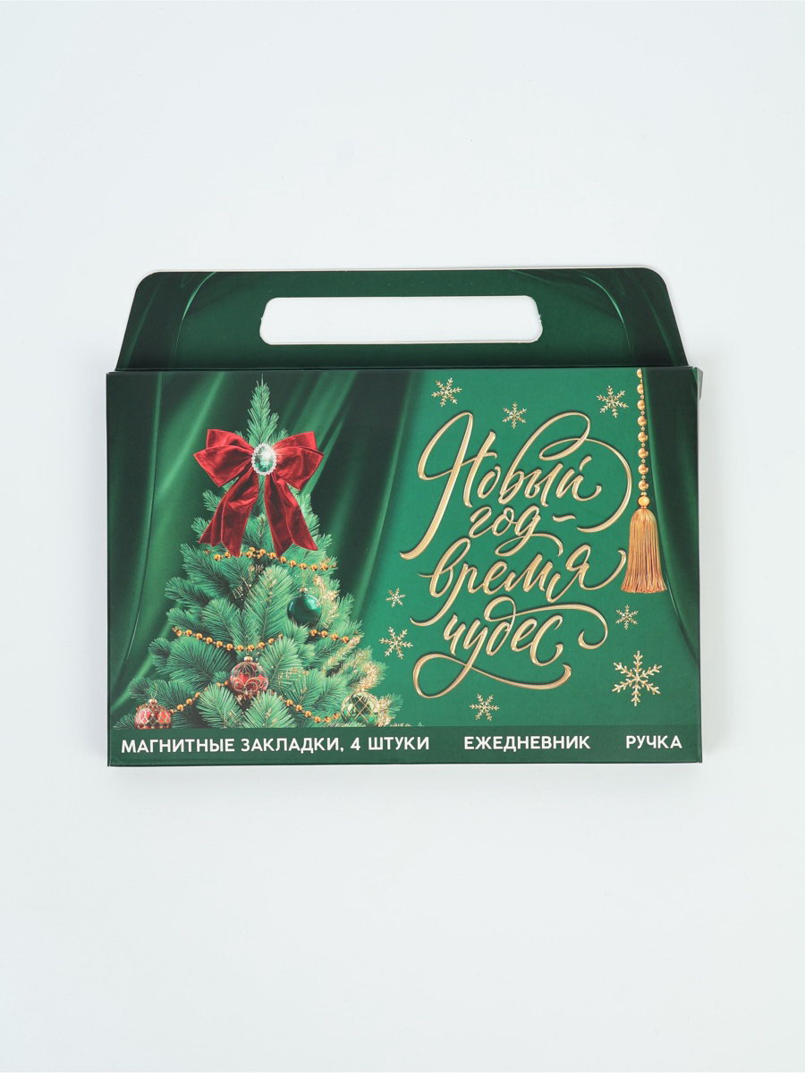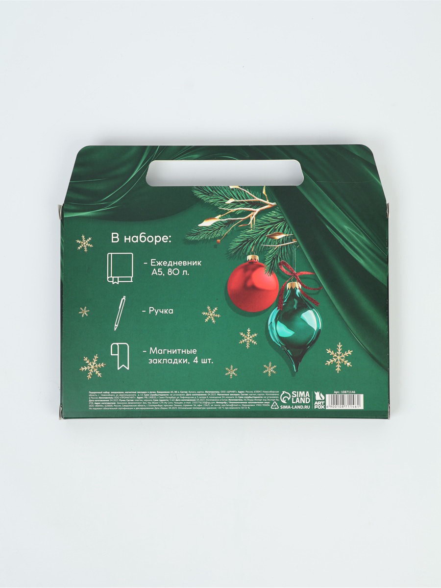 Подарочный набор новогодний в портфеле "Время чудес", ежедневник А5, магнитные закладки и ручка, ArtFox, Россия