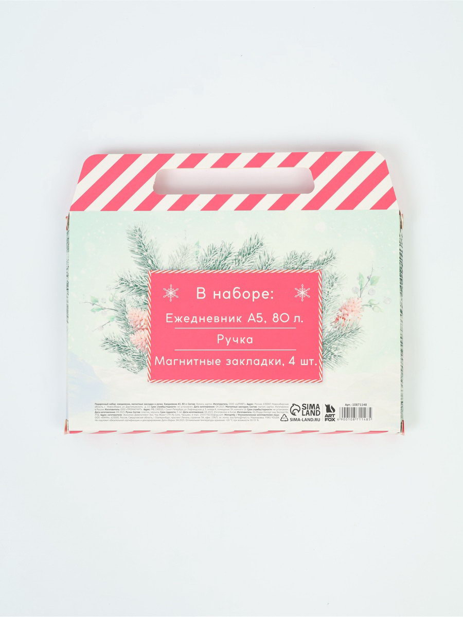 Подарочный набор новогодний в портфеле "Волшебного нового года", ежедневник А5, магнитные закладки и ручка, ArtFox, Россия