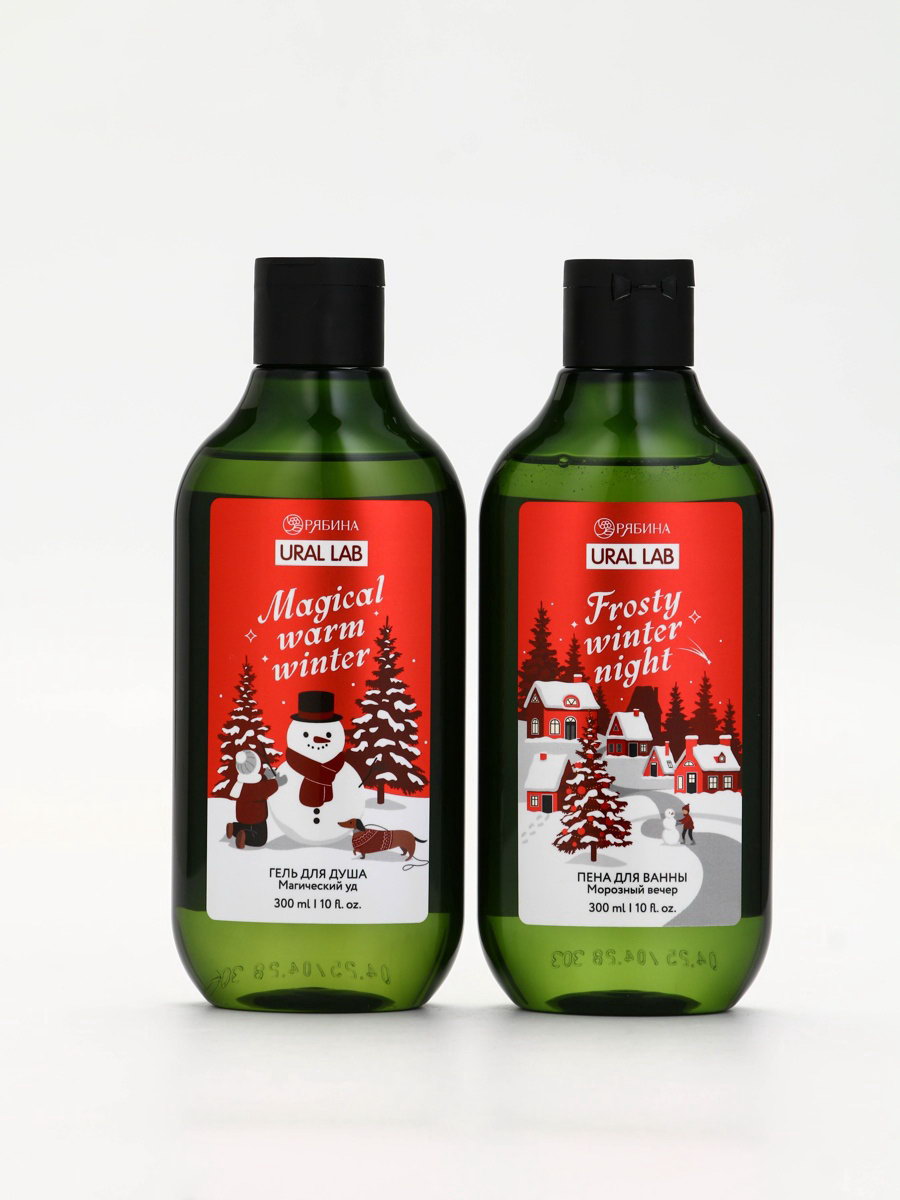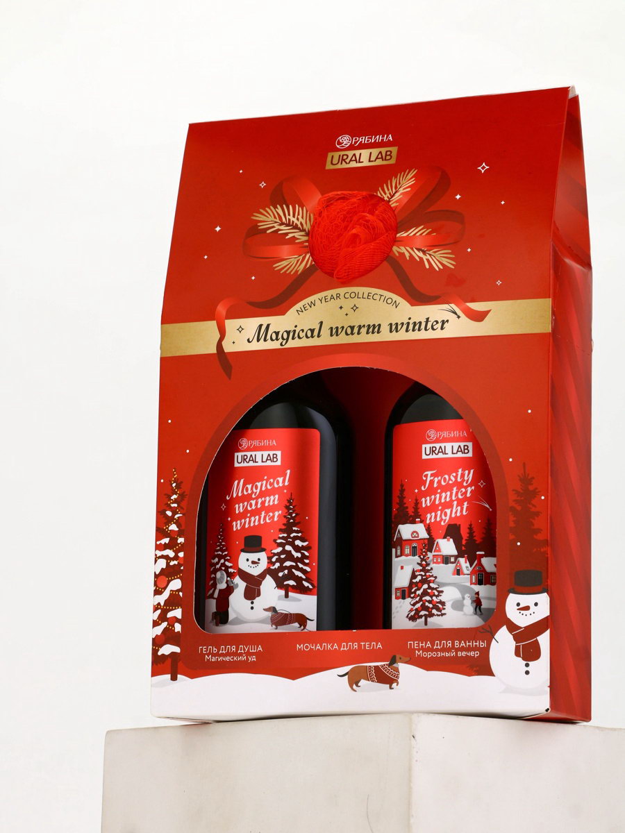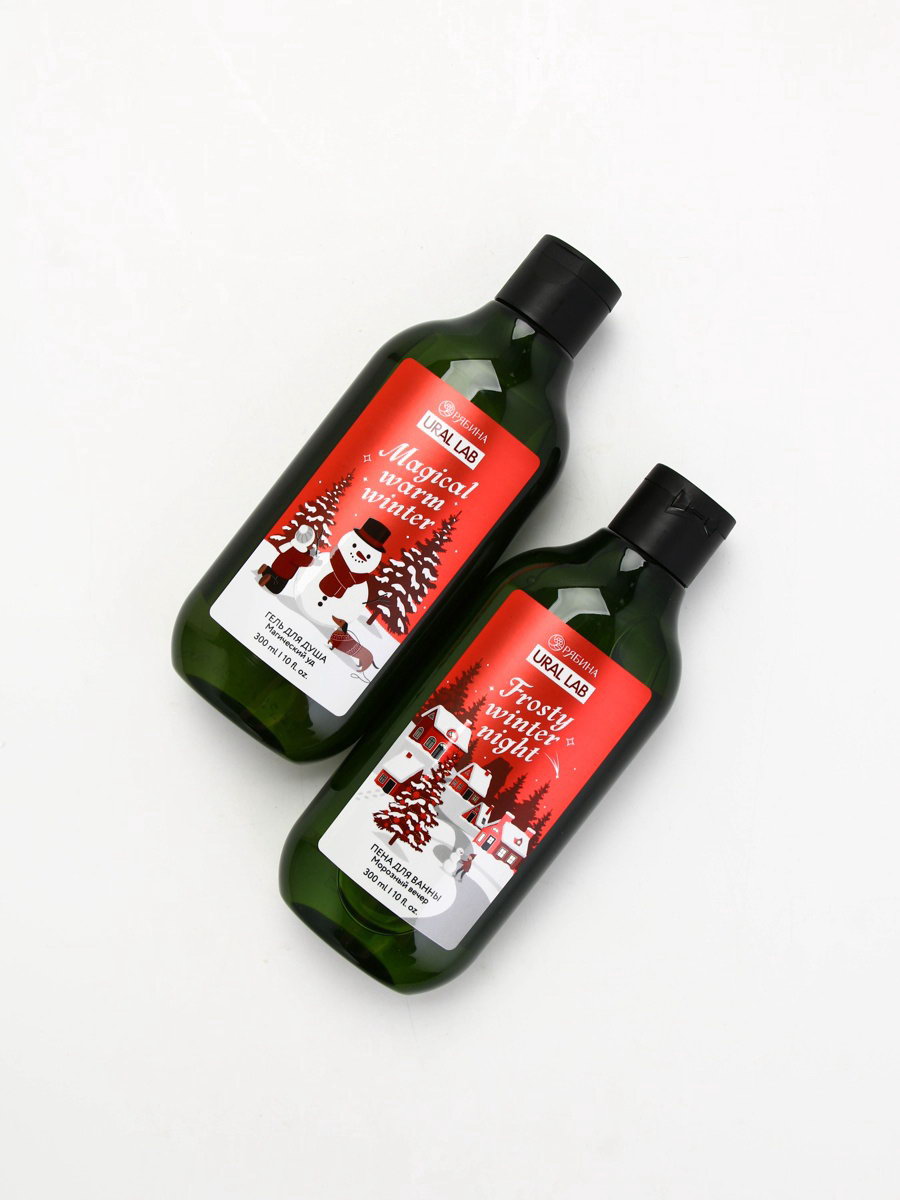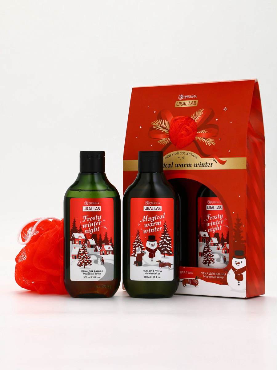 Подарочный набор новогодний: гель для душа, пена для ванны и мочалка, URAL LAB, Россия