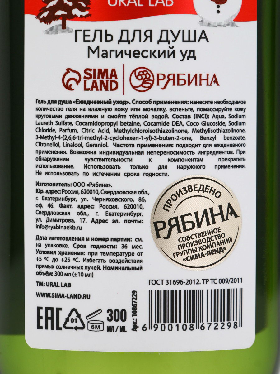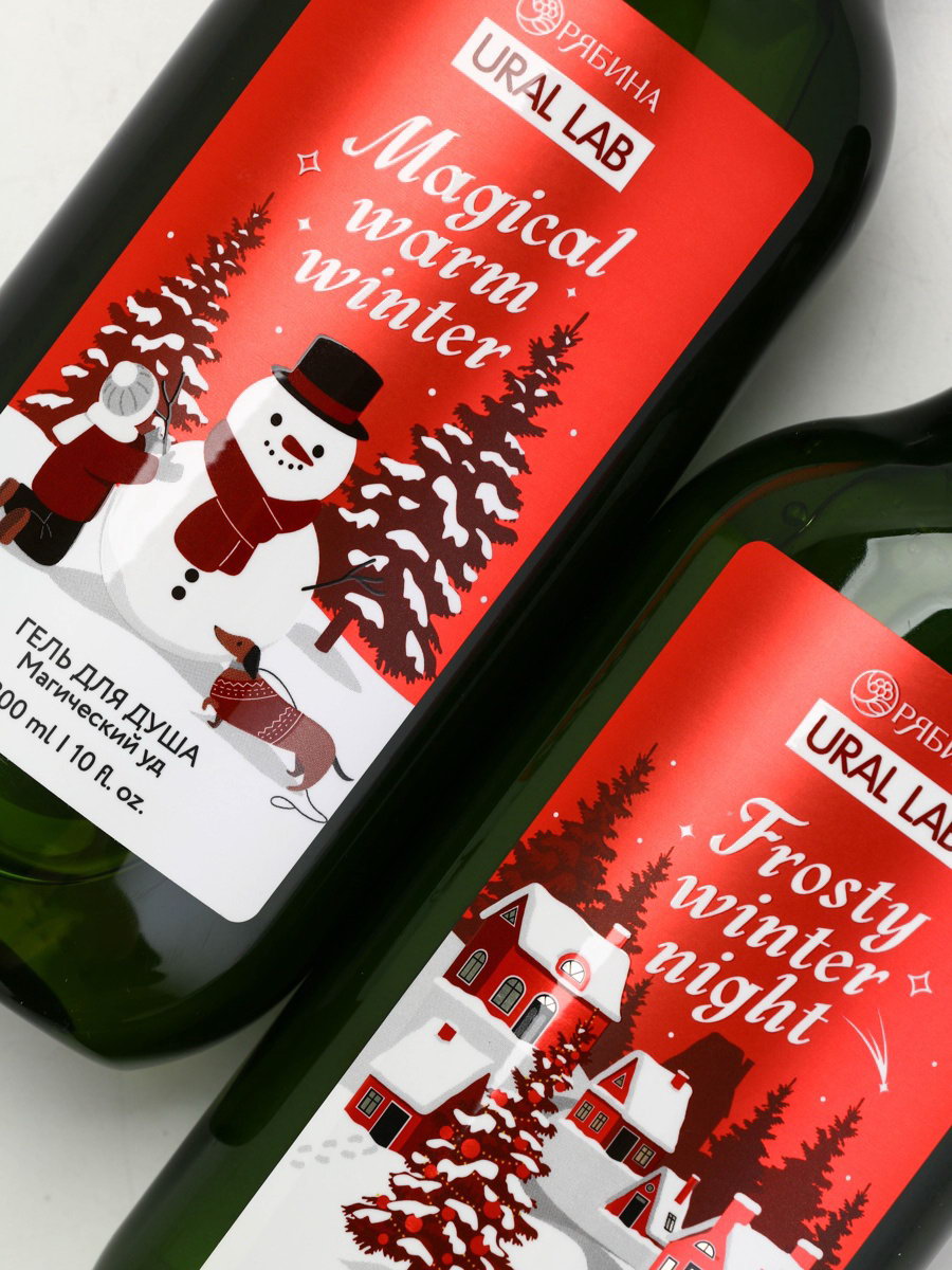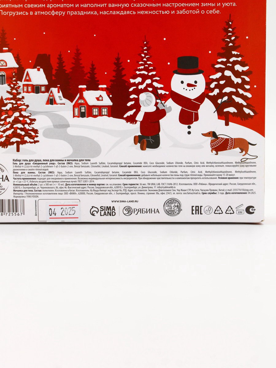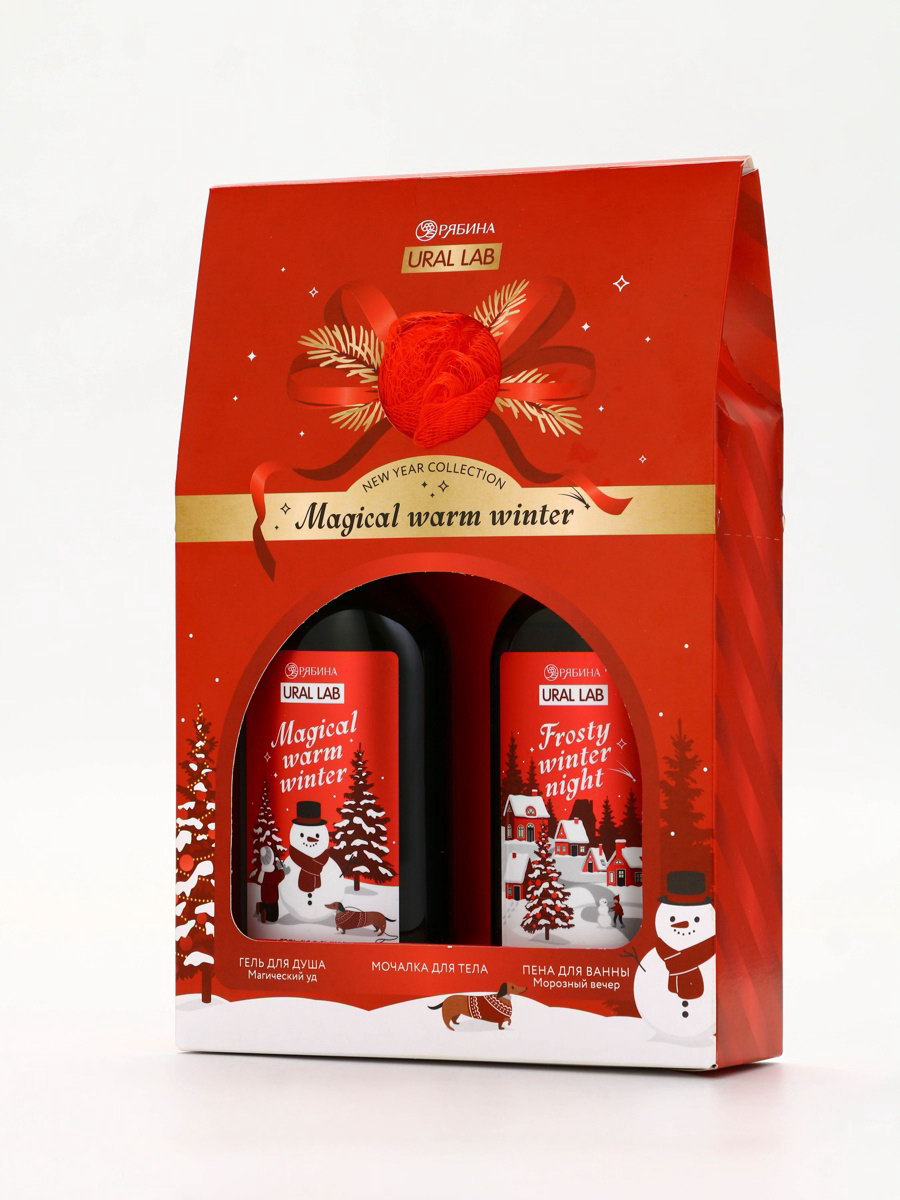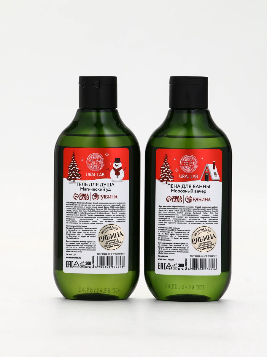 Подарочный набор новогодний: гель для душа, пена для ванны и мочалка, URAL LAB, Россия
