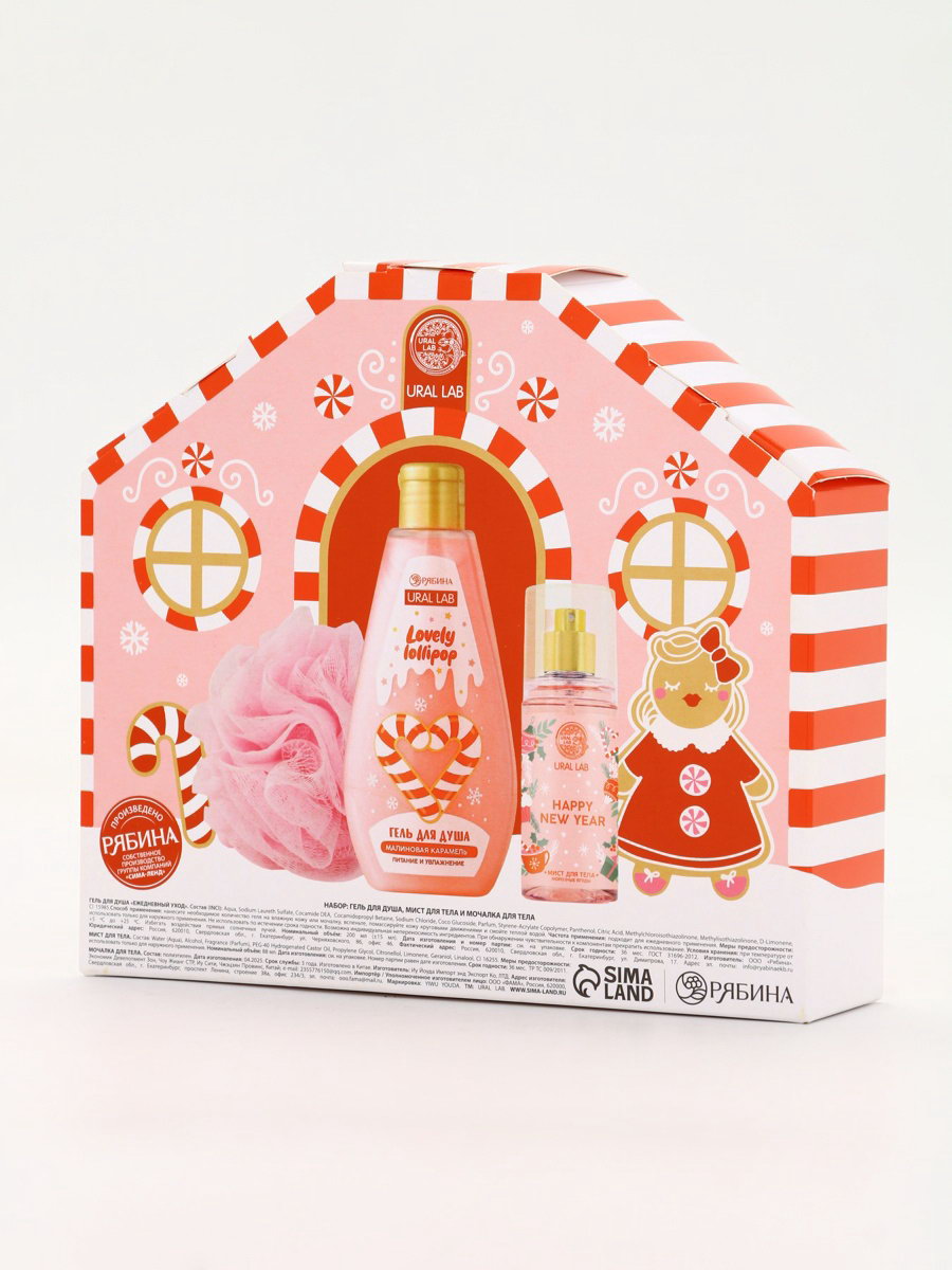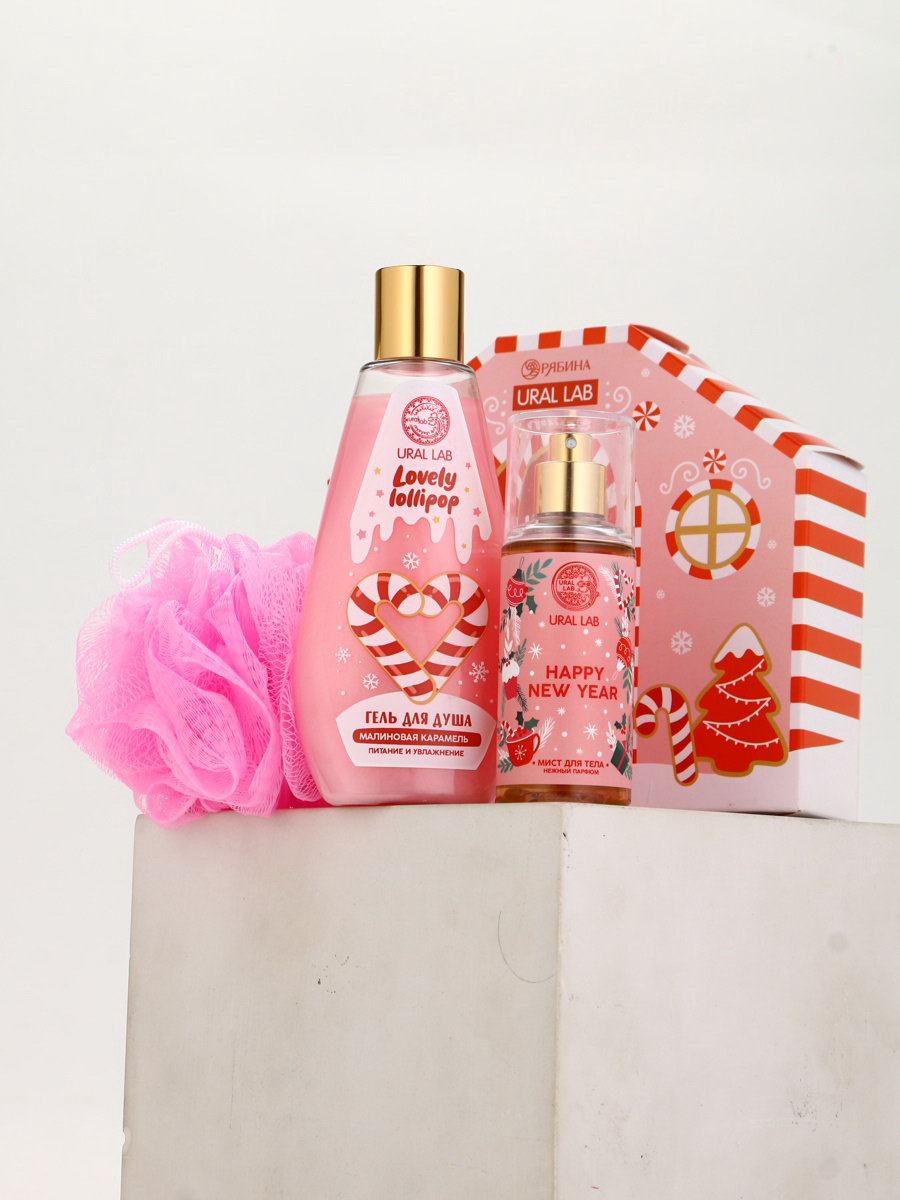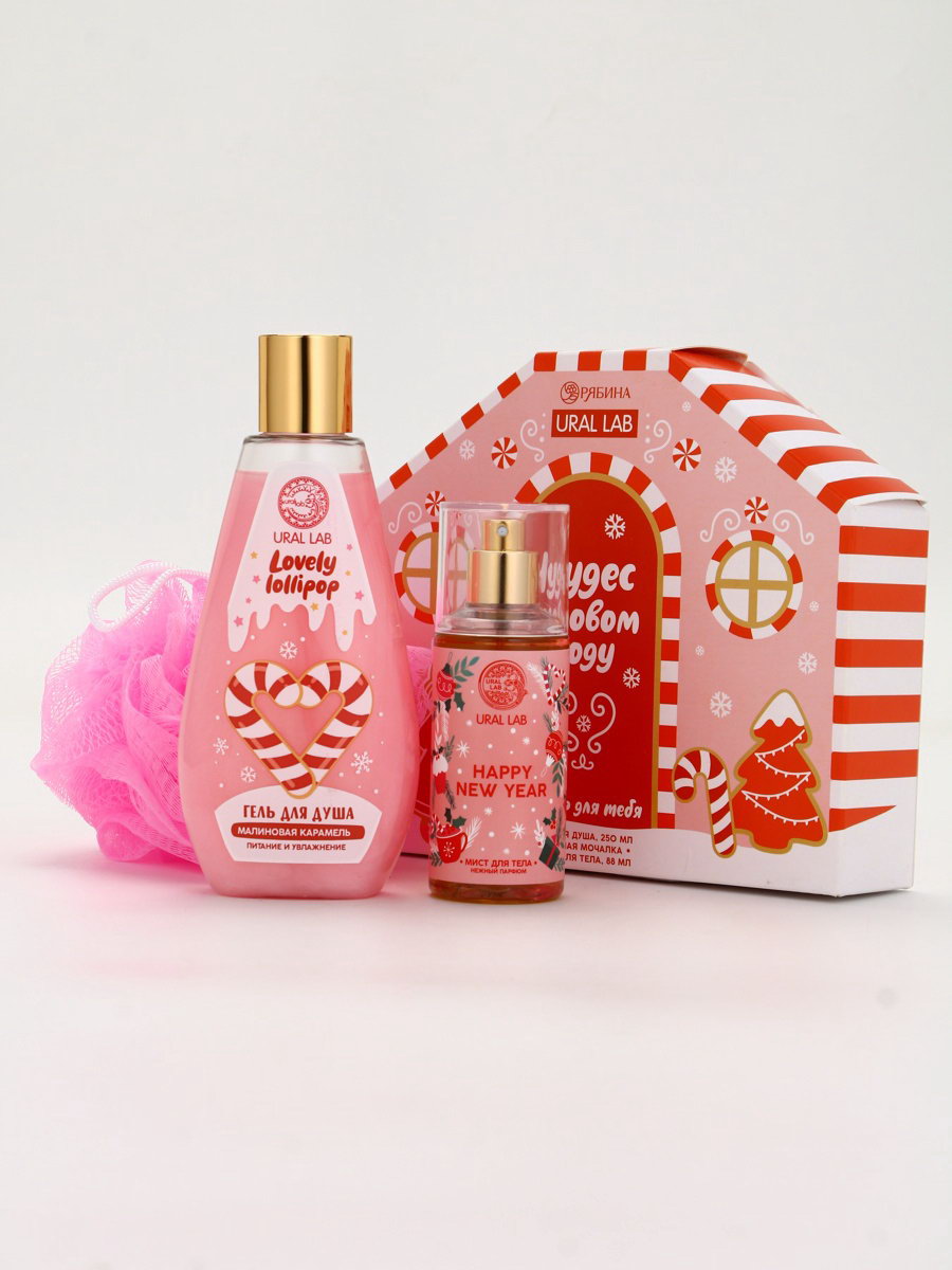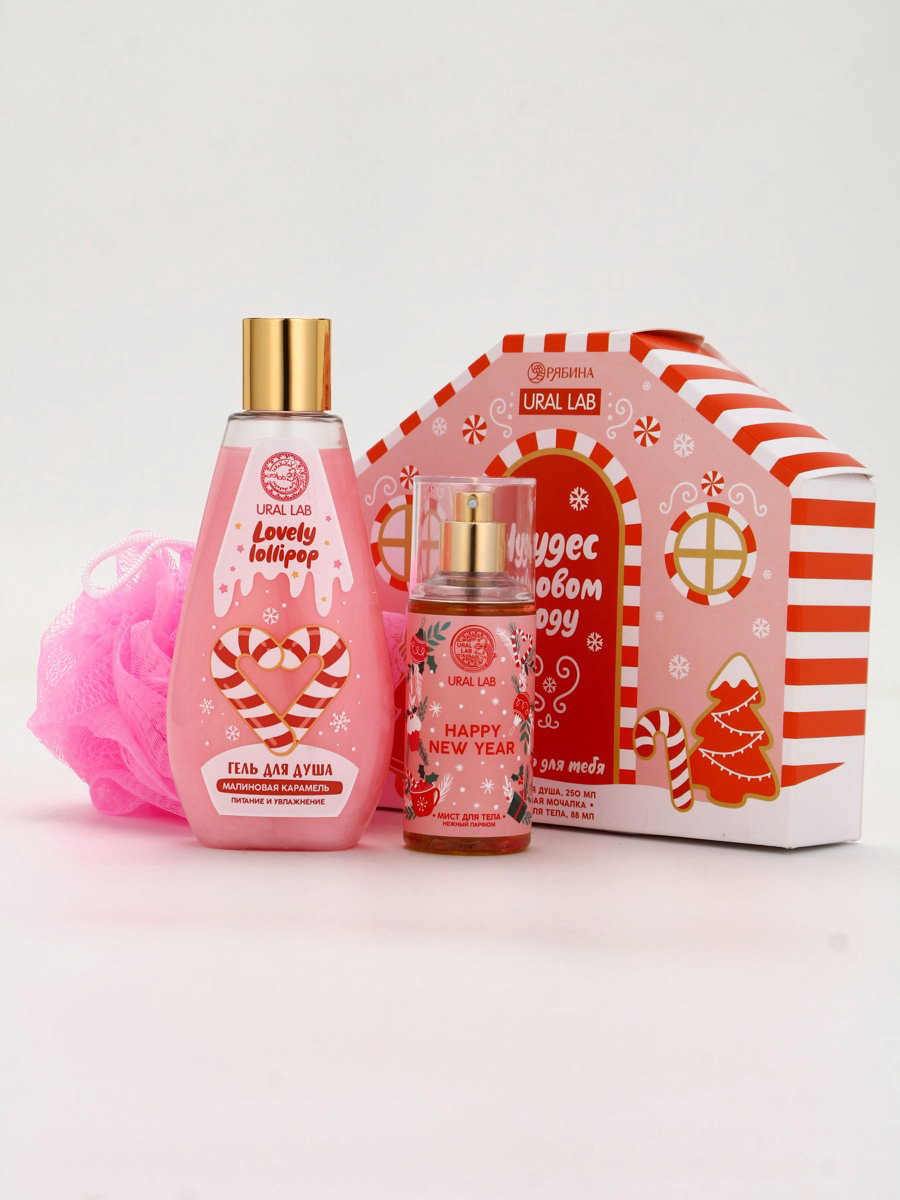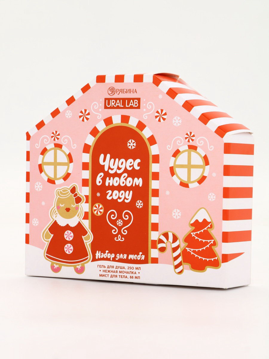 Подарочный набор новогодний "Чудес в Новом году", гель для душа, мочалка и мист, URAL LAB, Россия