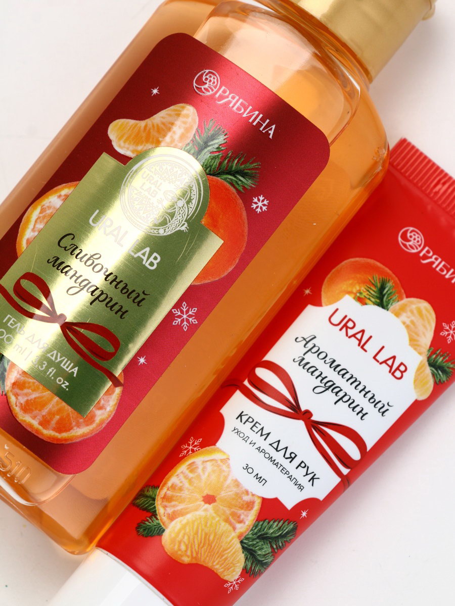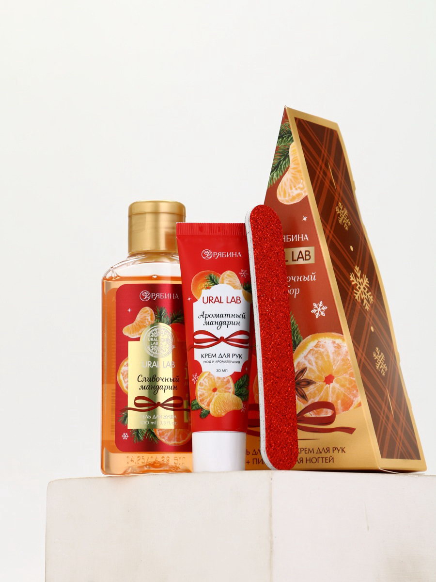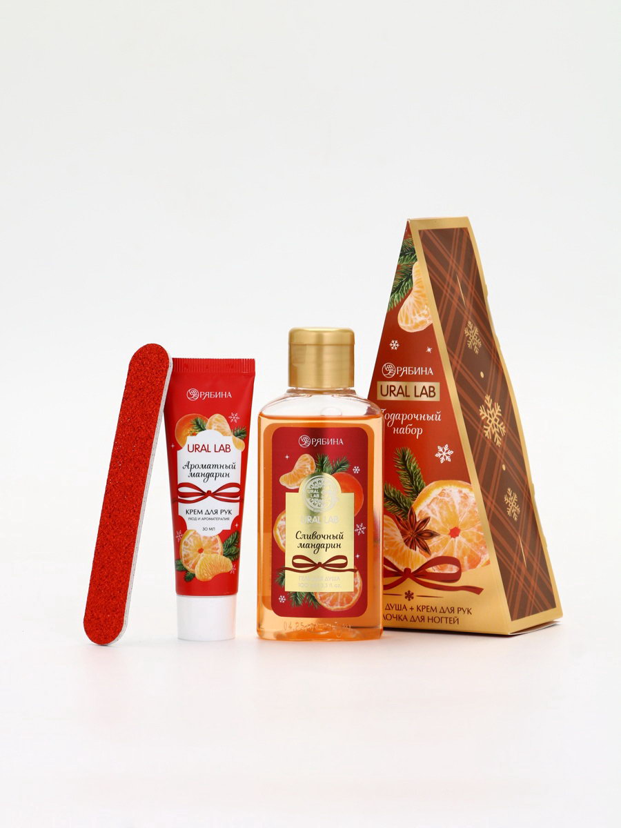 Арома Саунд Набор гель для душа, крем для рук и пилка для ногтей, мандарин, URAL LAB, Россия