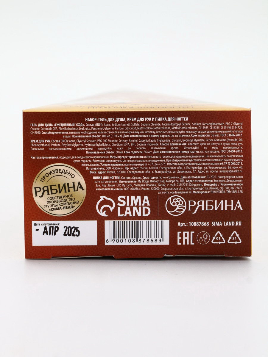 Подарочный набор новогодний: гель для душа, крем для рук и пилка для ногтей, аромат печенье, URAL LAB, Россия