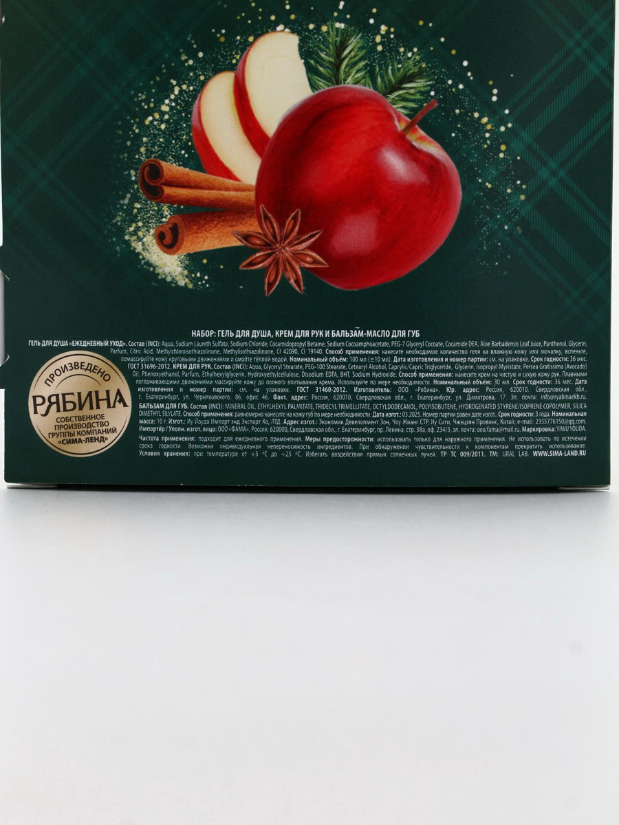 Подарочный набор новогодний: гель для душа, крем для рук и бальзам для губ, аромат яблоко, URAL LAB, Россия