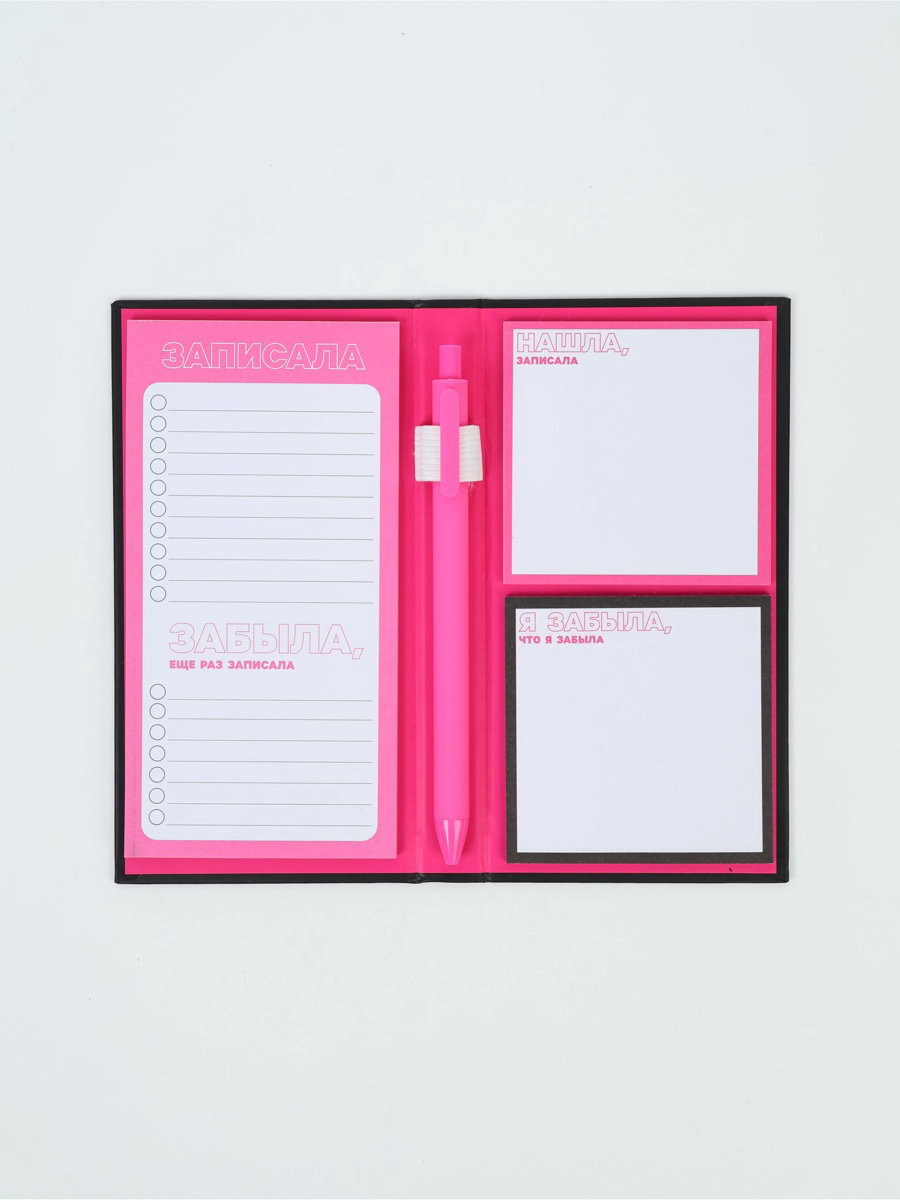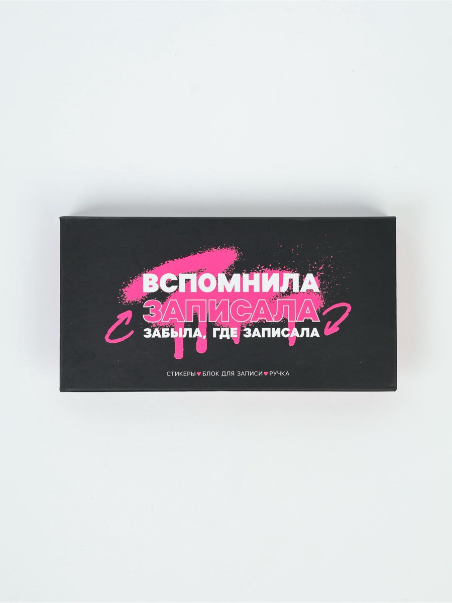 Подарочный набор, блок бумаг для записей, стикеры, ручка "Вспомнила записала", 8.5x16.5x2 см., ArtFox, Китай