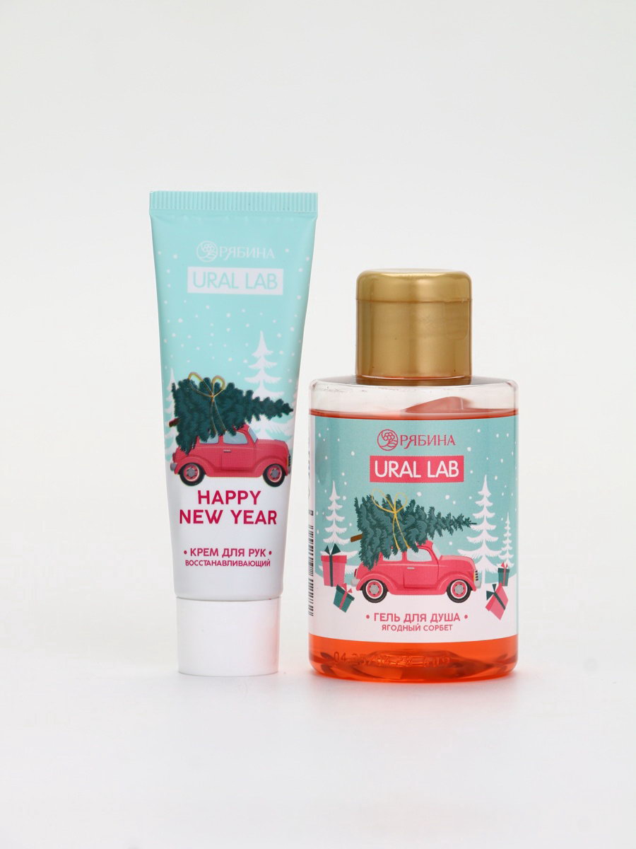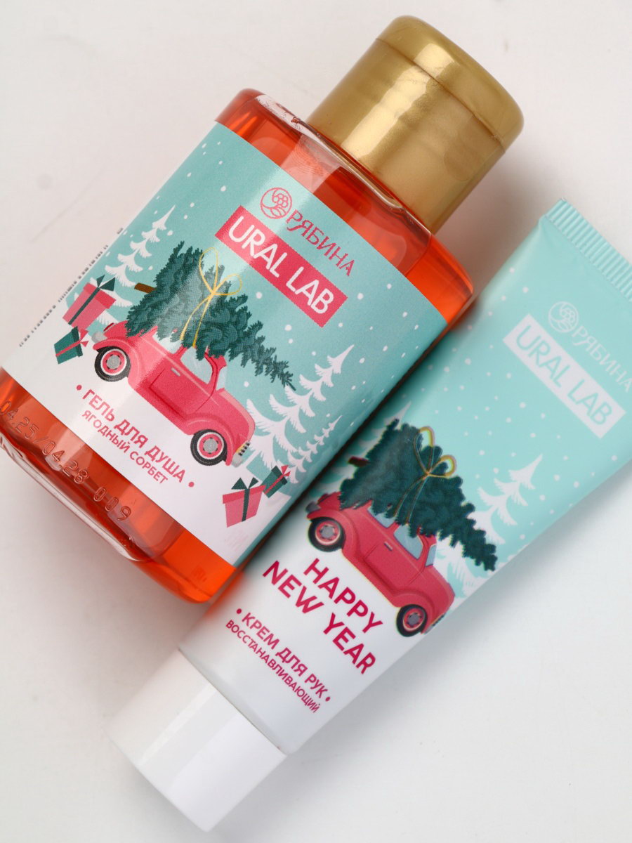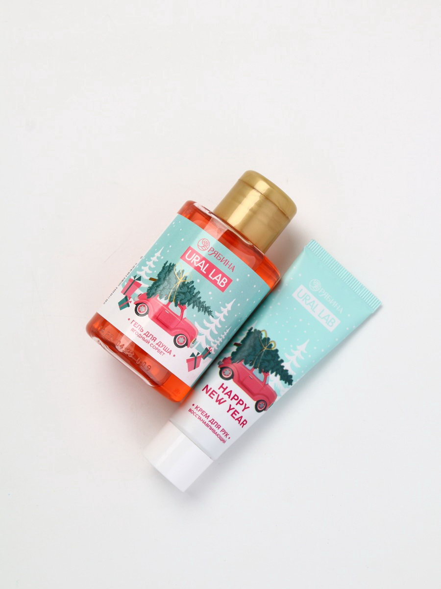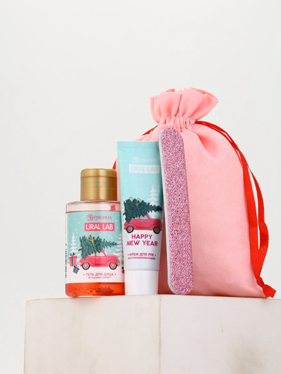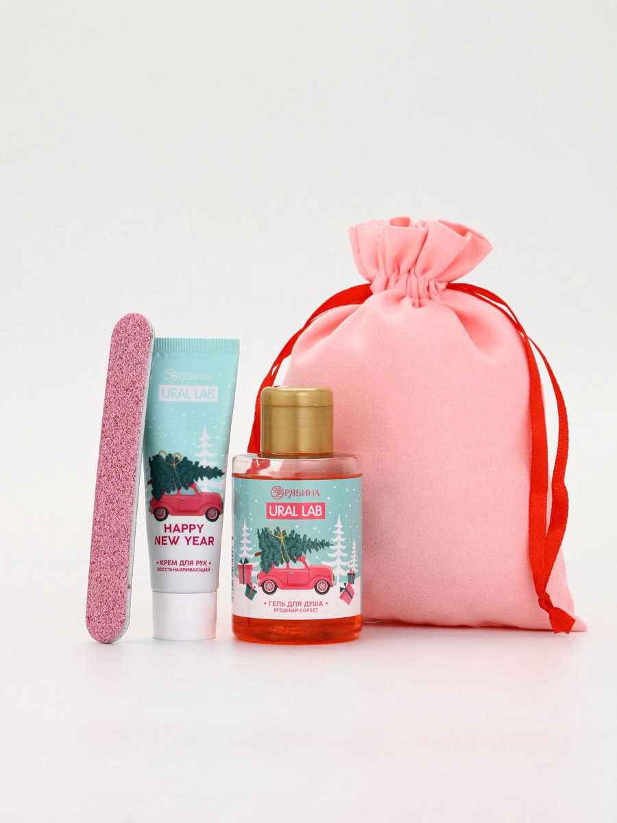 Подарочный набор косметики в мешке: крем для рук, пилочка, гель для душа, аромат ягодный сорбет, URAL LAB, Россия