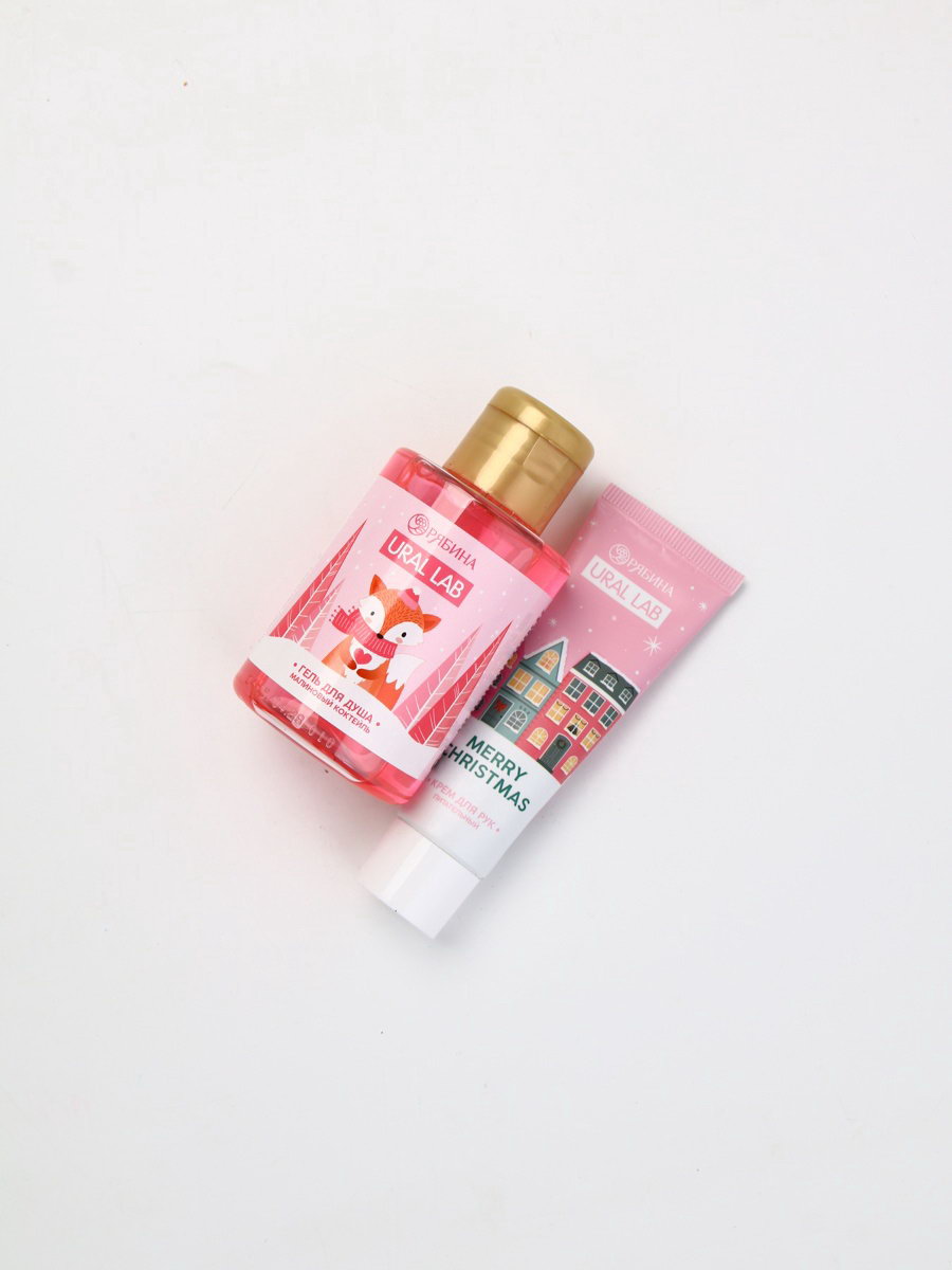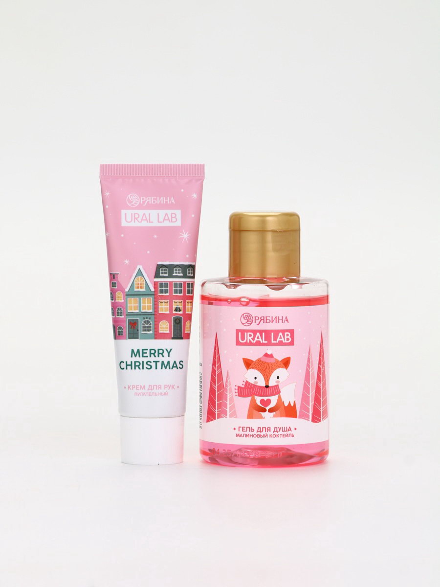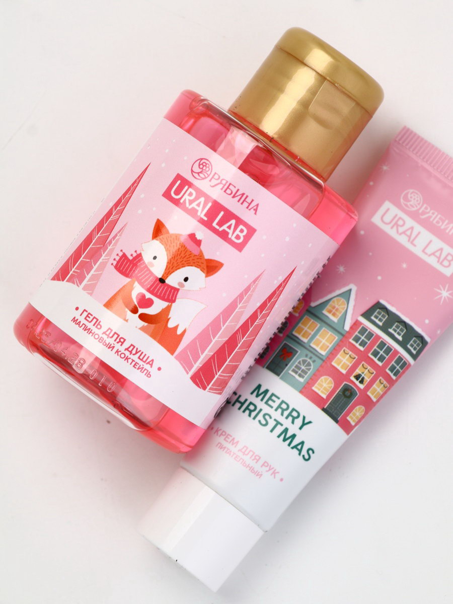 Подарочный набор косметики в мешке: крем для рук, пилочка, гель для душа, аромат малиновый коктейль, URAL LAB, Россия