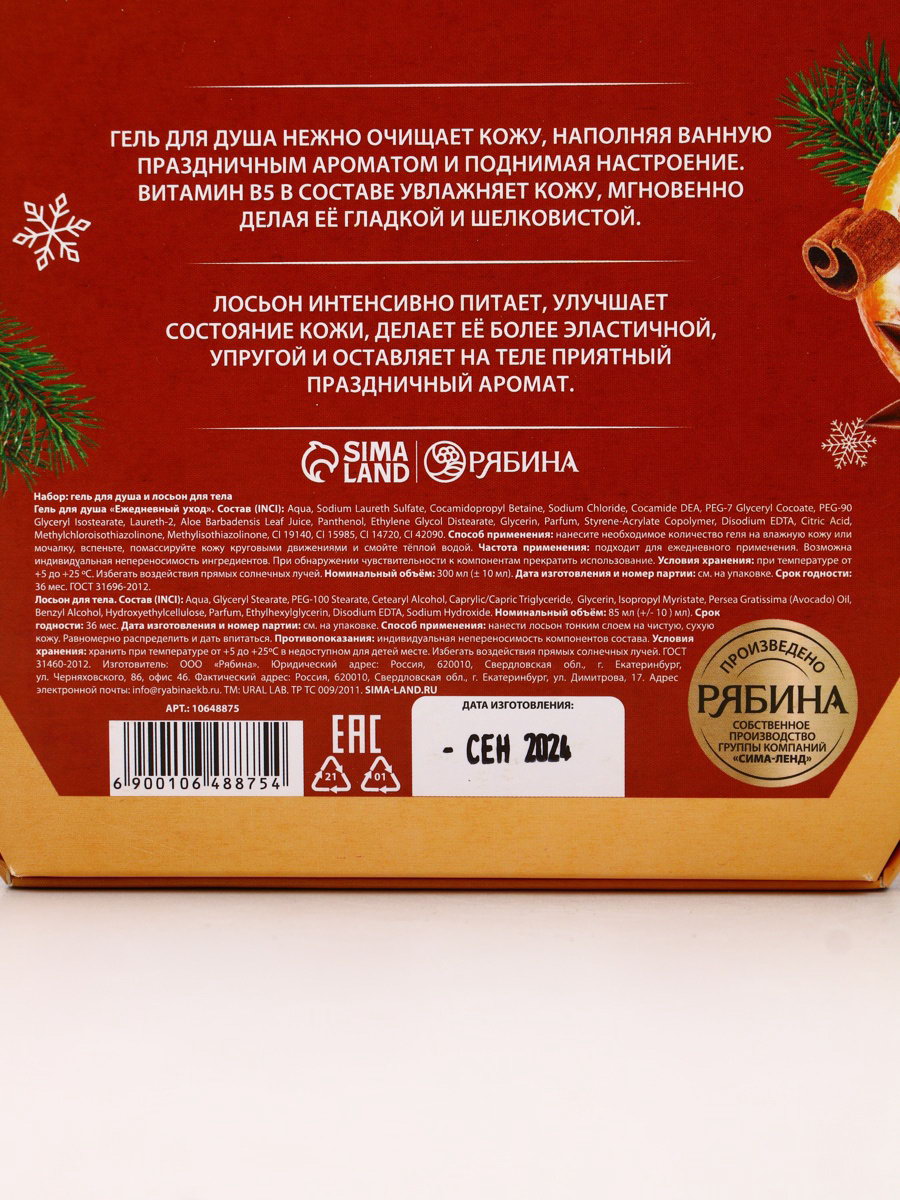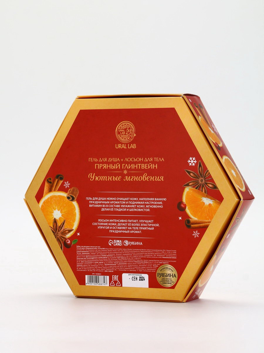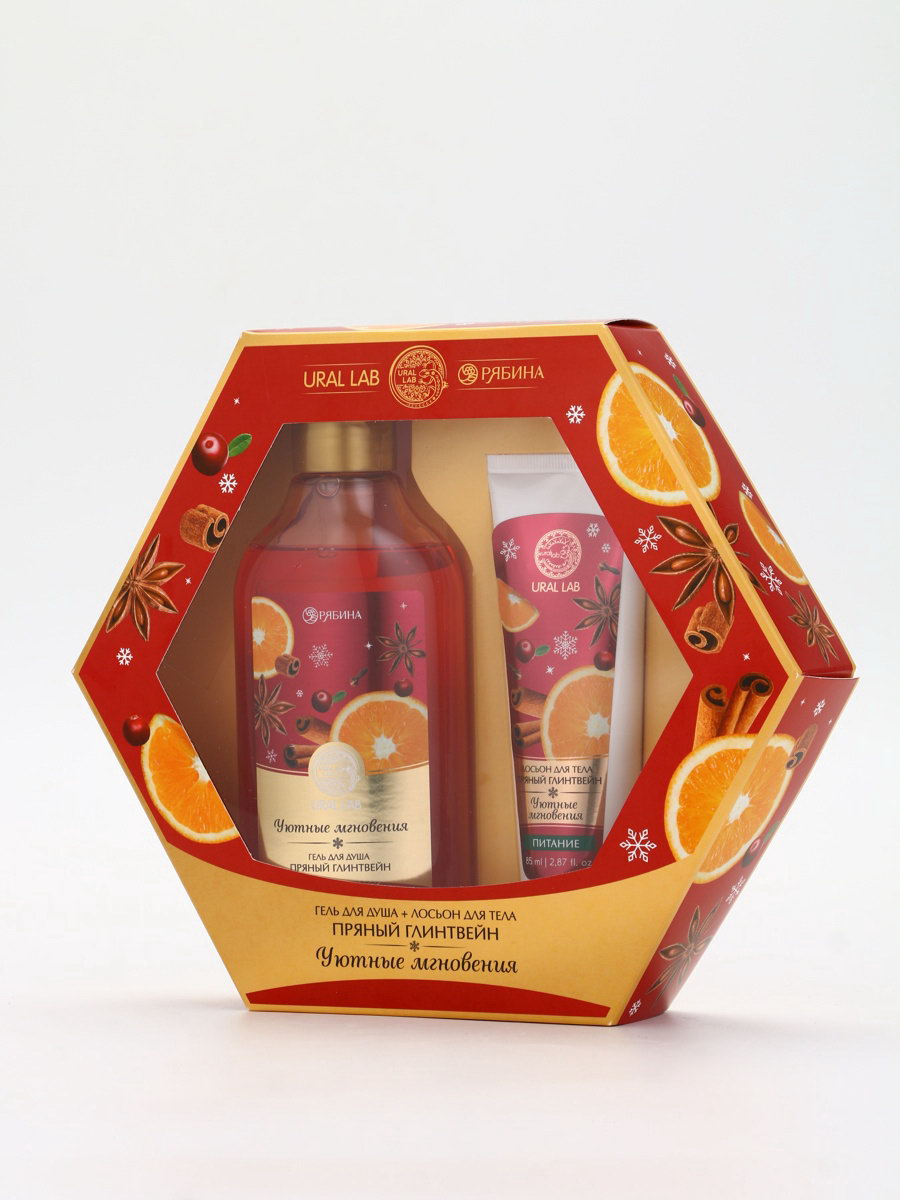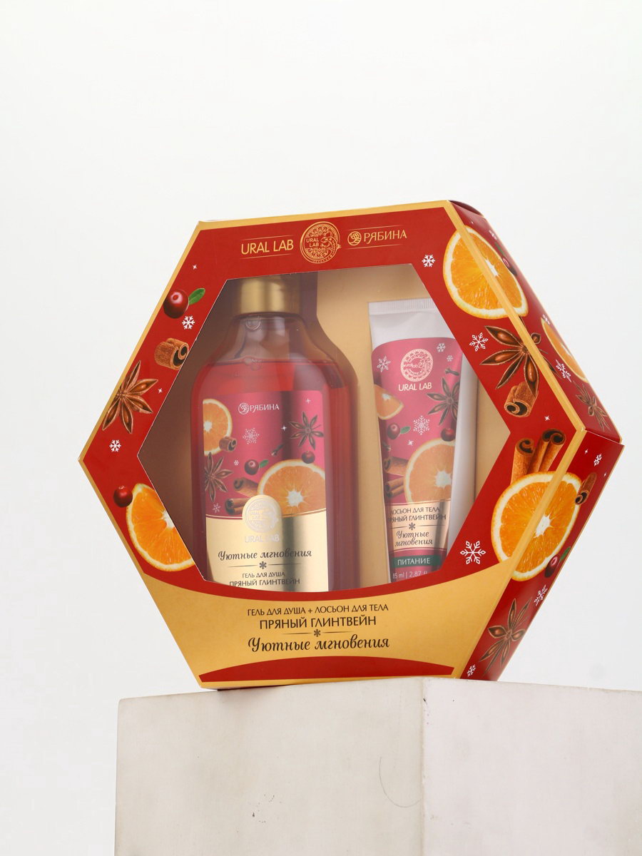 Подарочный набор новогодний "Уютные мгновения", гель для душа 300 мл и лосьон для тела 85 мл, URAL LAB, Россия