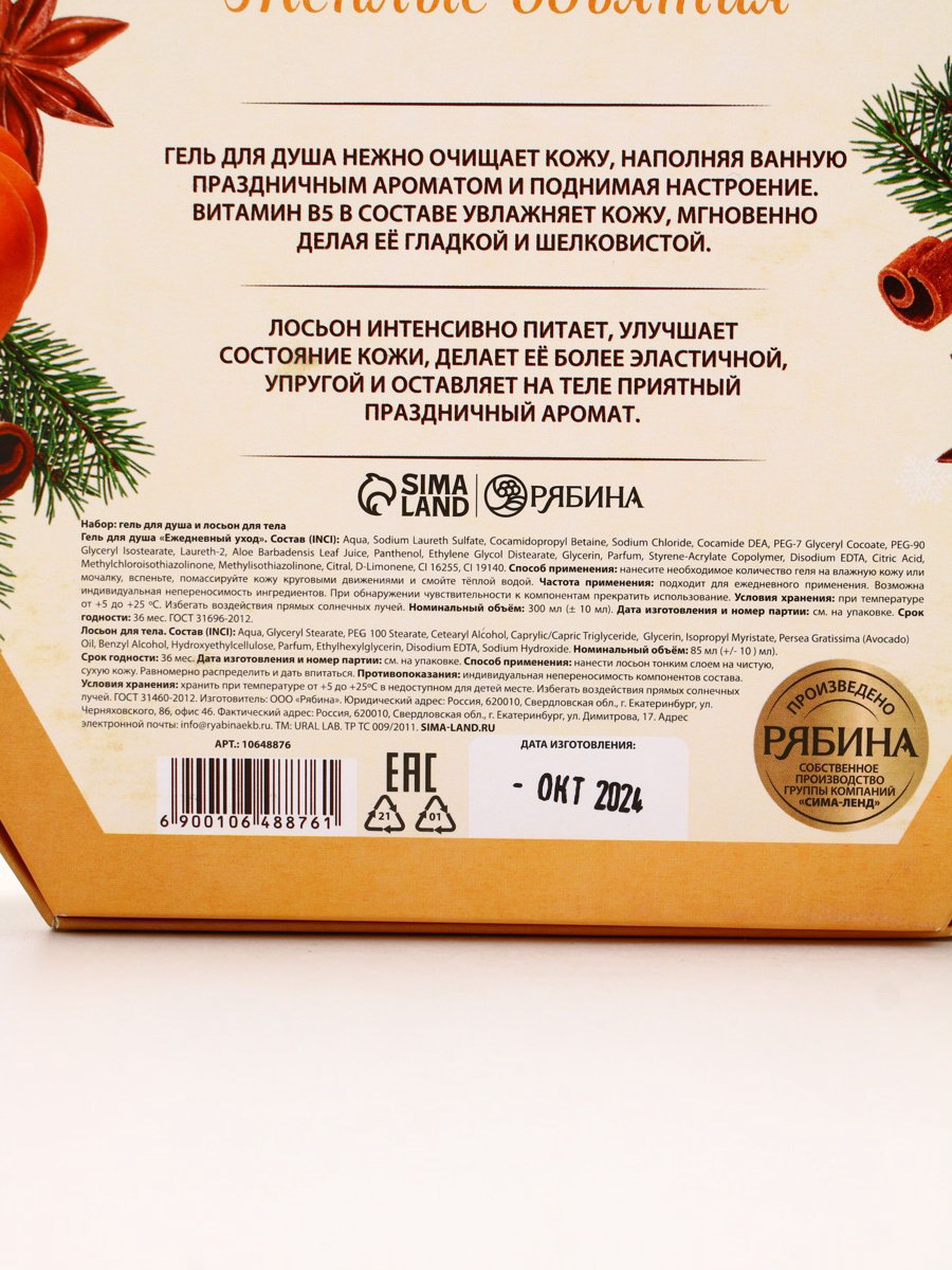 Составляющие набора: Гель для душа, Лосьон для тела Возраст: Взрослый, Для взрослых Размер упаковки: 20 x 5 x 23 см. tnved: 3401300000 В наборе, шт.: 2 Вид упаковки: Подарочная коробка Для кого: Для женщины Тематика подарка: Уходовая косметика Тематика праздника: Новый год Адресат: Без адресата Аромат: Тыквенный пирог Символ года: Нет | ||
