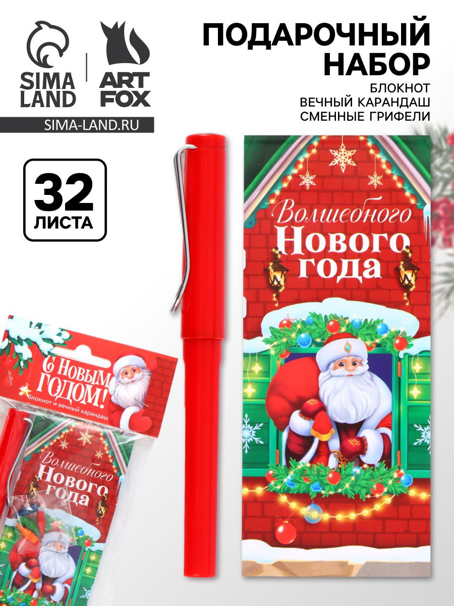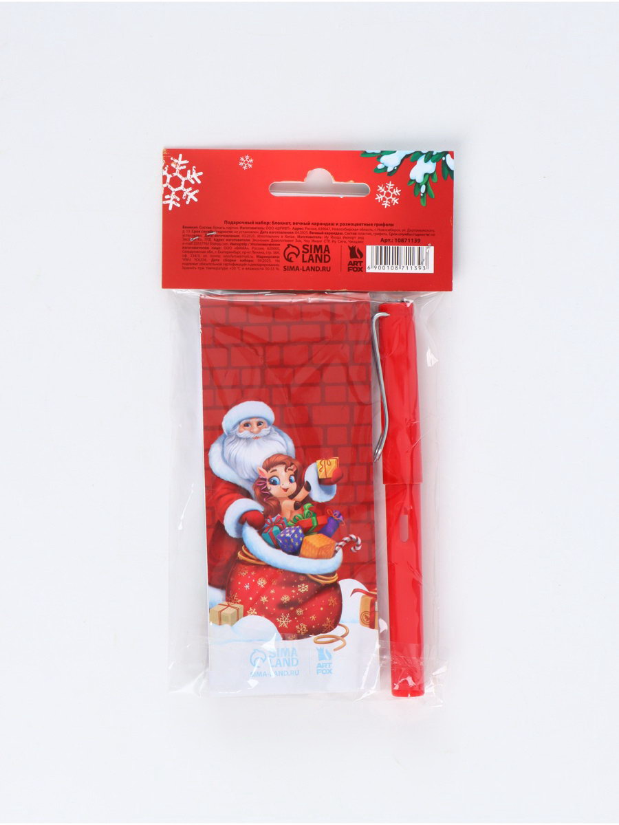 Подарочный набор новогодний "Дедушка", блокнот, вечный карандаш, сменные грифели, ArtFox, Россия
