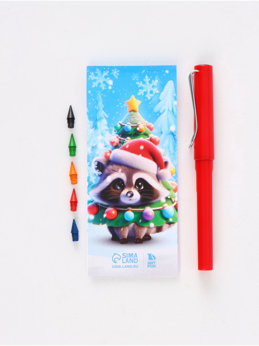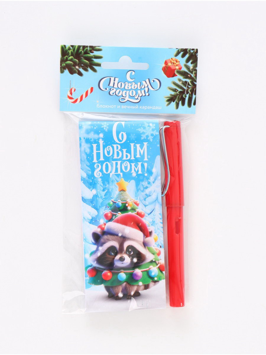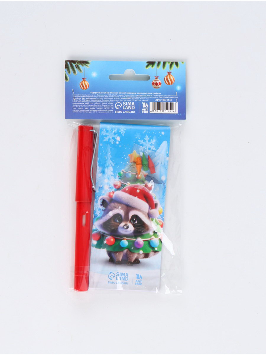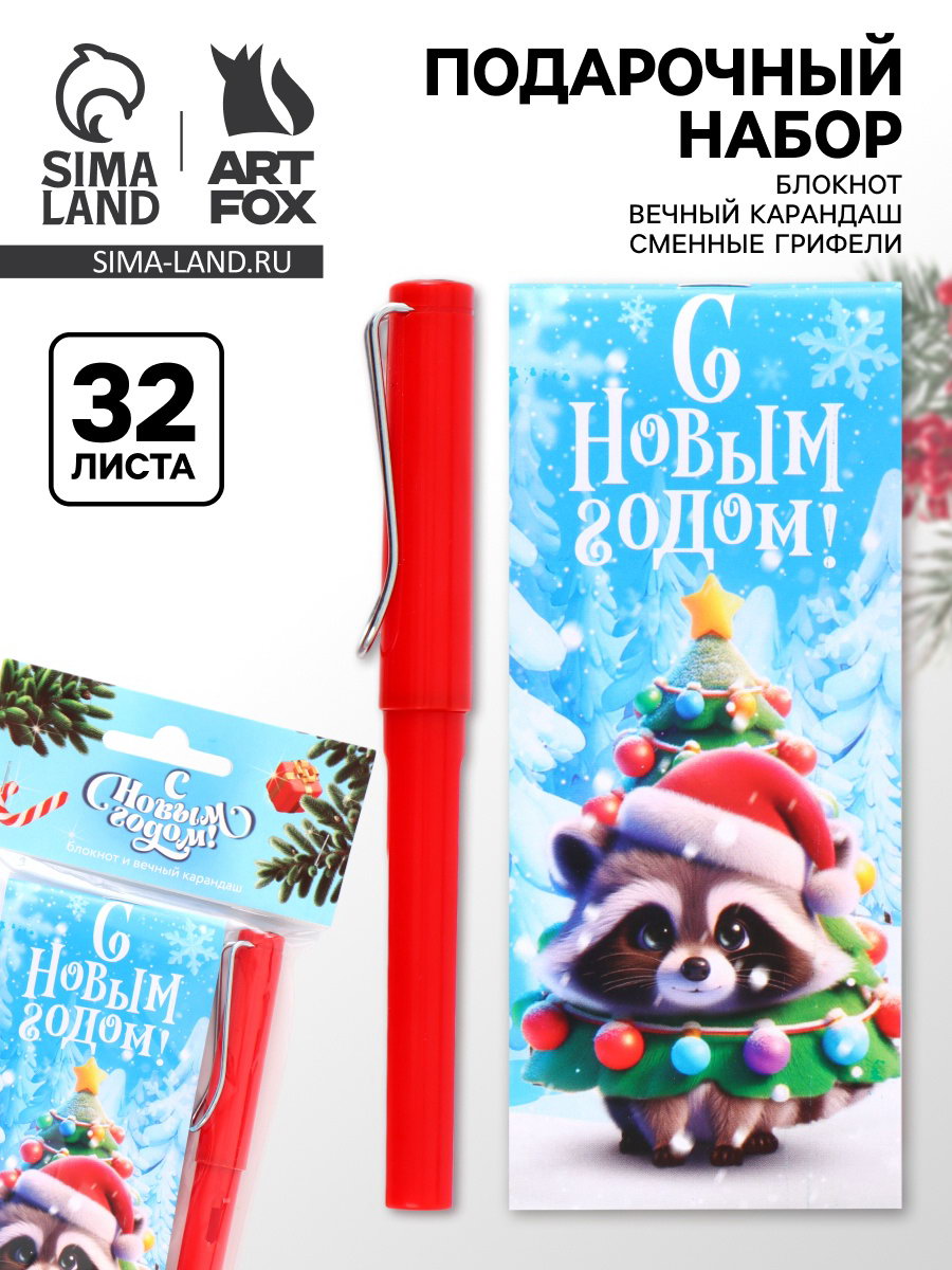 Подарочный набор новогодний "Енотик", блокнот, вечный карандаш, сменные грифели, ArtFox, Россия