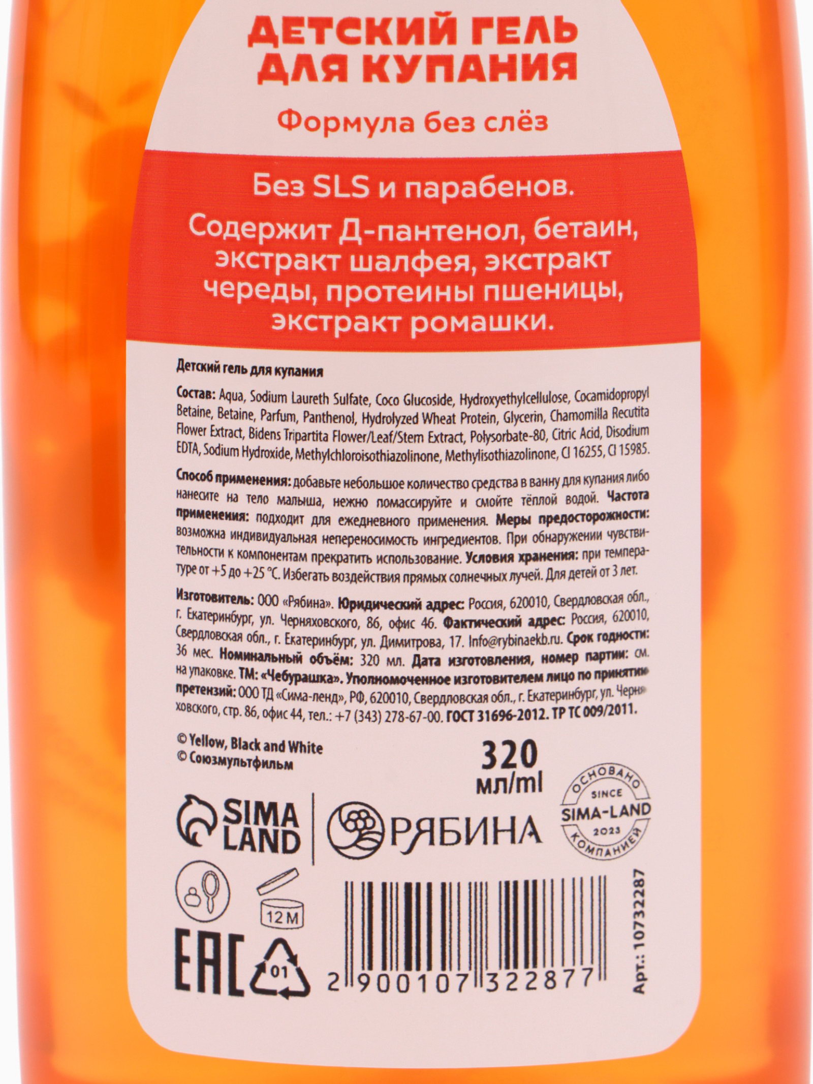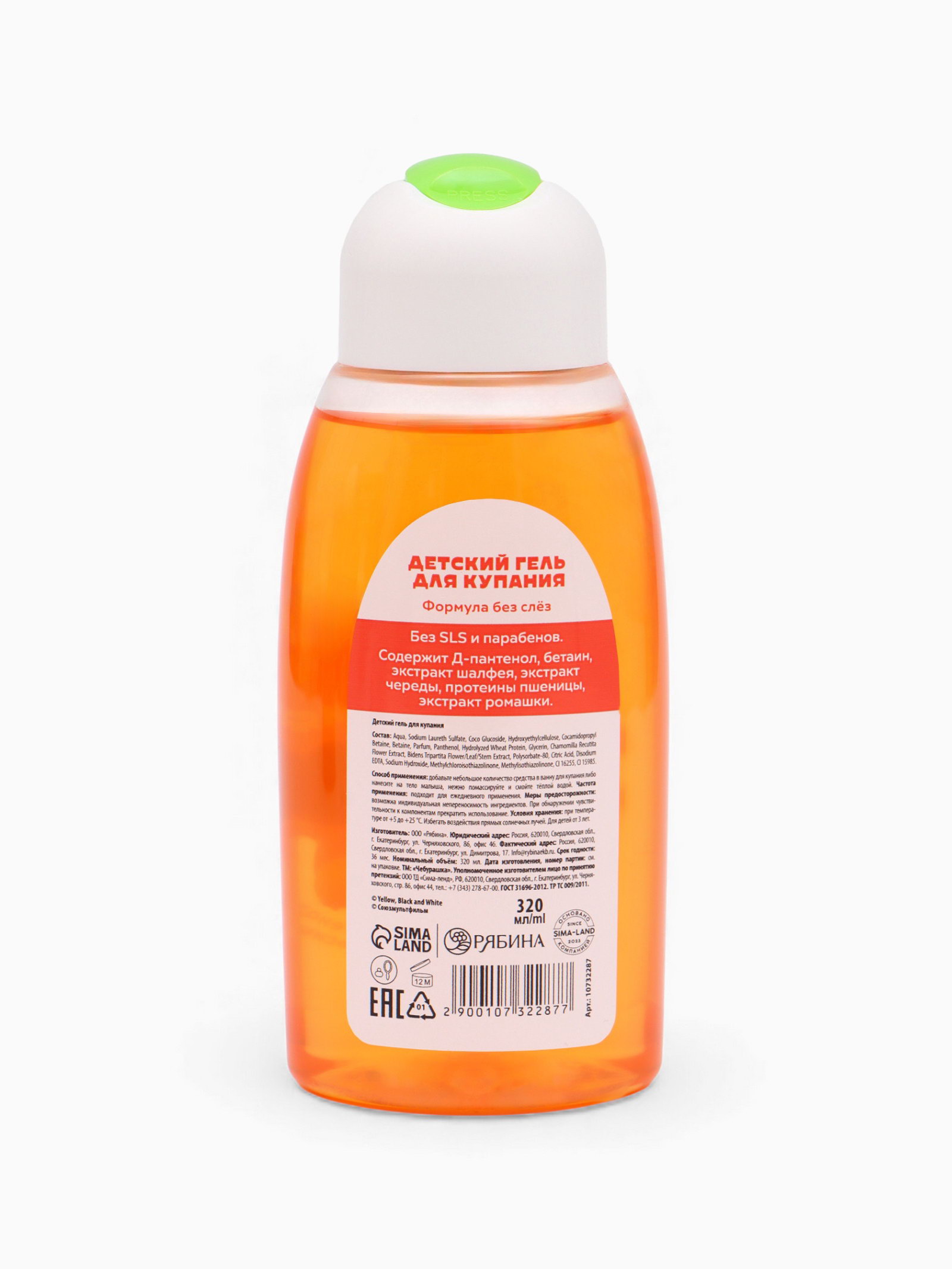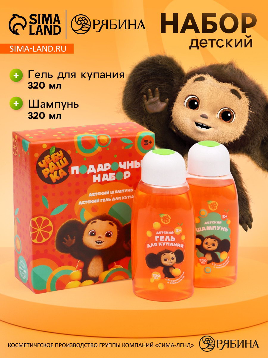 Набор детский: гель 320 мл, шампунь 320 мл, Чебурашка, ЧЕБУРАШКА, Россия