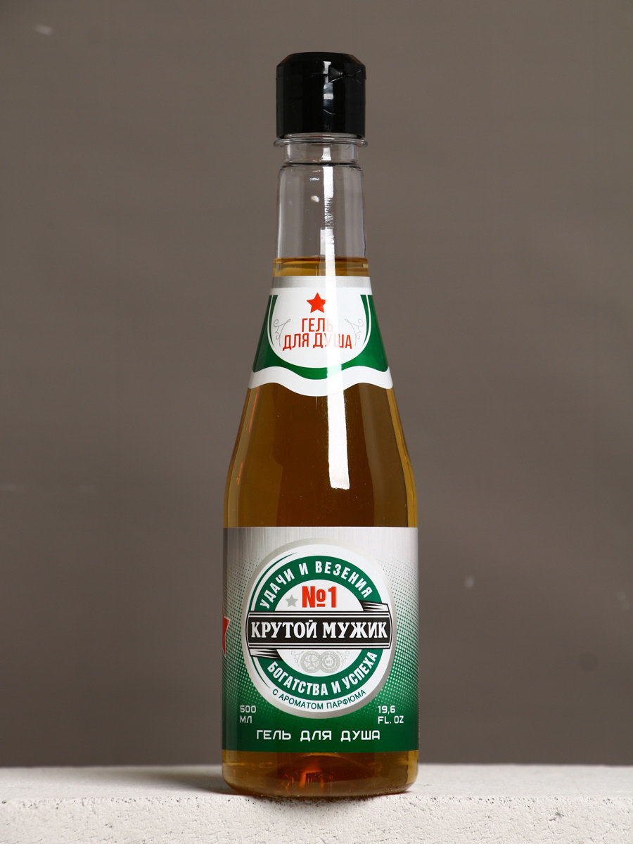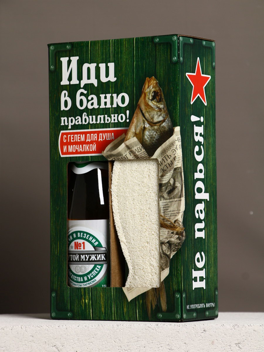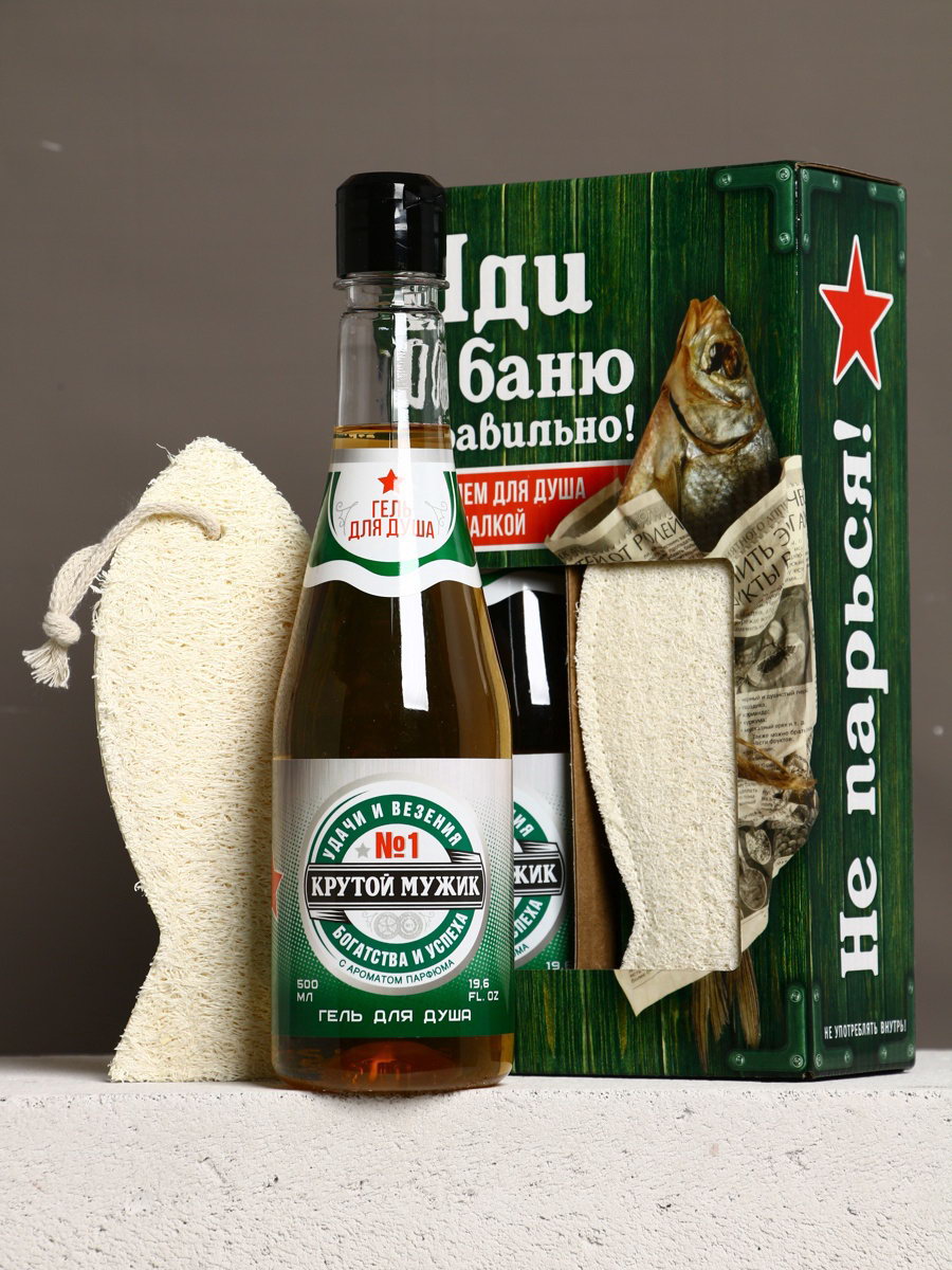 Подарочный набор "Крепкому мужику", гель для душа во флаконе пиво, 500 мл и мочалка вобла, Чистое счастье, Россия