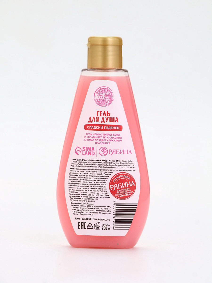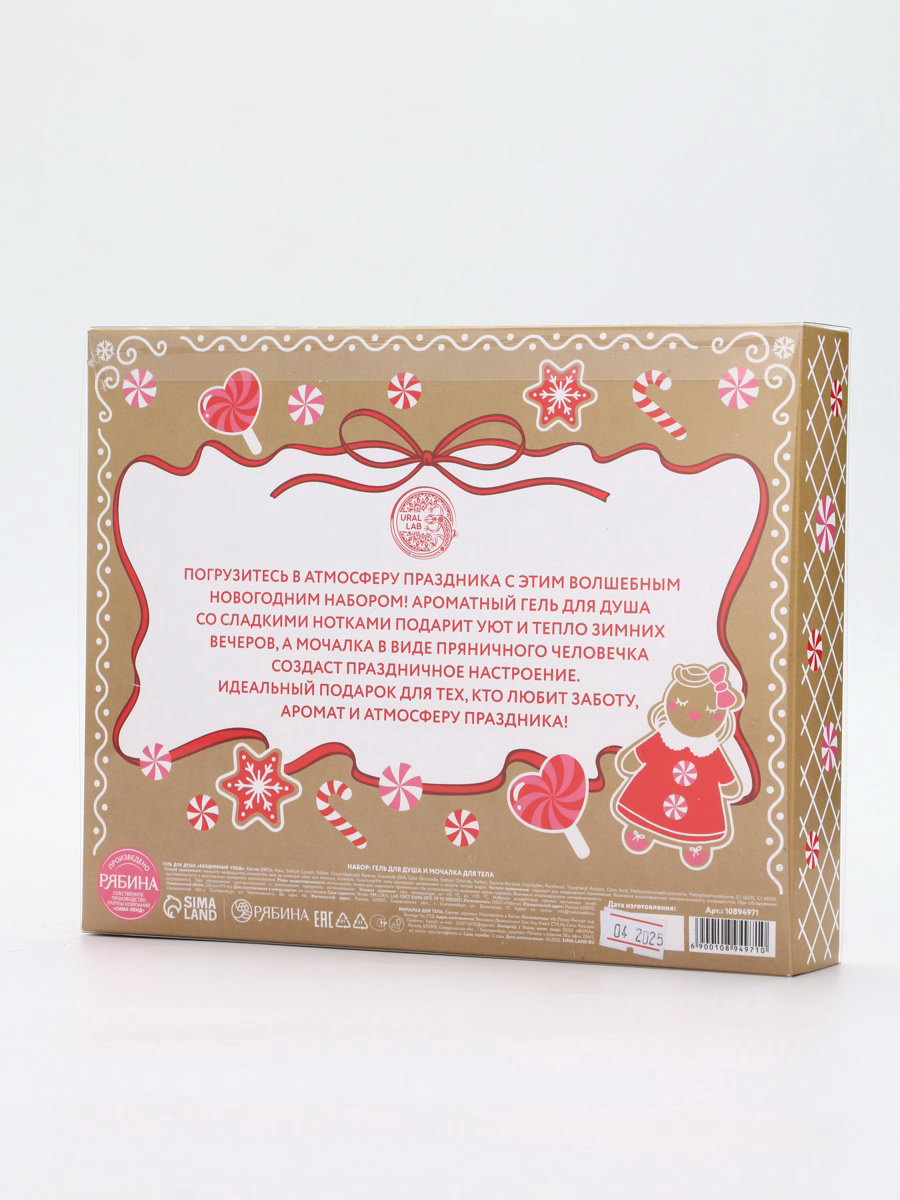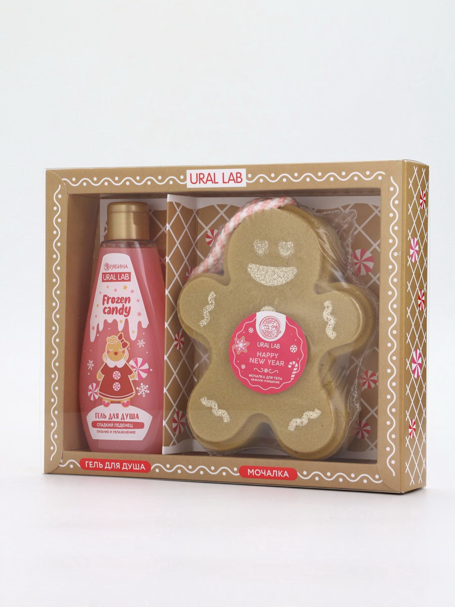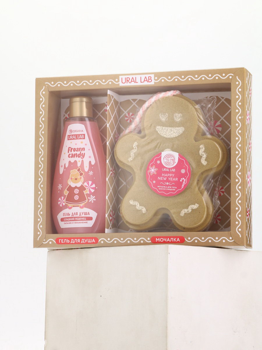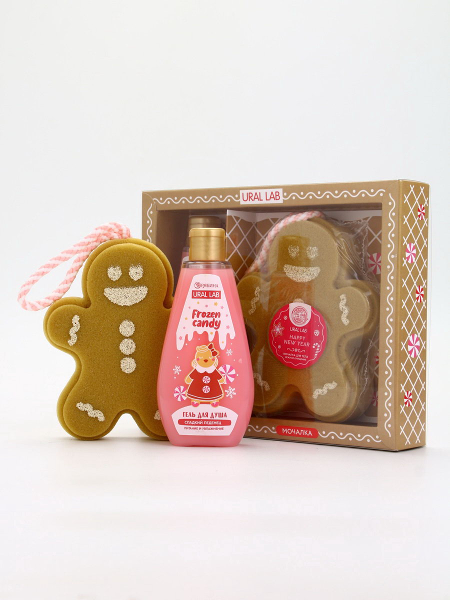 Подарочный набор новогодний: гель для душа и мочалка для тела, аромат сладкий леденец, URAL LAB, Россия