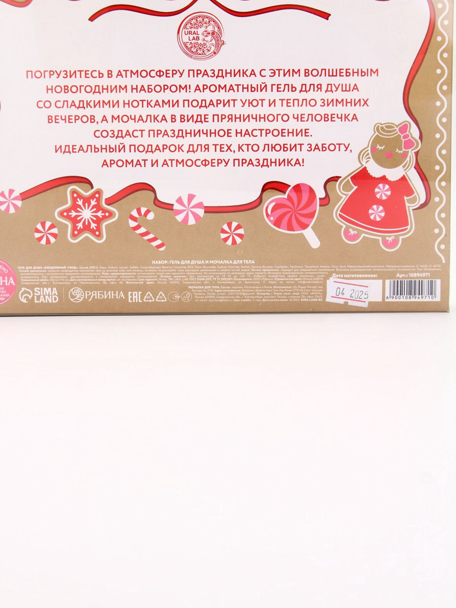 Подарочный набор новогодний: гель для душа и мочалка для тела, аромат сладкий леденец, URAL LAB, Россия