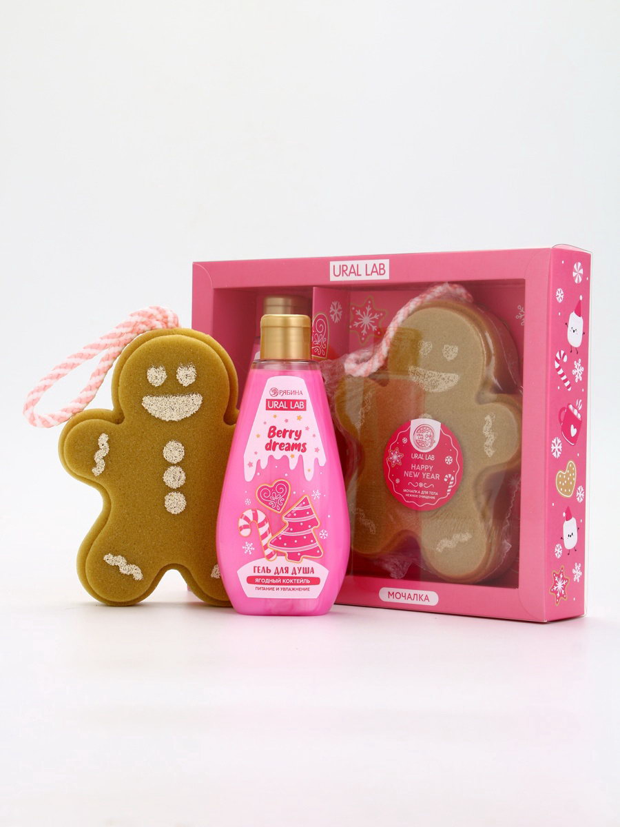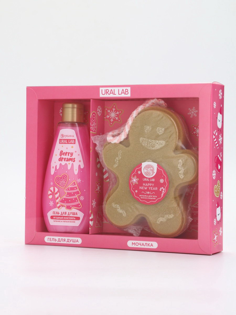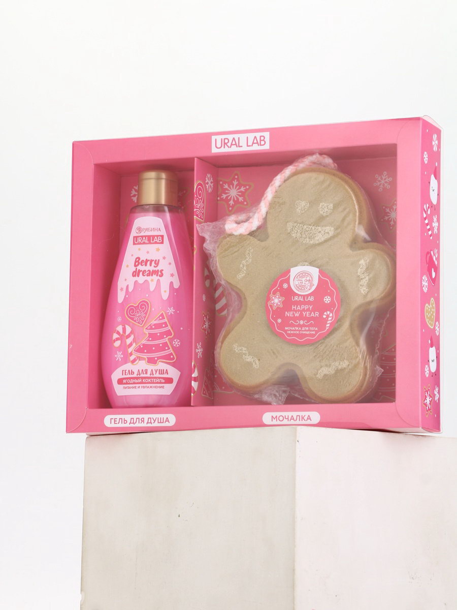 Подарочный набор новогодний: гель для душа и мочалка для тела, аромат ягодный коктейль, URAL LAB, Россия