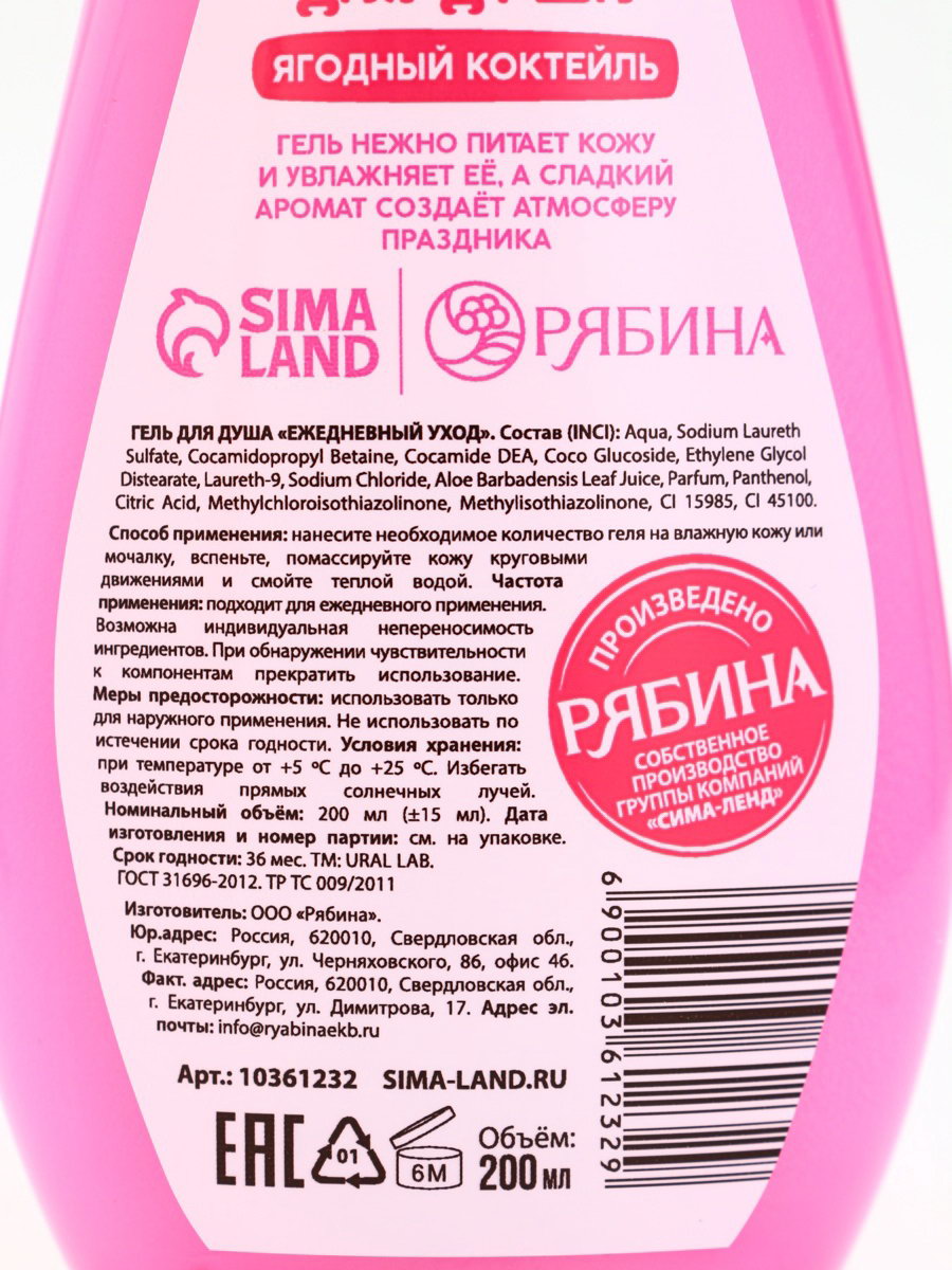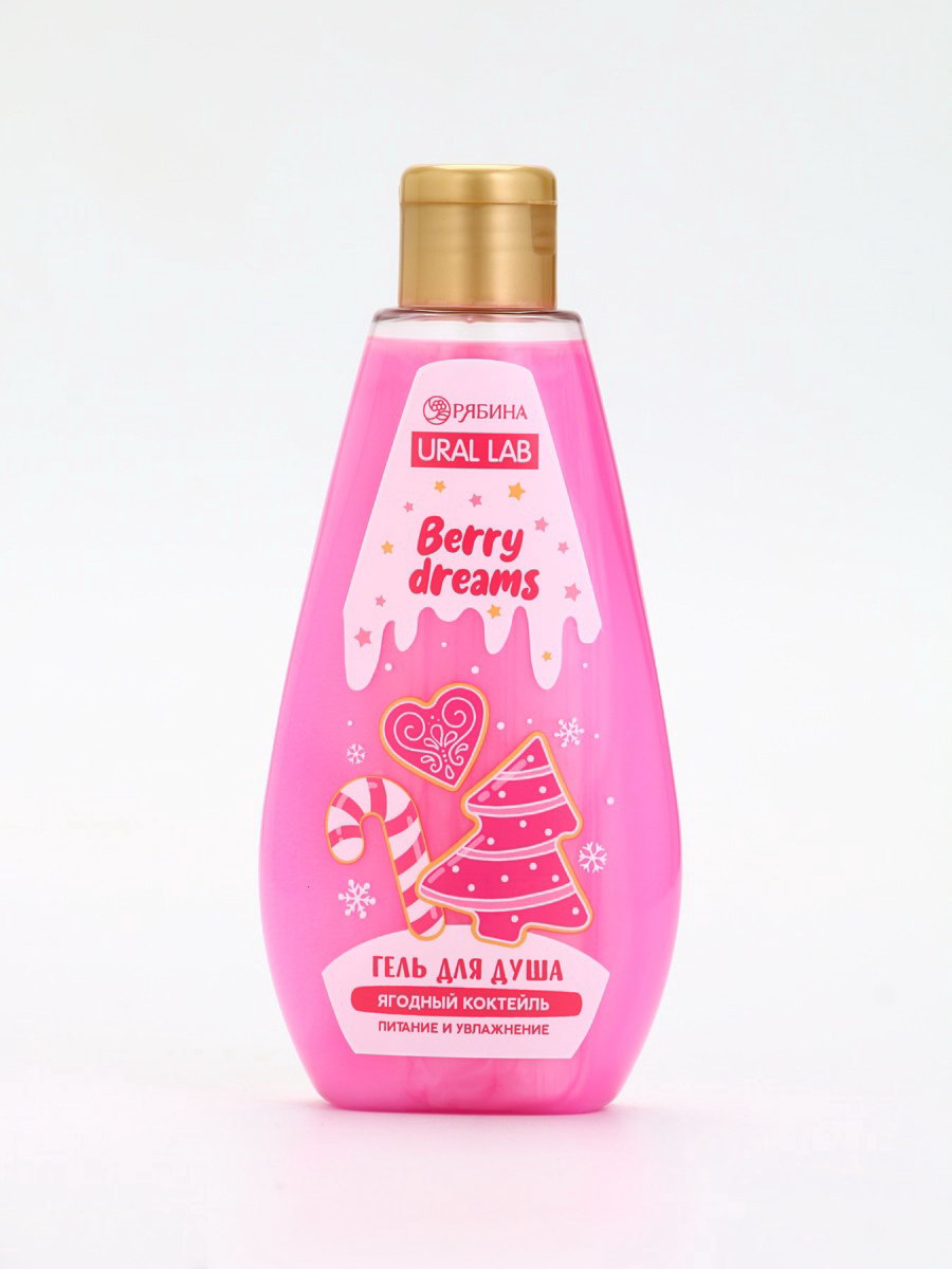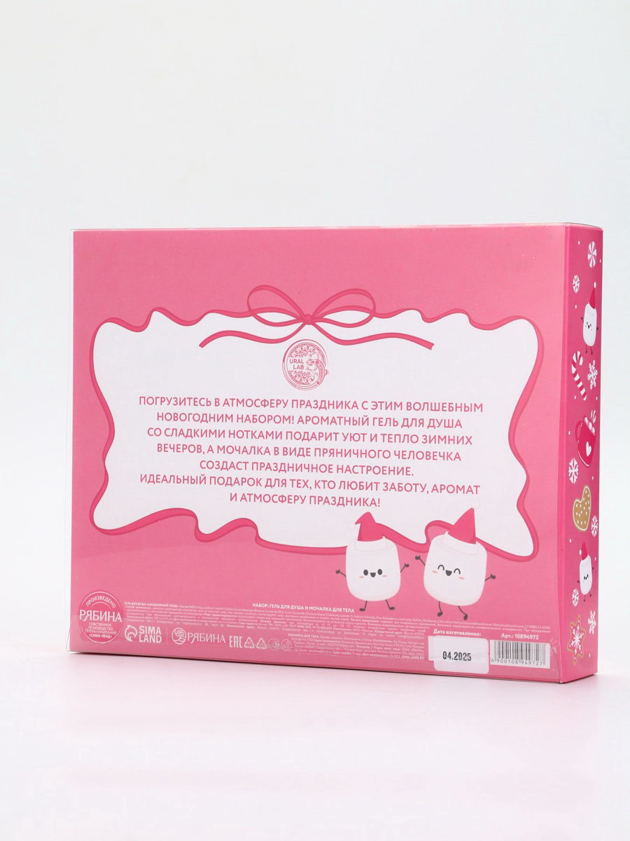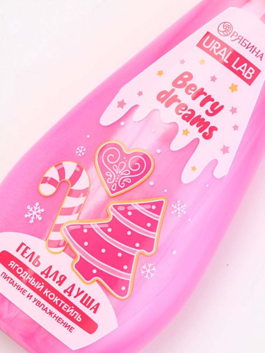 Подарочный набор новогодний: гель для душа и мочалка для тела, аромат ягодный коктейль, URAL LAB, Россия
