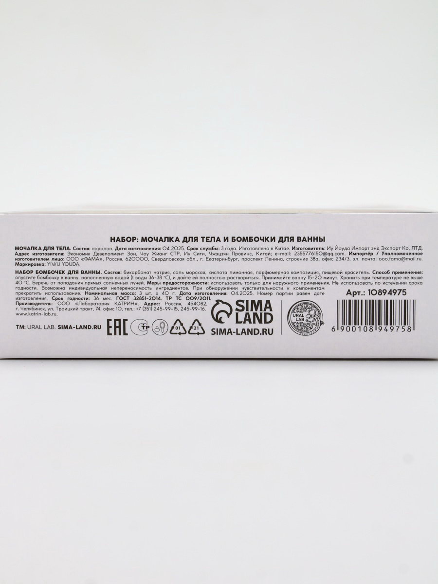 Подарочный набор "Сладкого Нового года": мочалка для тела и бомбочки для ванны 3 шт x 40 г, URAL LAB, Россия
