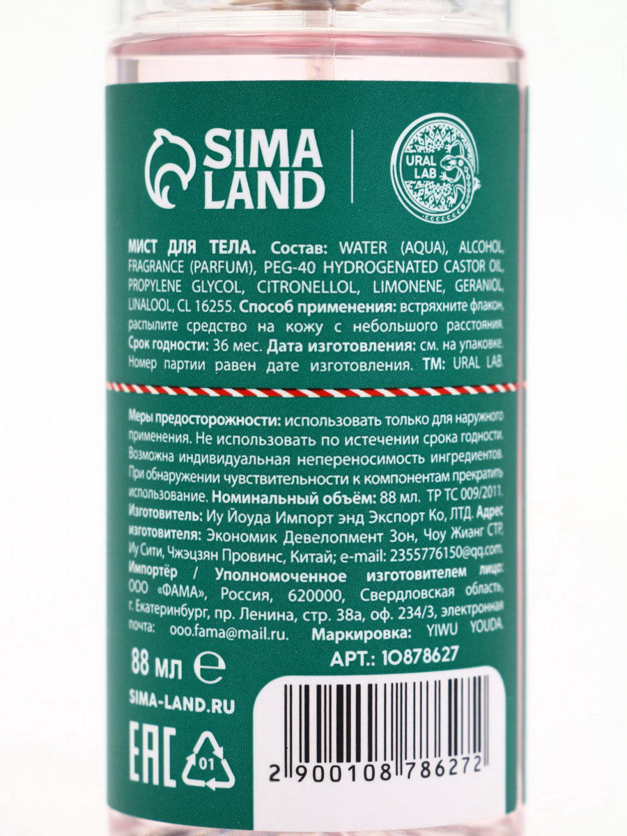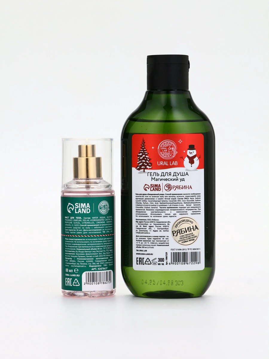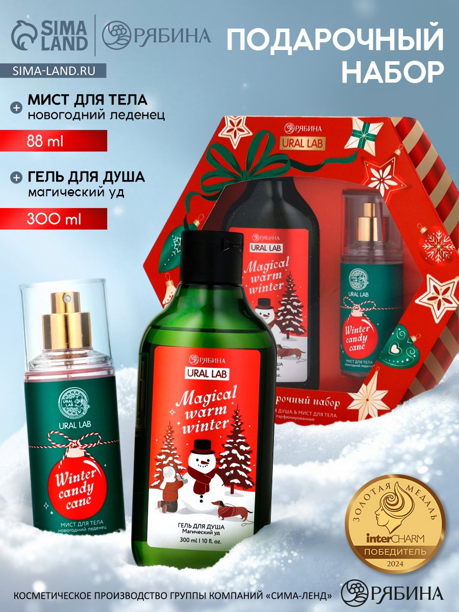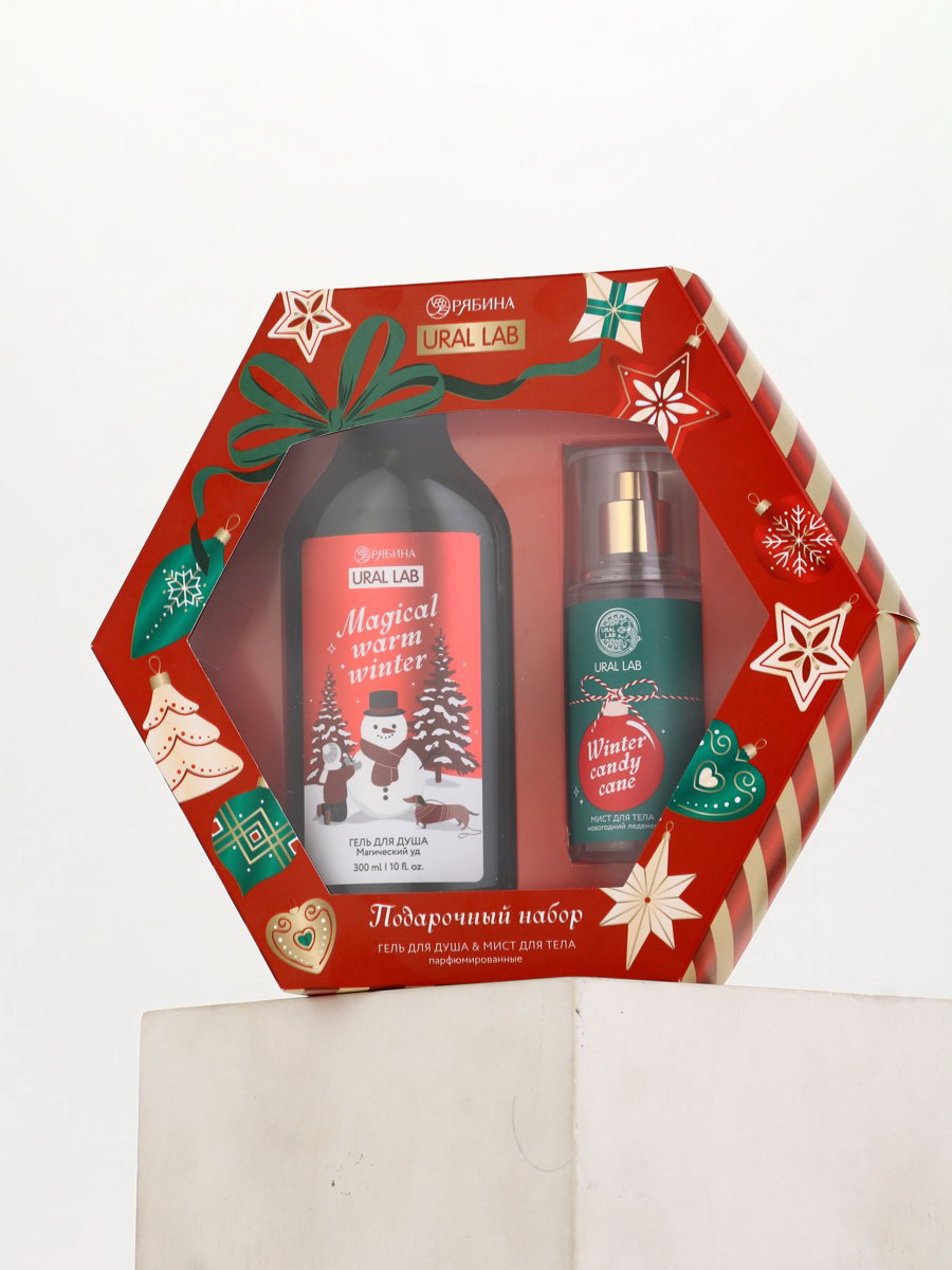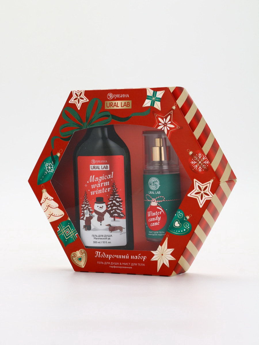 Подарочный набор Happy New Year: гель для душа и мист для тела, красный, URAL LAB, Россия