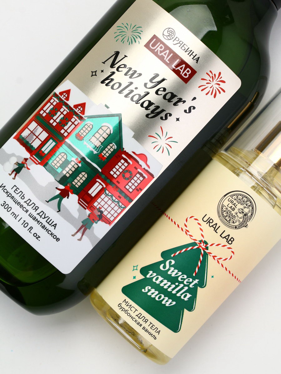 Подарочный набор Happy New Year: гель для душа и мист для тела, белый, URAL LAB, Россия