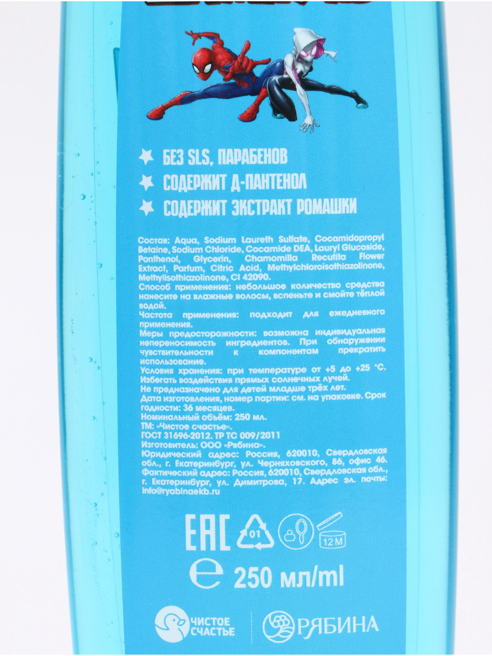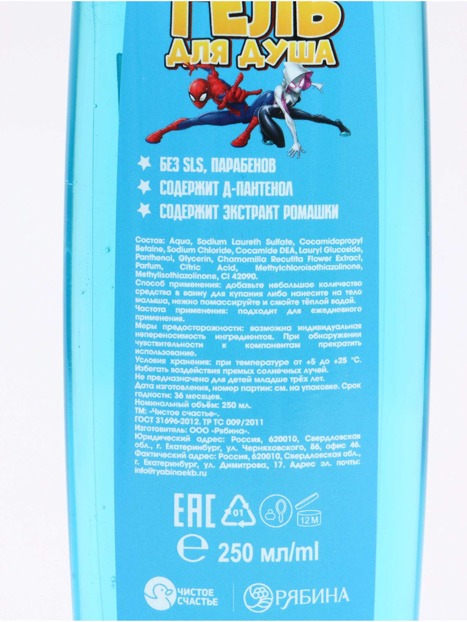 Подарочный набор: гель для душа 250 мл, шампунь 250 мл, Человек-паук, Чистое счастье, Россия
