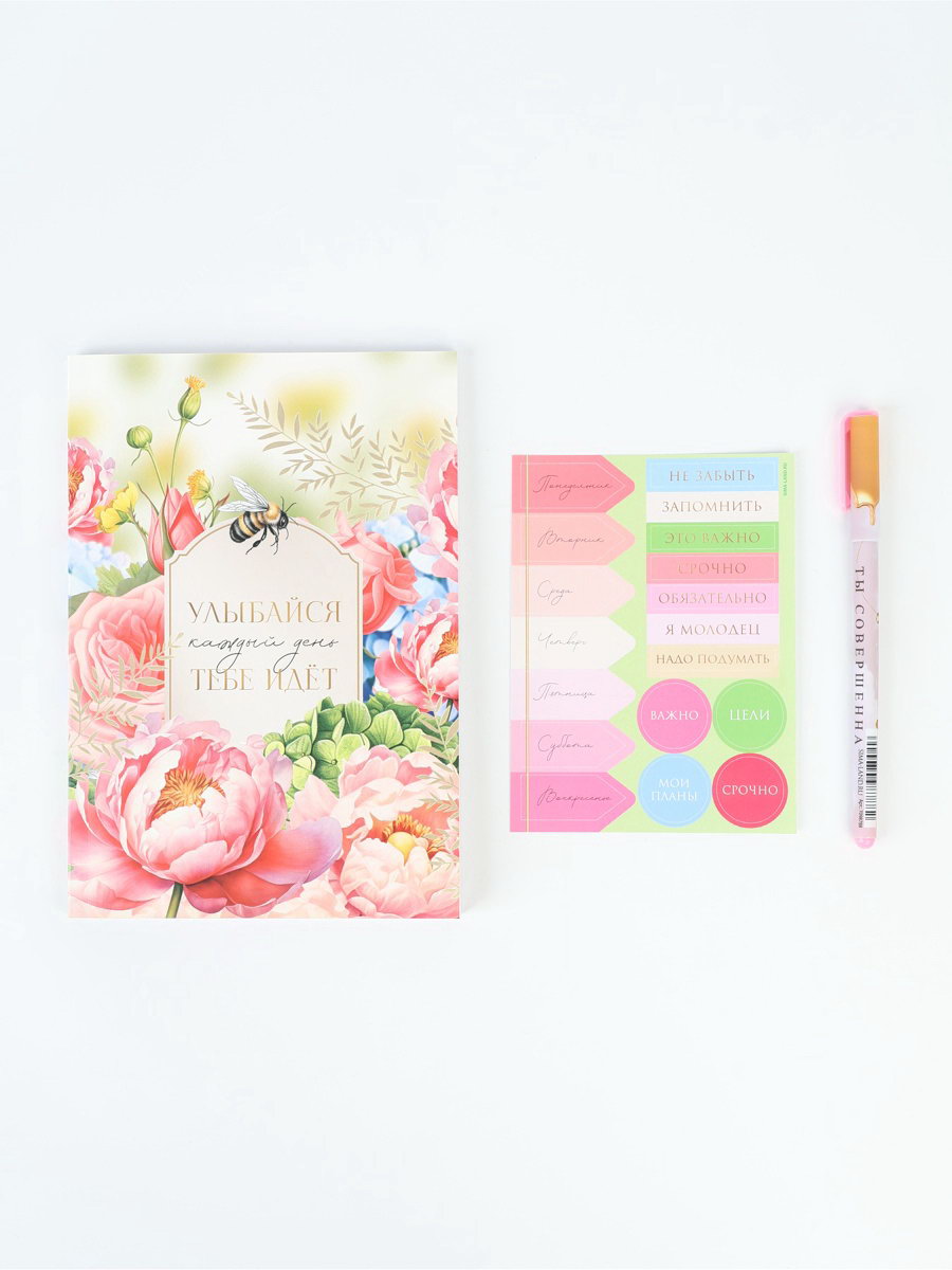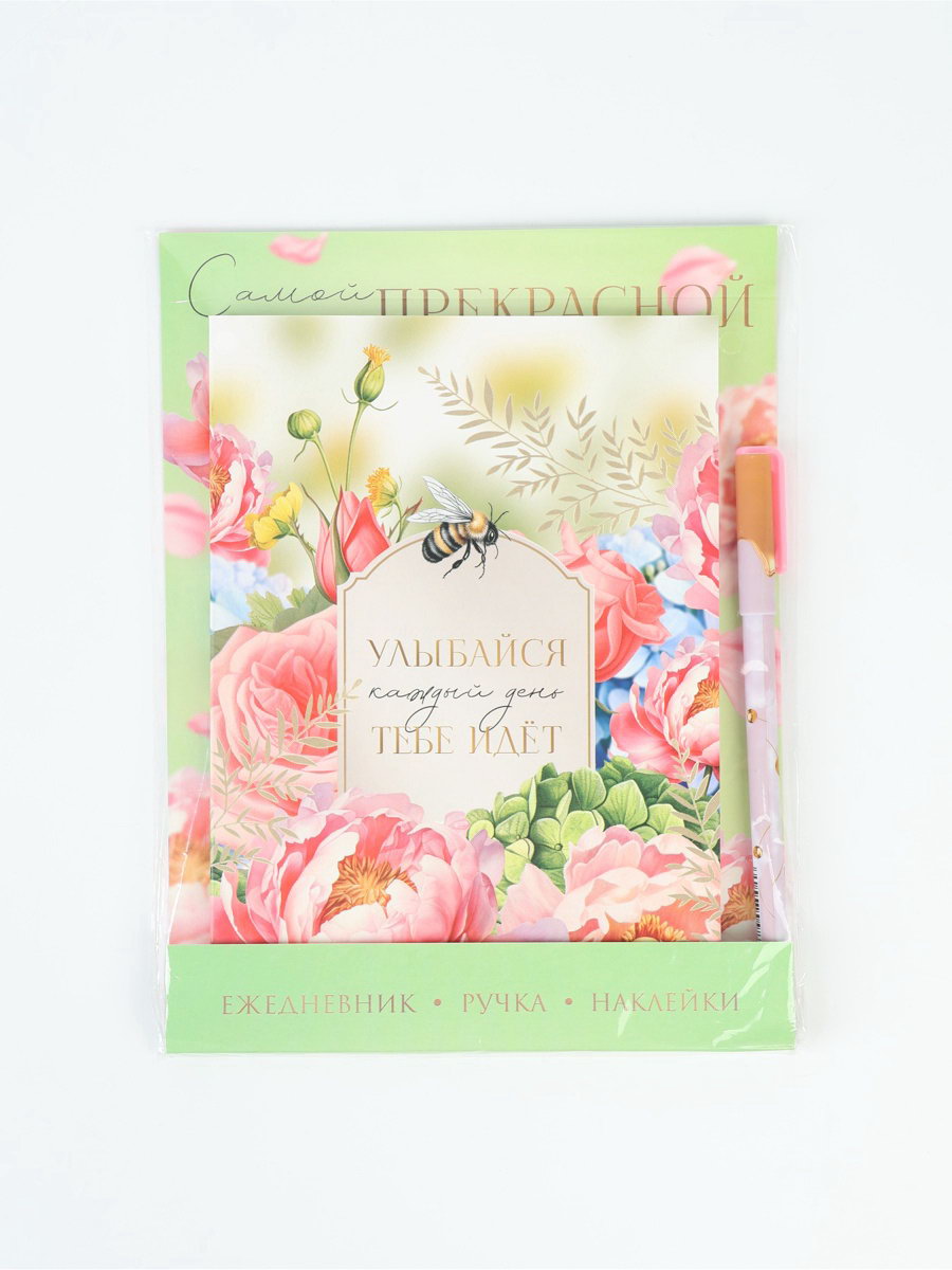 Подарочный набор, ежедневник А5, 80 л, наклейки, ручка "Самой прекрасной", ArtFox, Россия