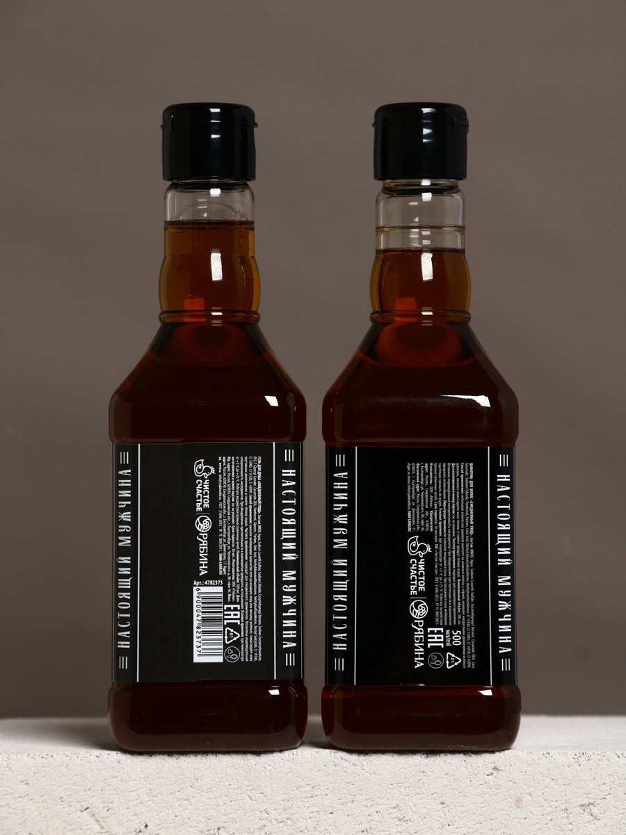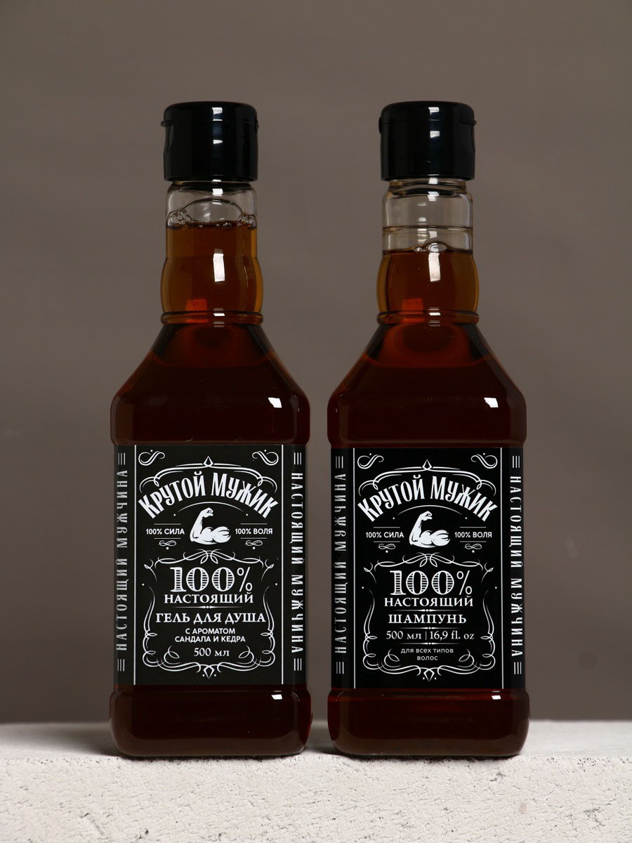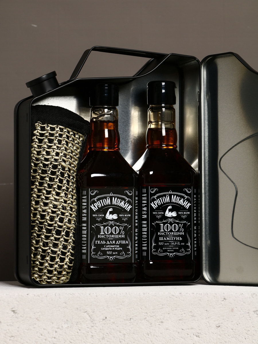 Подарочный набор "Крутой мужик", гель для душа во флаконе виски, шампунь и мочалка лента, Чистое счастье, Россия