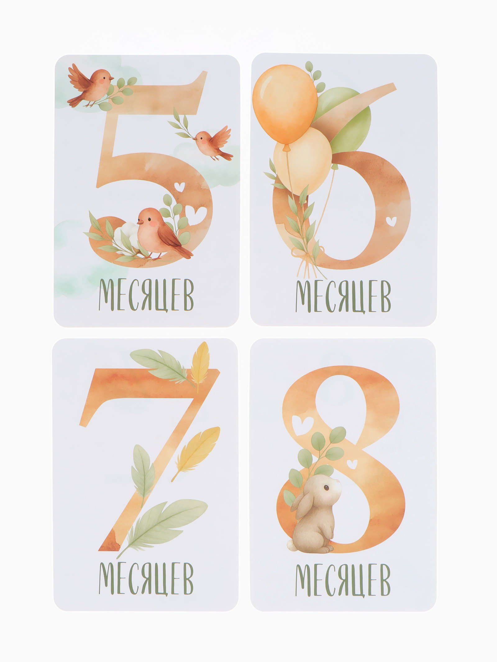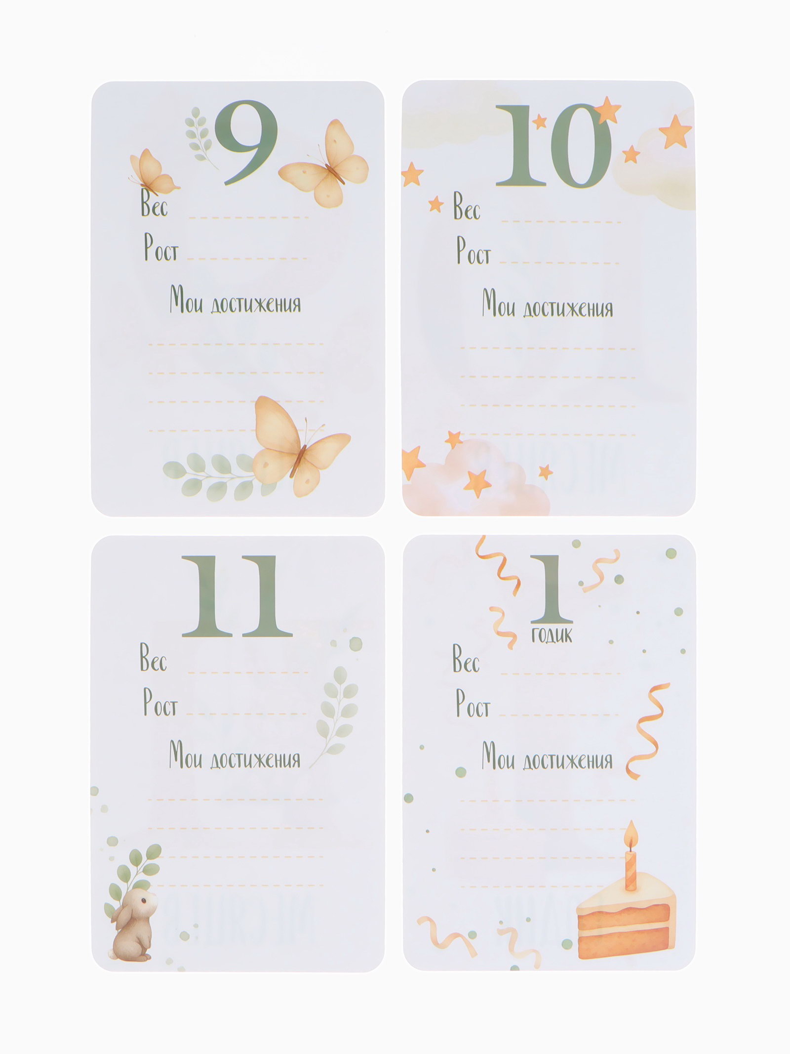 Почему эти карточки удобны С ними каждая фотография становится полноценным воспоминанием: можно отмечать возраст малыша, записывать изменения и создавать красивую историю его первого года жизни. Карточки легко размещать рядом с ребёнком, использовать в кадре или сохранять в альбоме как самостоятельный элемент. | ||