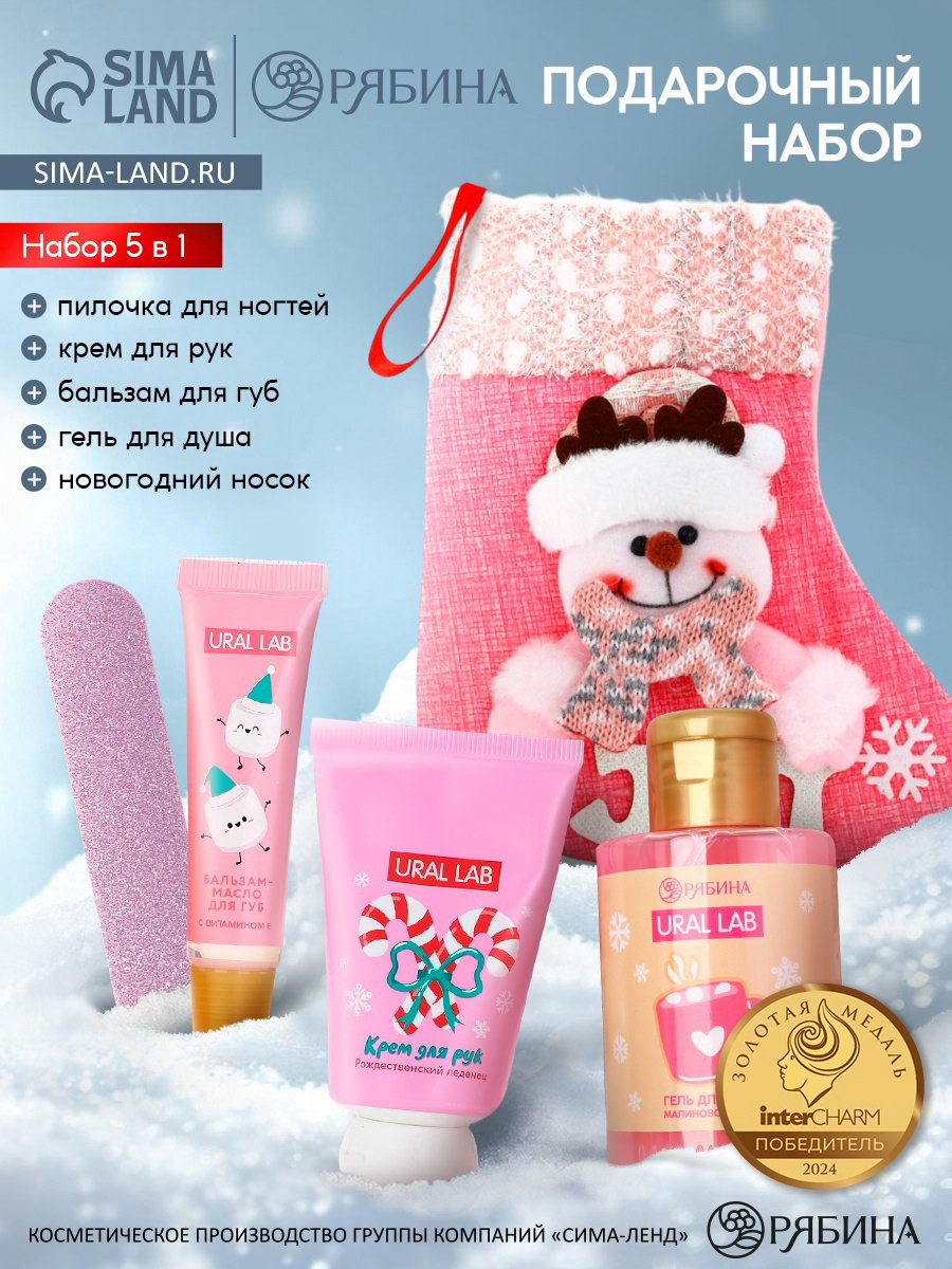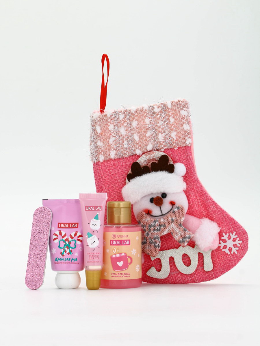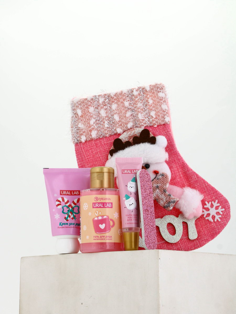 Подарочный набор в новогоднем носке: гель для душа, крем для рук, бальзам для губ и пилочка, URAL LAB, Россия