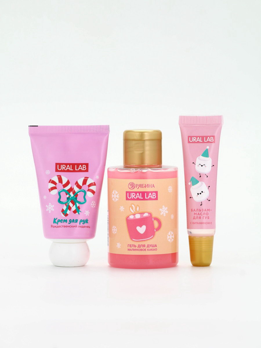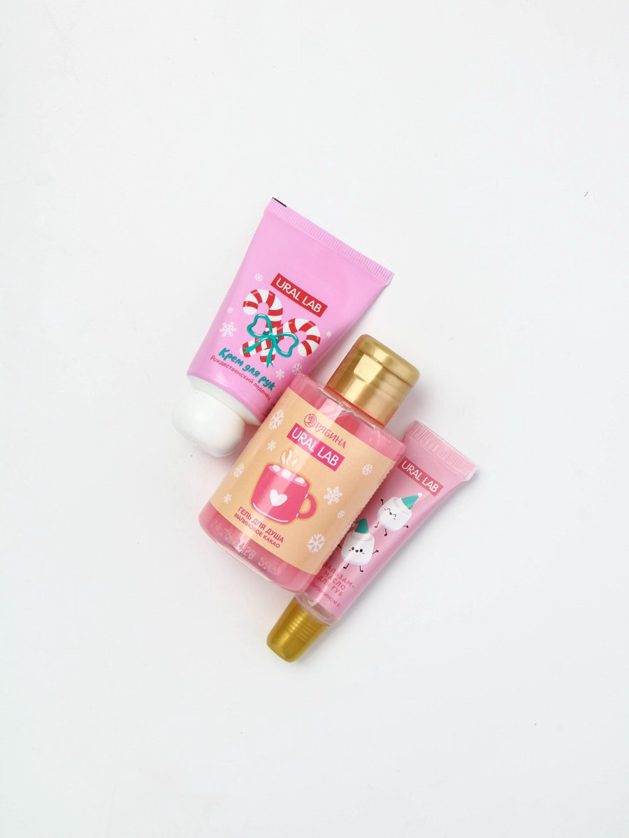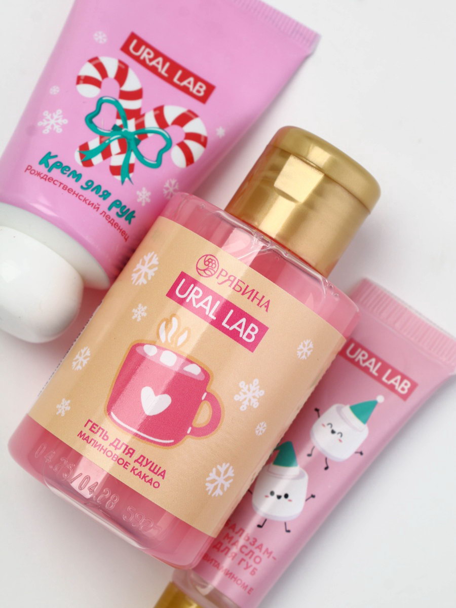 Подарочный набор в новогоднем носке: гель для душа, крем для рук, бальзам для губ и пилочка, URAL LAB, Россия