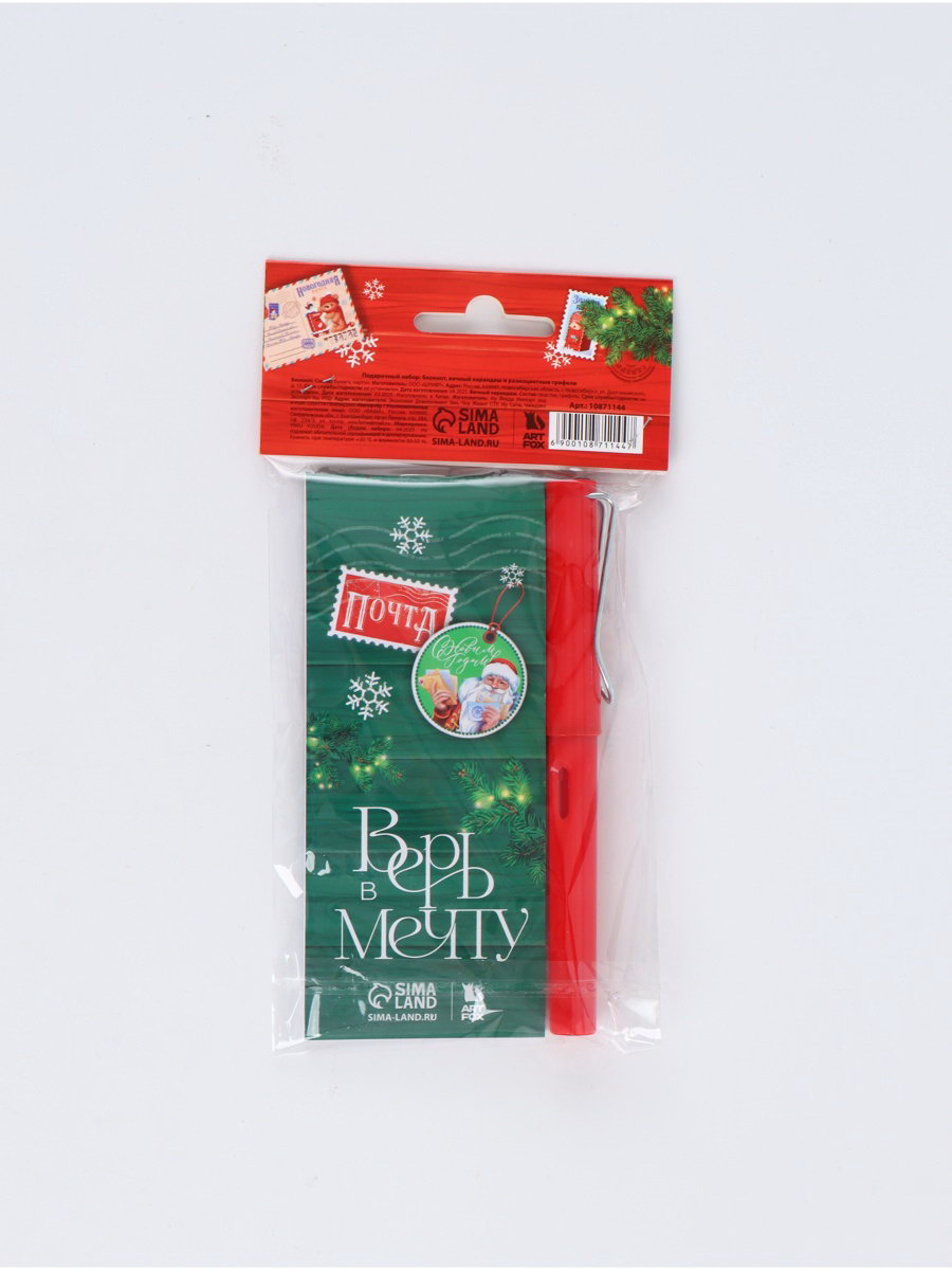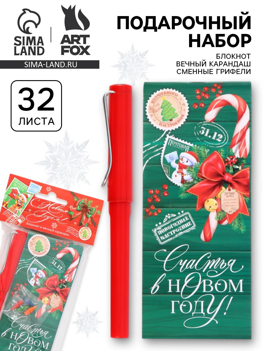 Подарочный набор новогодний, блокнот, вечный карандаш, сменные грифели "Почта", ArtFox, Россия