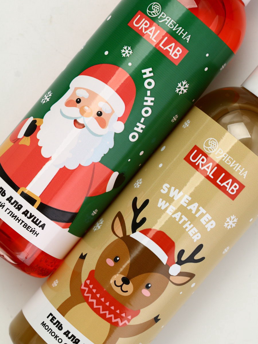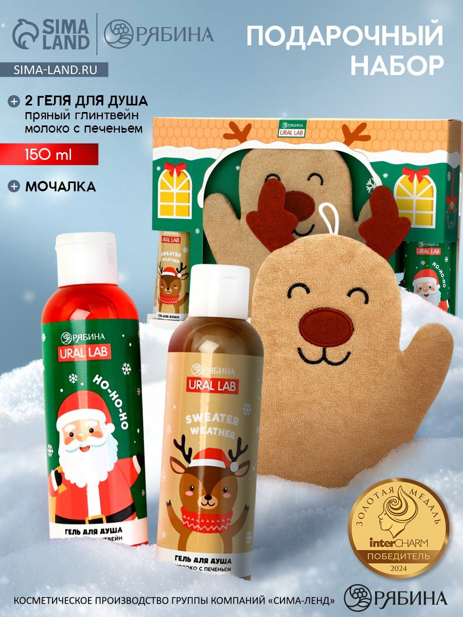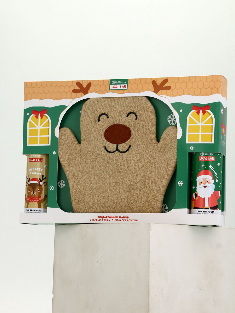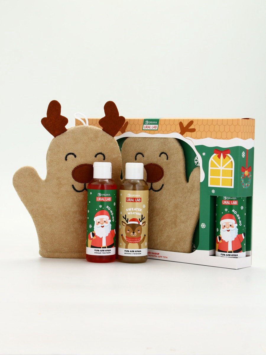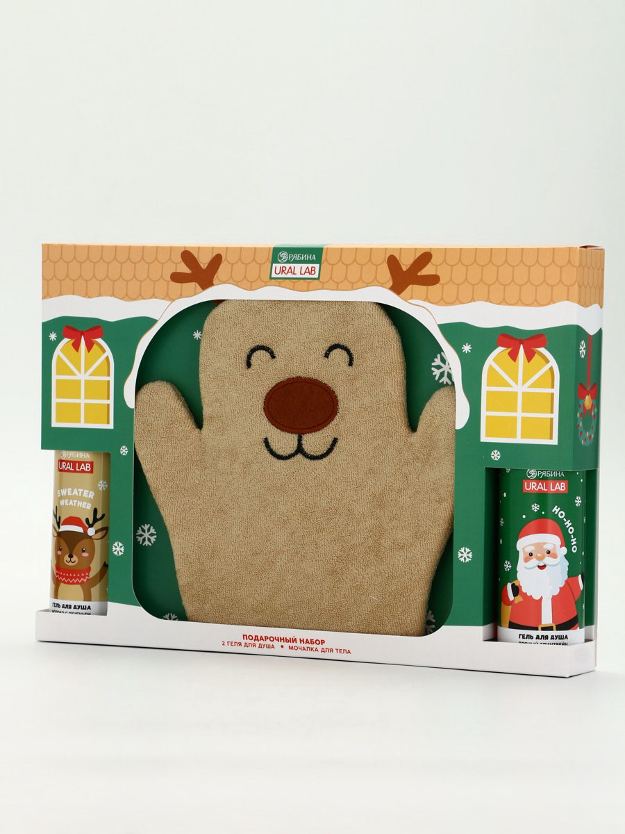Подарочный набор новогодний "Олень", гель для душа 2 шт х150 мл, мочалка, URAL LAB, Россия