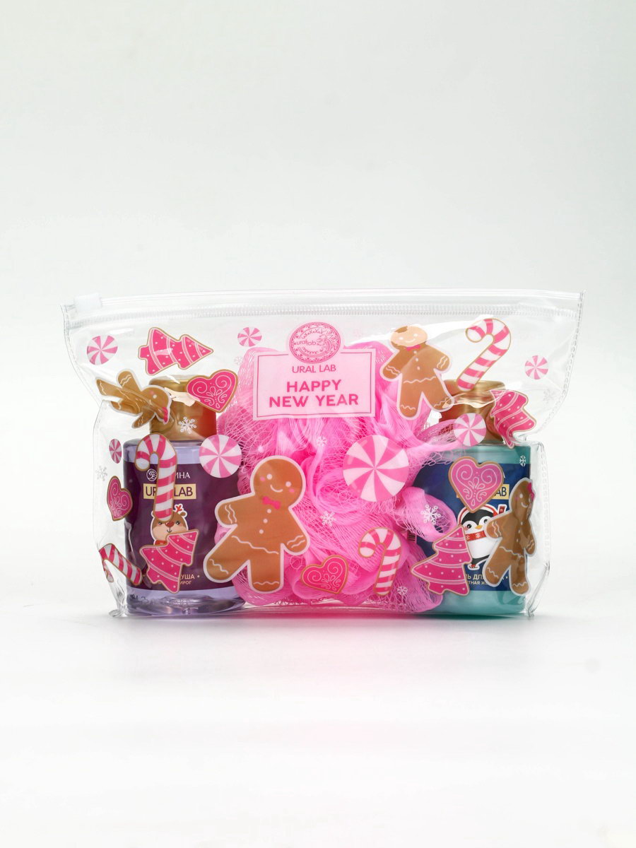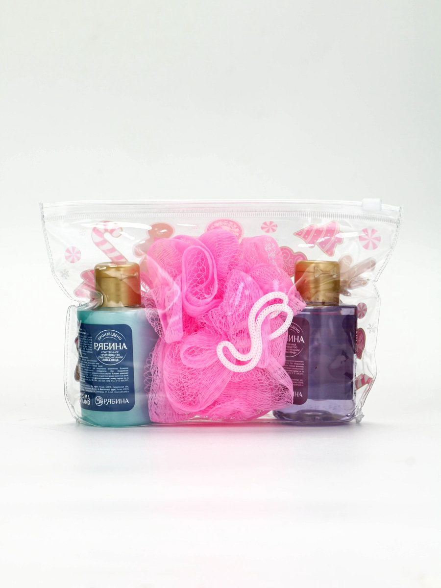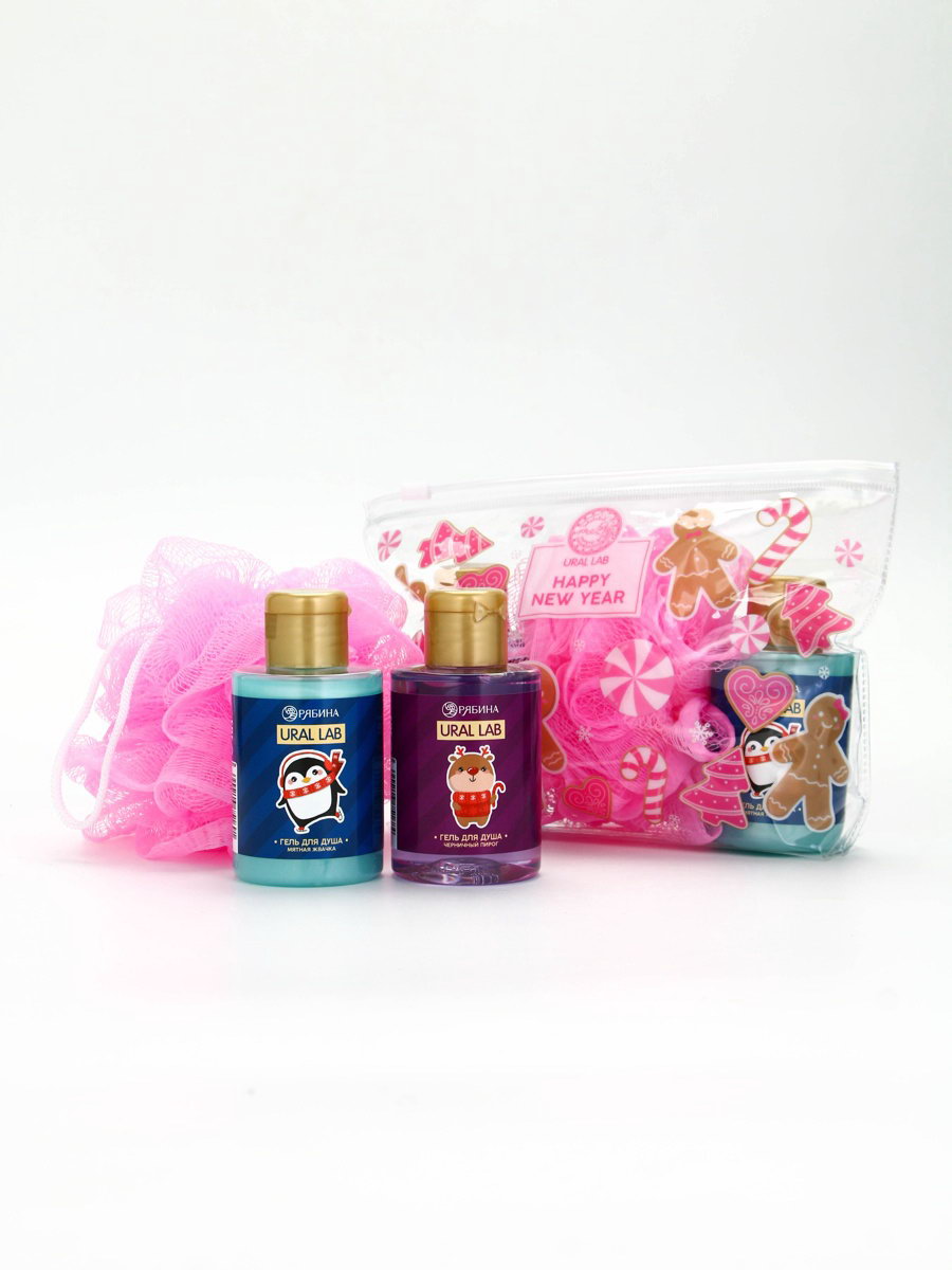 Набор косметики в косметичке, гели для душа, 2 x 100 мл и мочалка для тела, URAL LAB, Россия