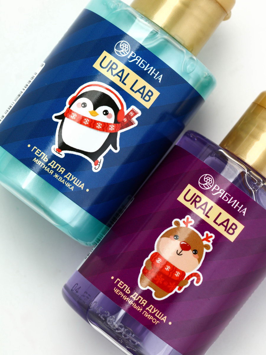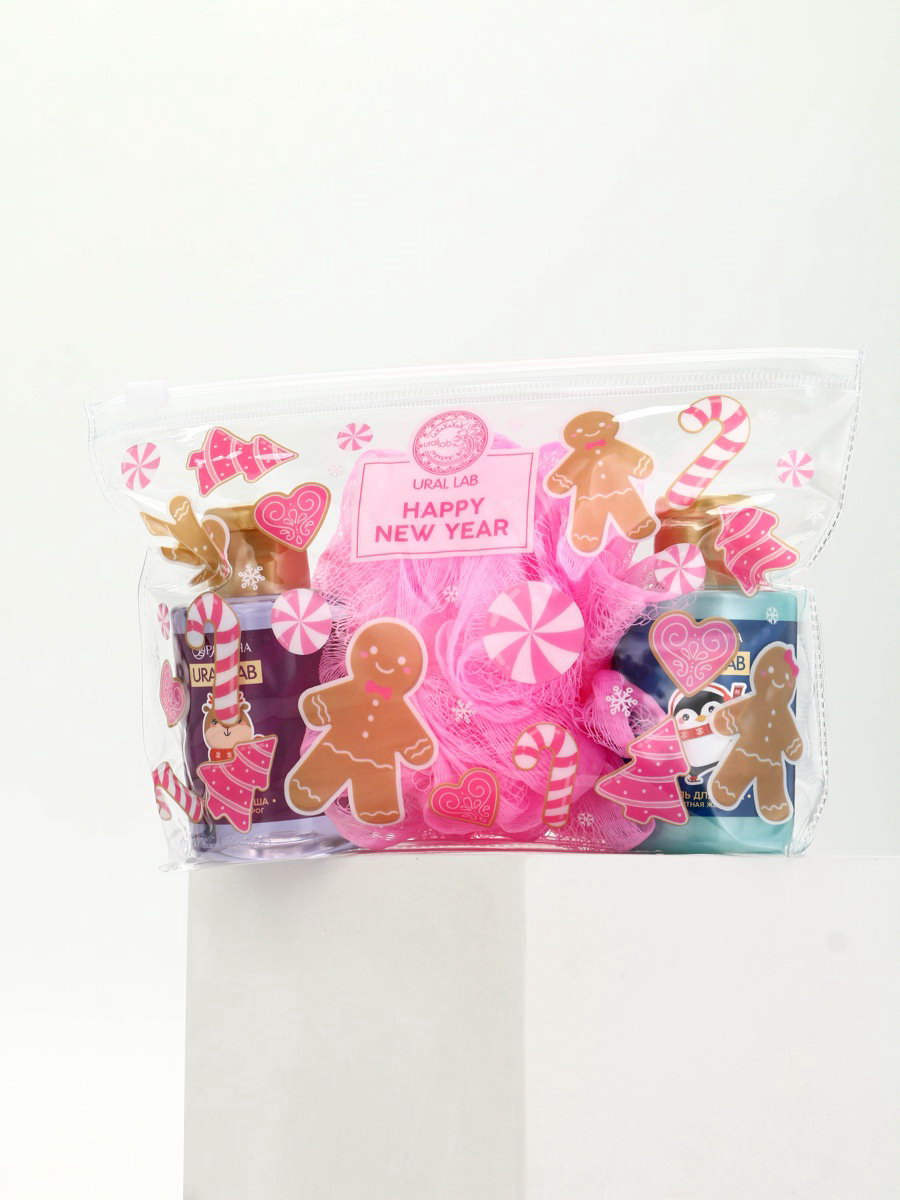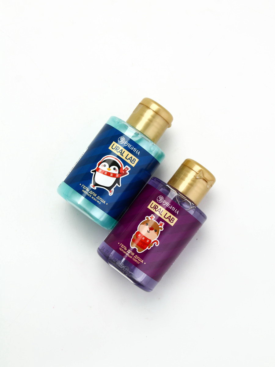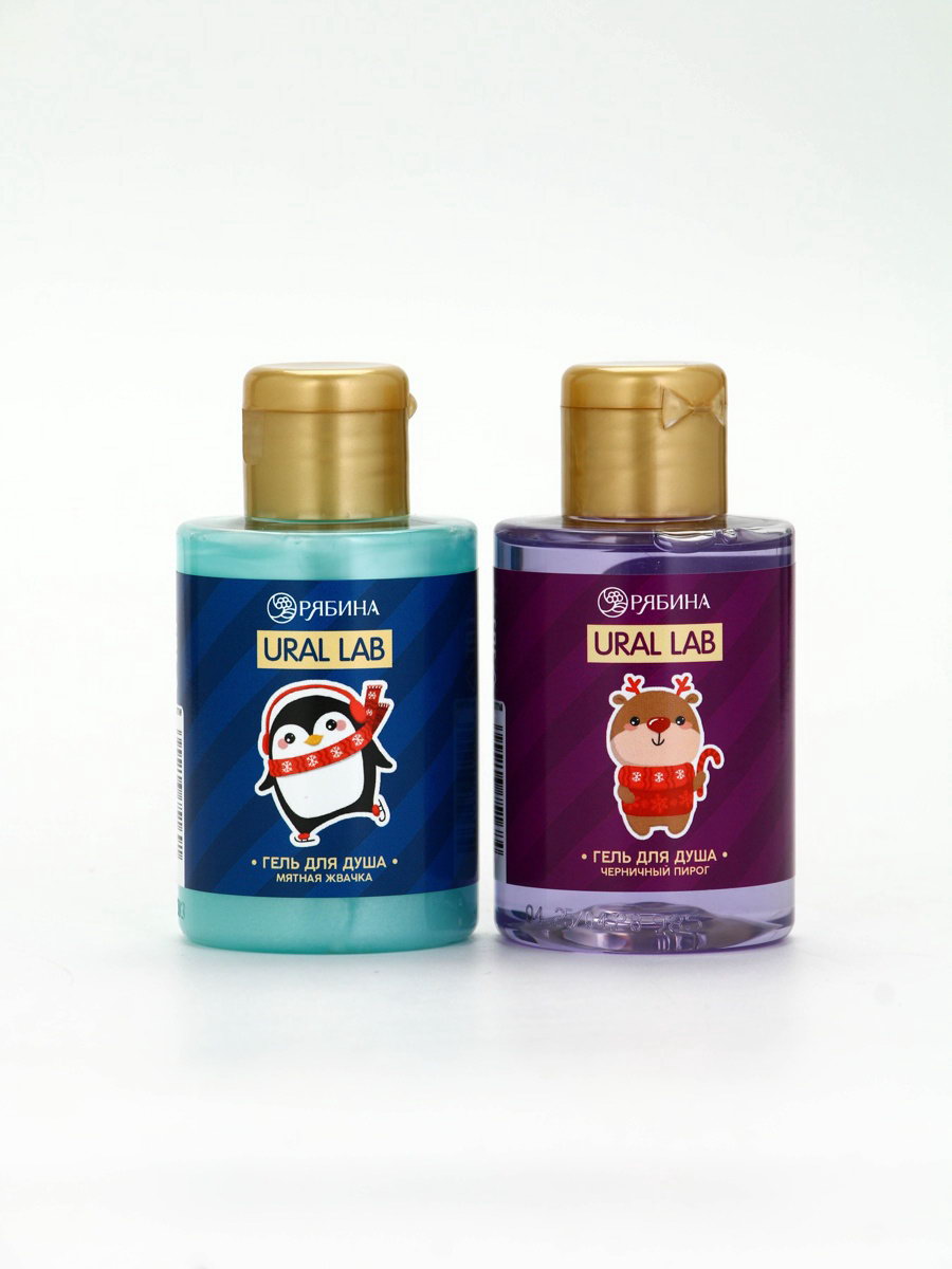 Набор косметики в косметичке, гели для душа, 2 x 100 мл и мочалка для тела, URAL LAB, Россия