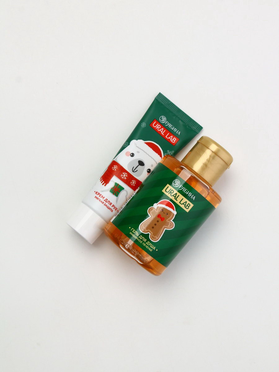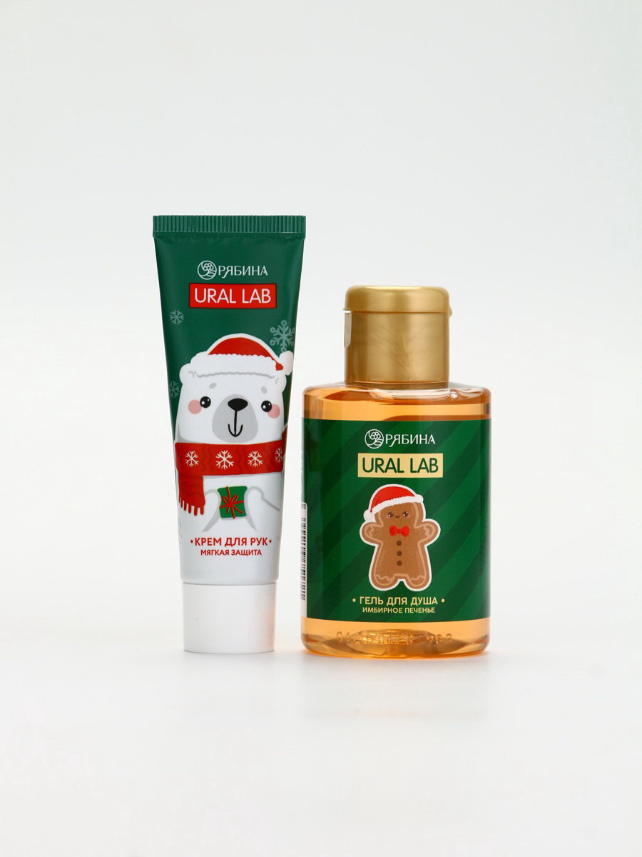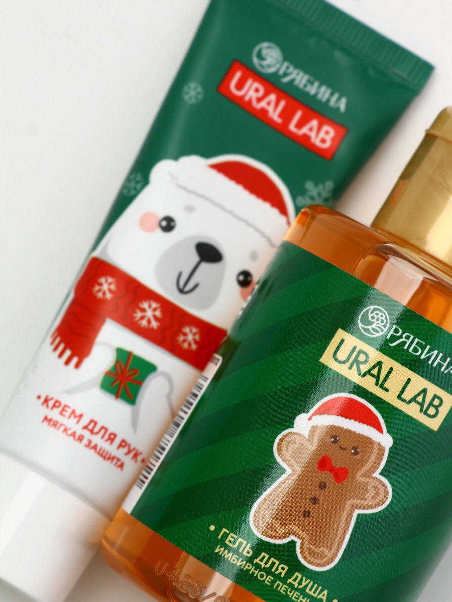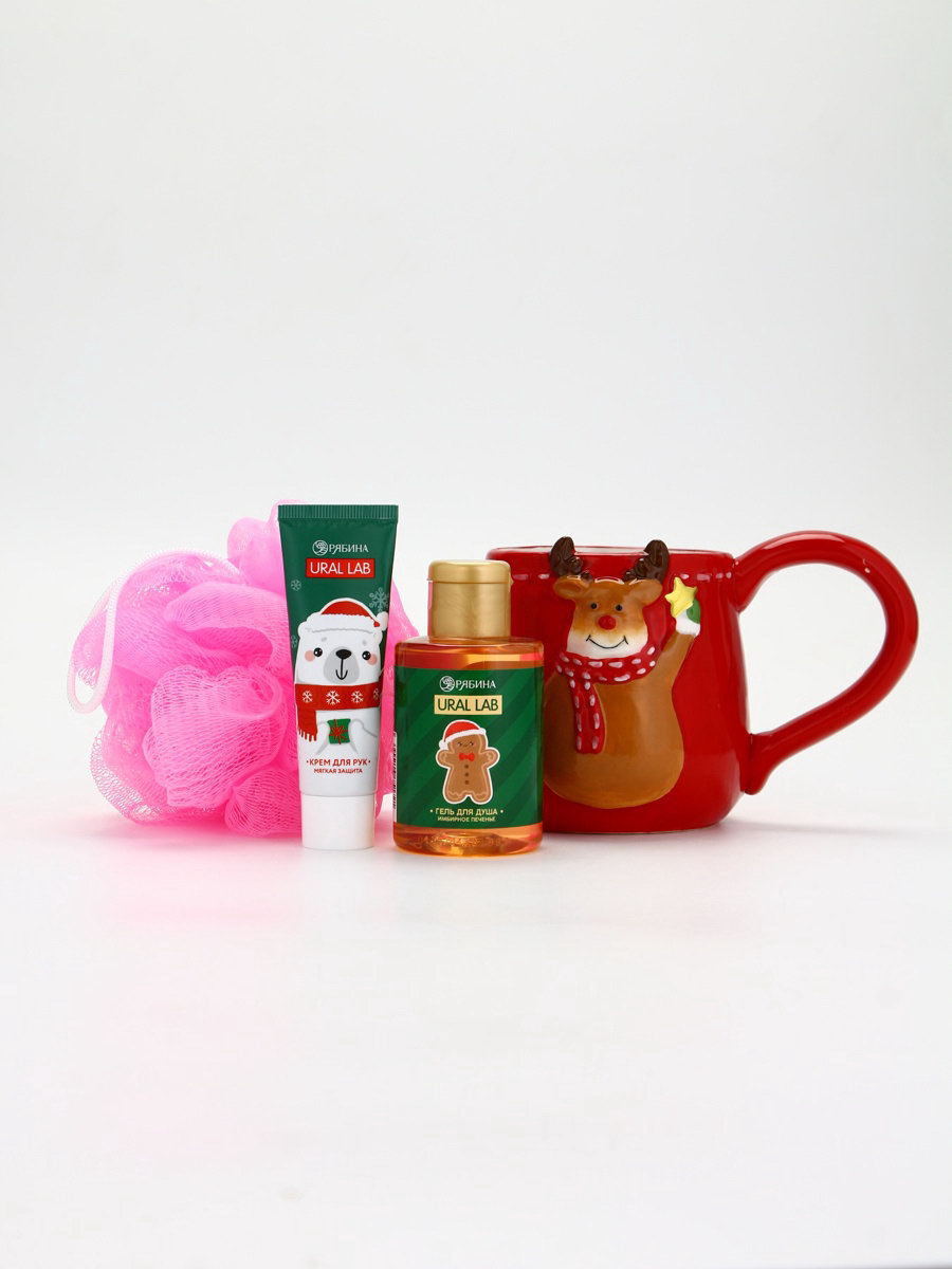 Подарочный набор новогодний "Олень", гель для душа, кружка, мочалка и крем для рук, URAL LAB, Россия