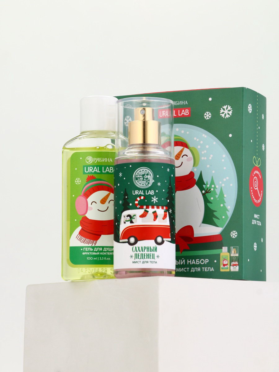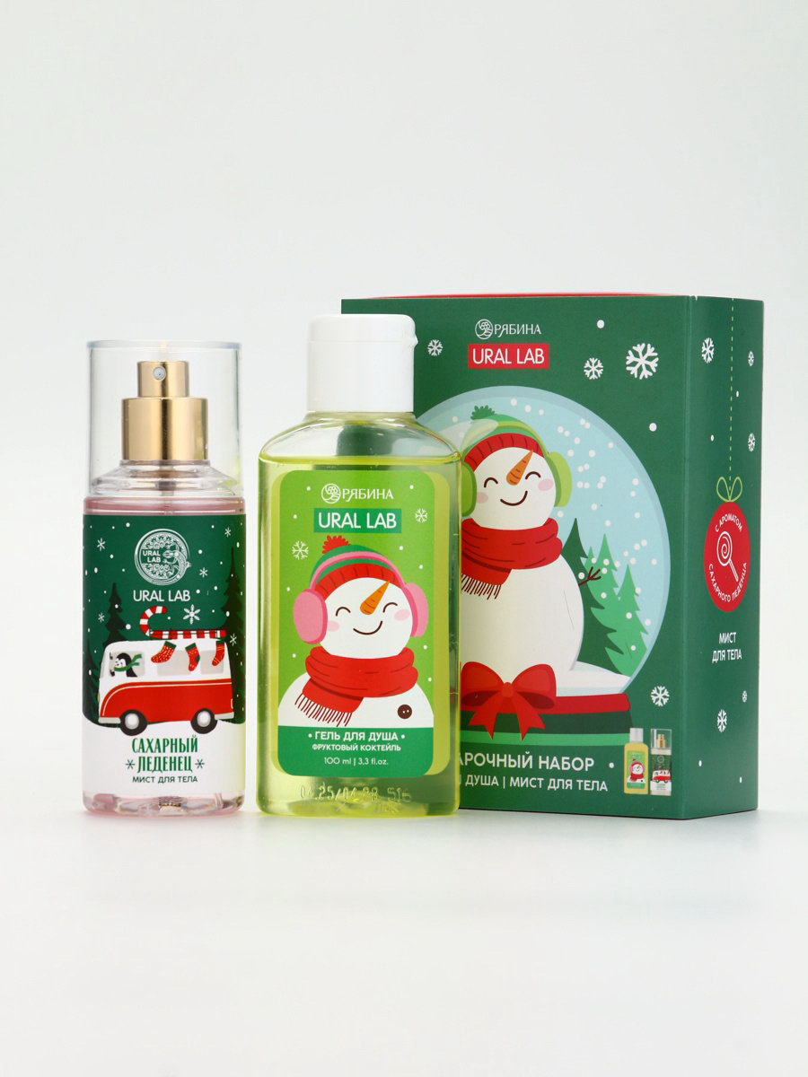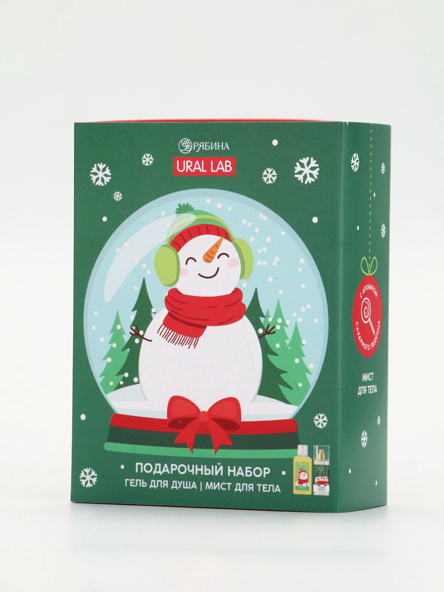 Подарочный набор новогодний "Снеговичок", гель для душа 100 мл и мист для тела, URAL LAB, Россия