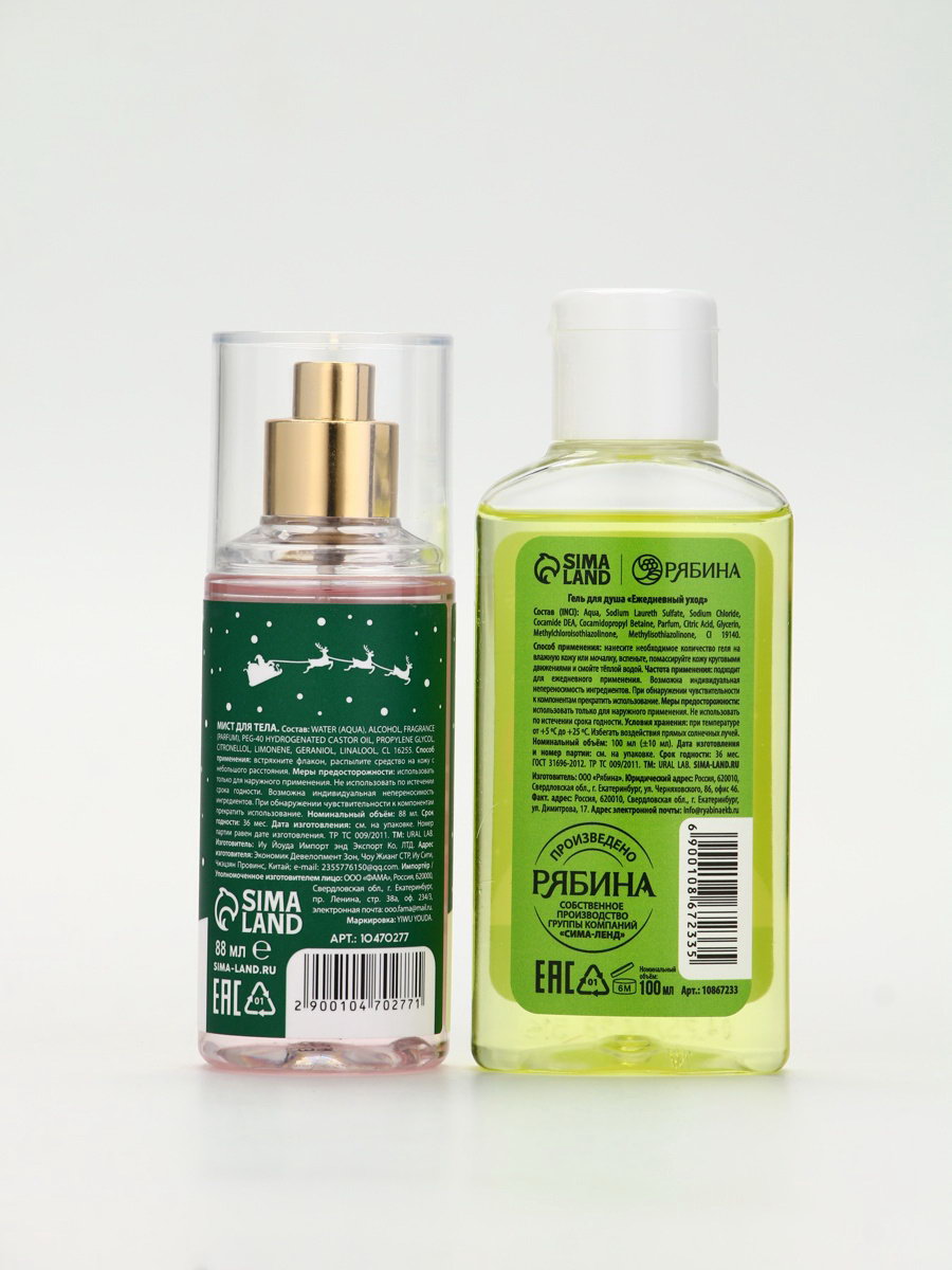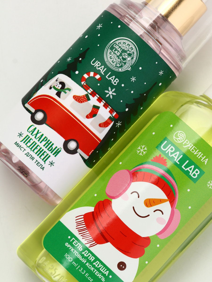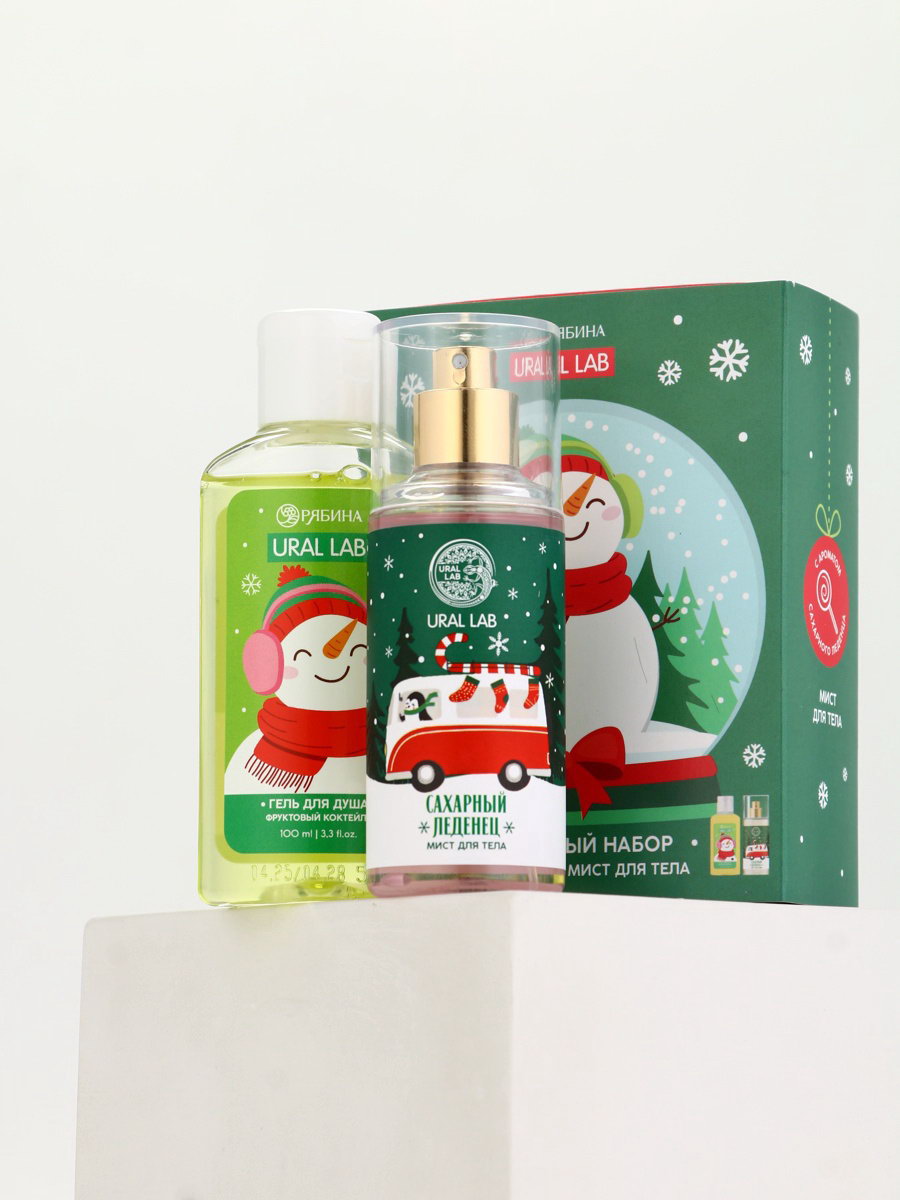 Подарочный набор новогодний "Снеговичок", гель для душа 100 мл и мист для тела, URAL LAB, Россия
