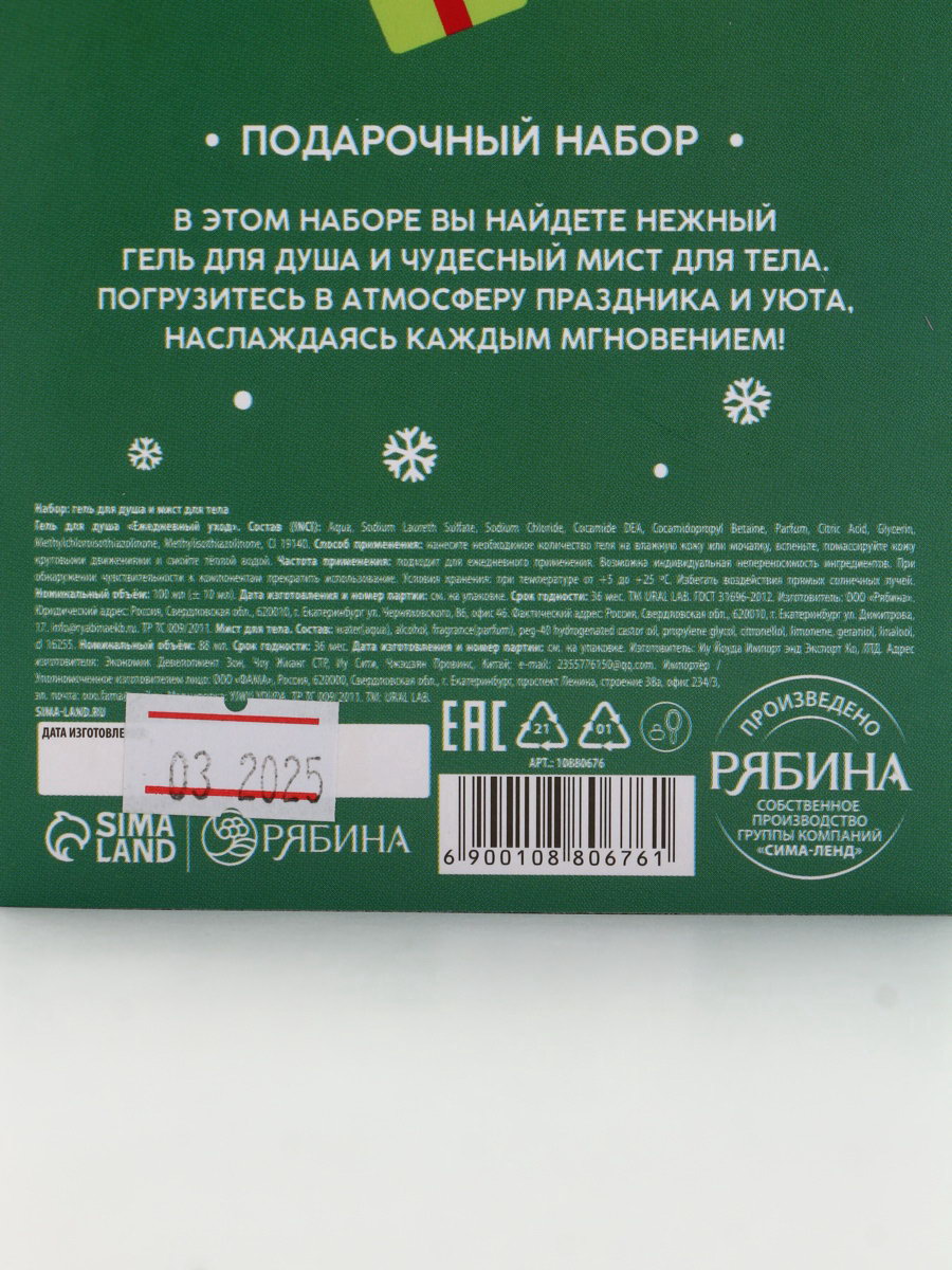 Составляющие набора: Гель для душа, Мист Возраст: Взрослый, Для взрослых Аромат: Сахарный леденец, Фруктовый коктейль Размер упаковки: 10 x 13 x 4.5 см. tnved: 3401300000 Вид упаковки: Подарочная коробка Символ года: Нет Тематика праздника: Новый год Для кого: Для женщины Адресат: Без адресата Область применения: Для тела В наборе, шт.: 2 Тематика подарка: Уходовая косметика Набор: Да | ||