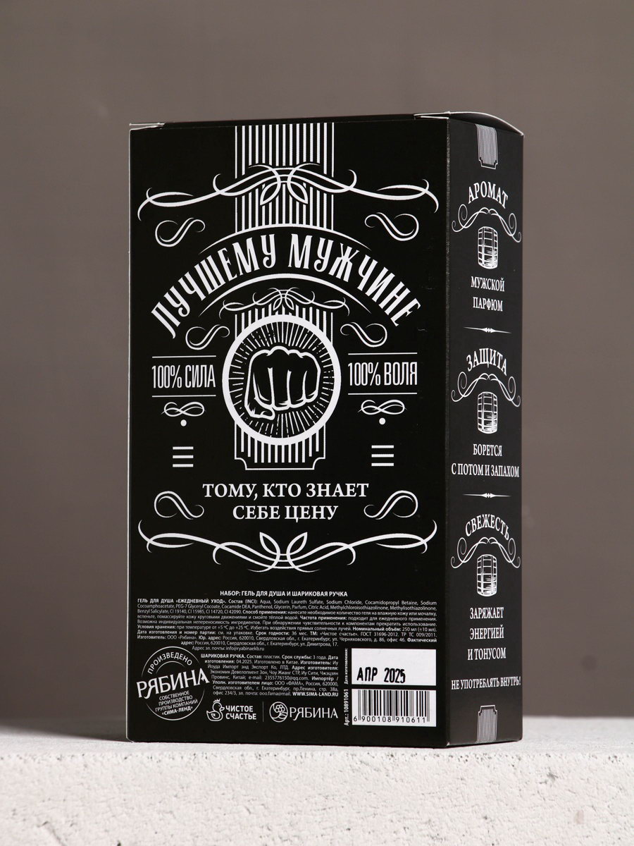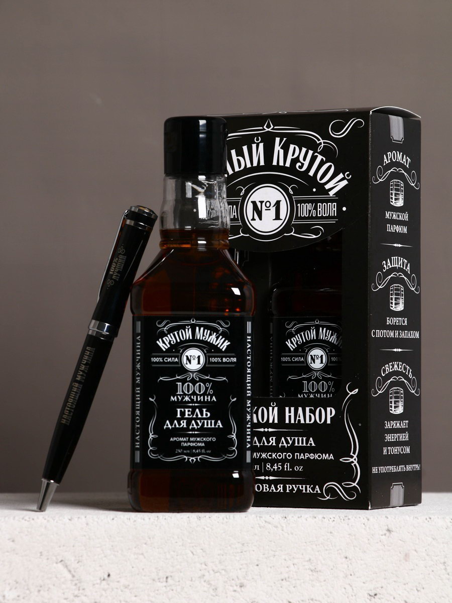 Набор "Самый крутой", гель для душа во флаконе виски и шариковая ручка, Чистое счастье, Россия