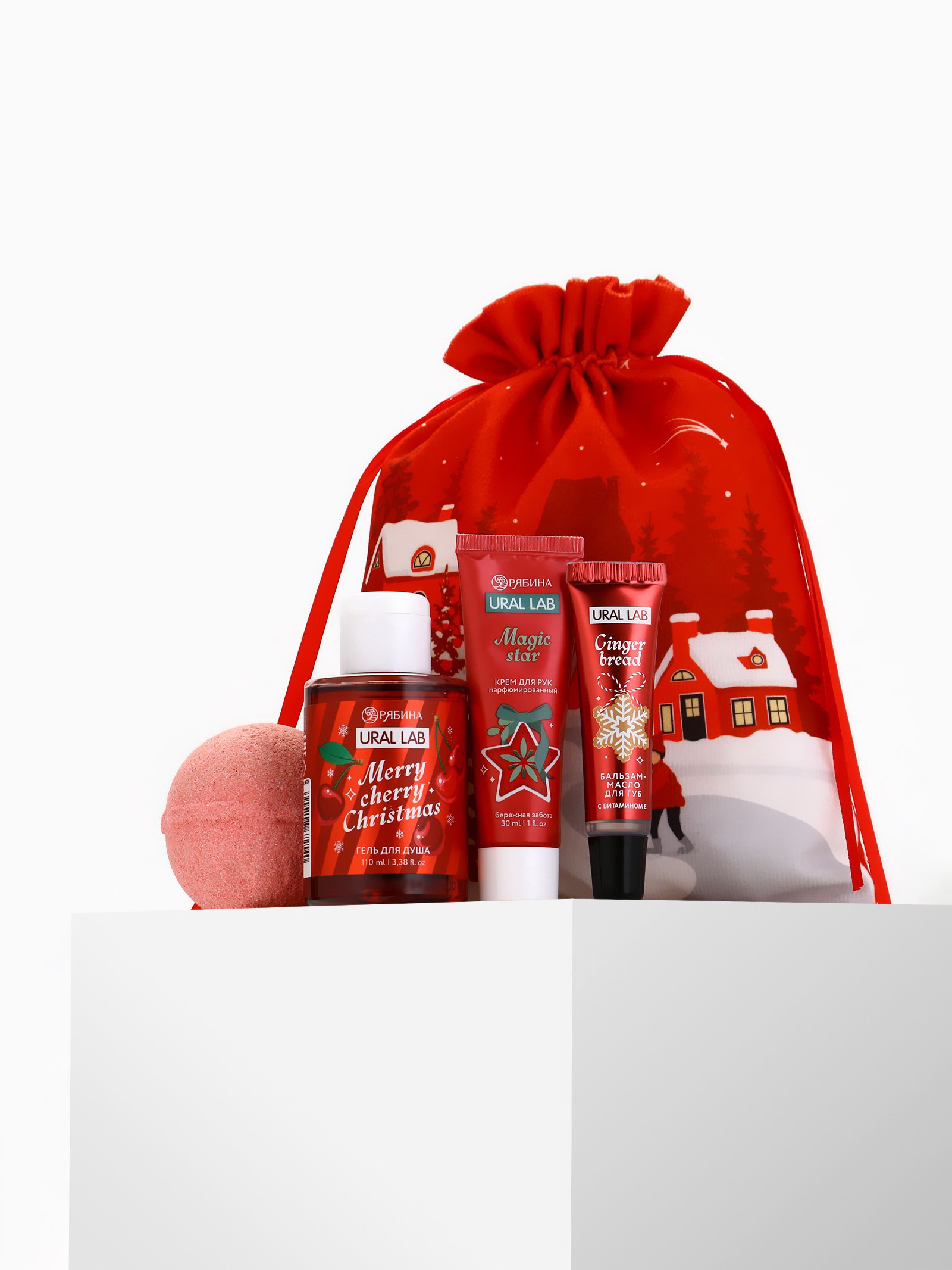 Новогодний подарочный набор косметики в мешке, домики, URAL LAB, Россия