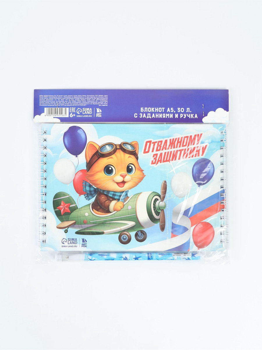 Подарочный набор "С 23 февраля", двойной блокнот с заданиями и ручка, ArtFox, Россия