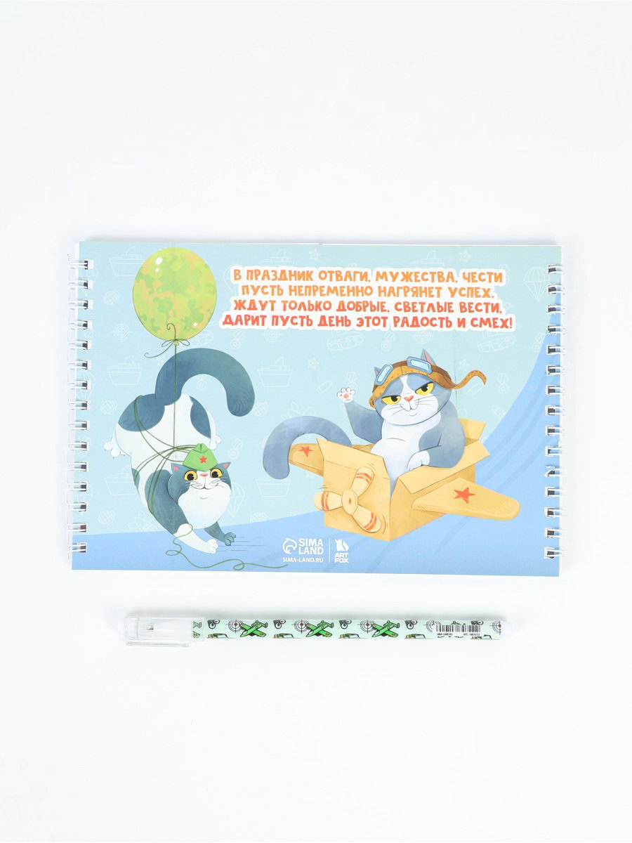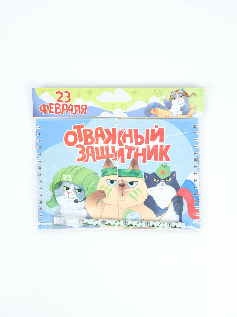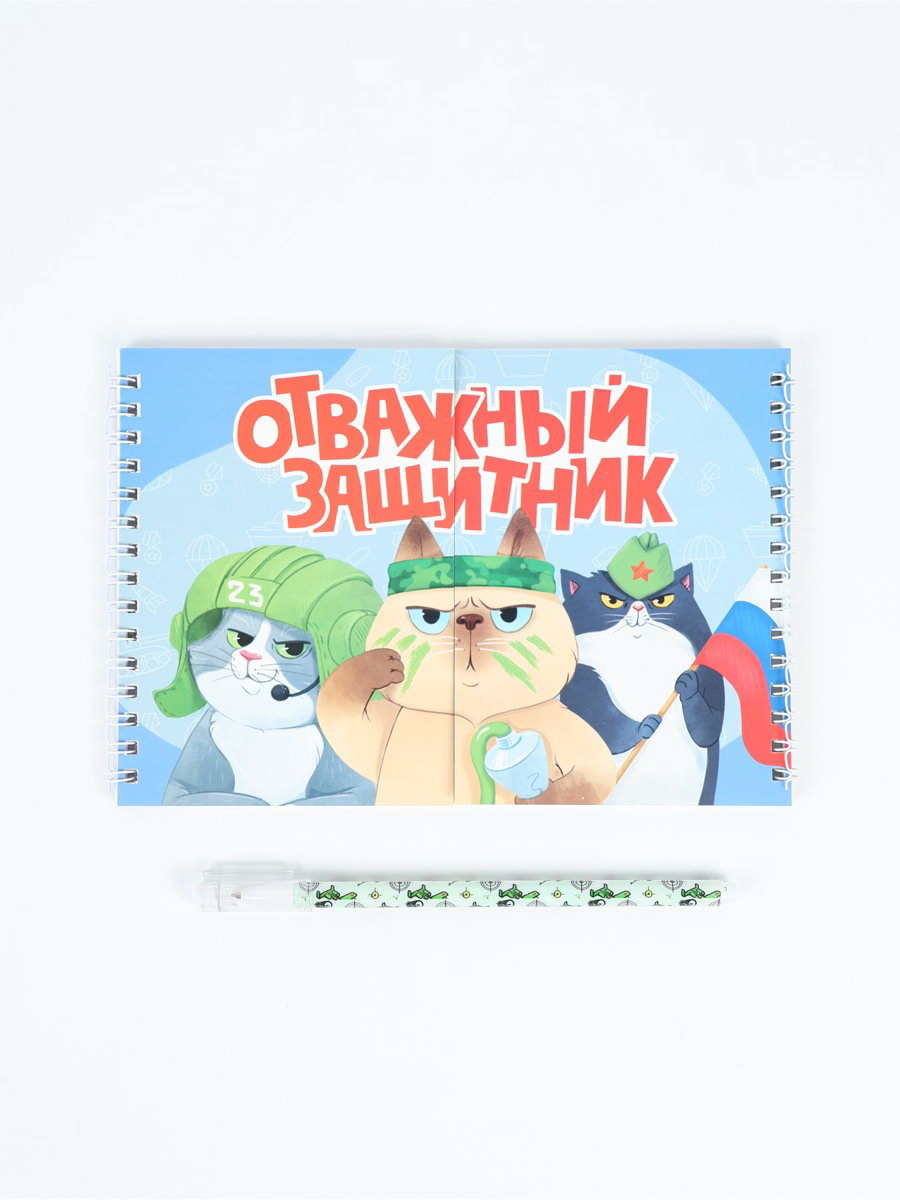 Подарочный набор, двойной блокнот с заданиями, ручка "Отважный защитник", ArtFox, Россия