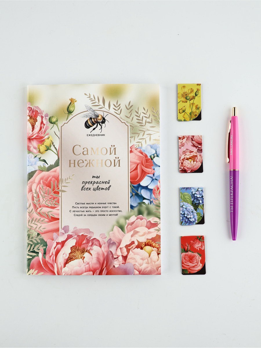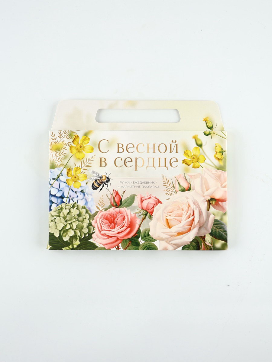 Подарочный набор: ежедневник А5, магнитные закладки и ручка "С весной в сердце", Россия