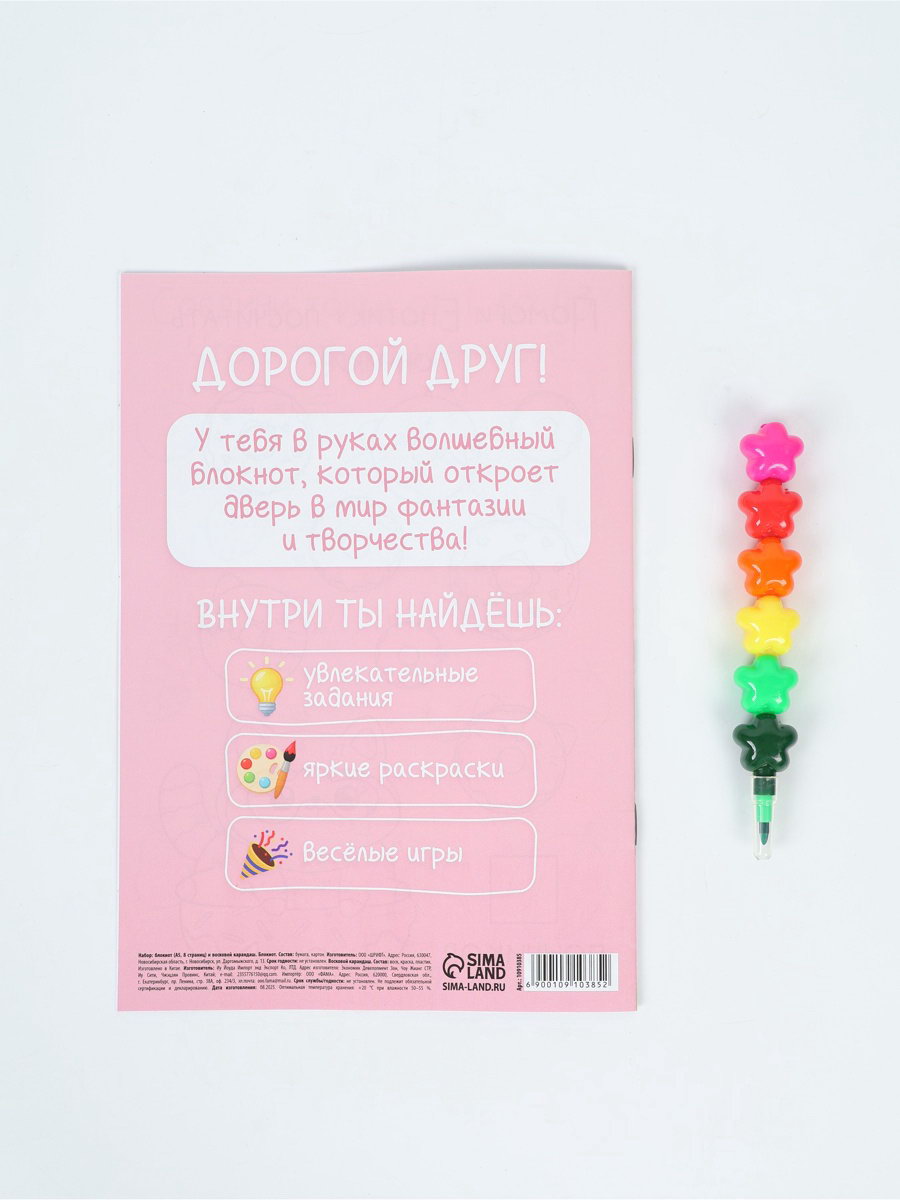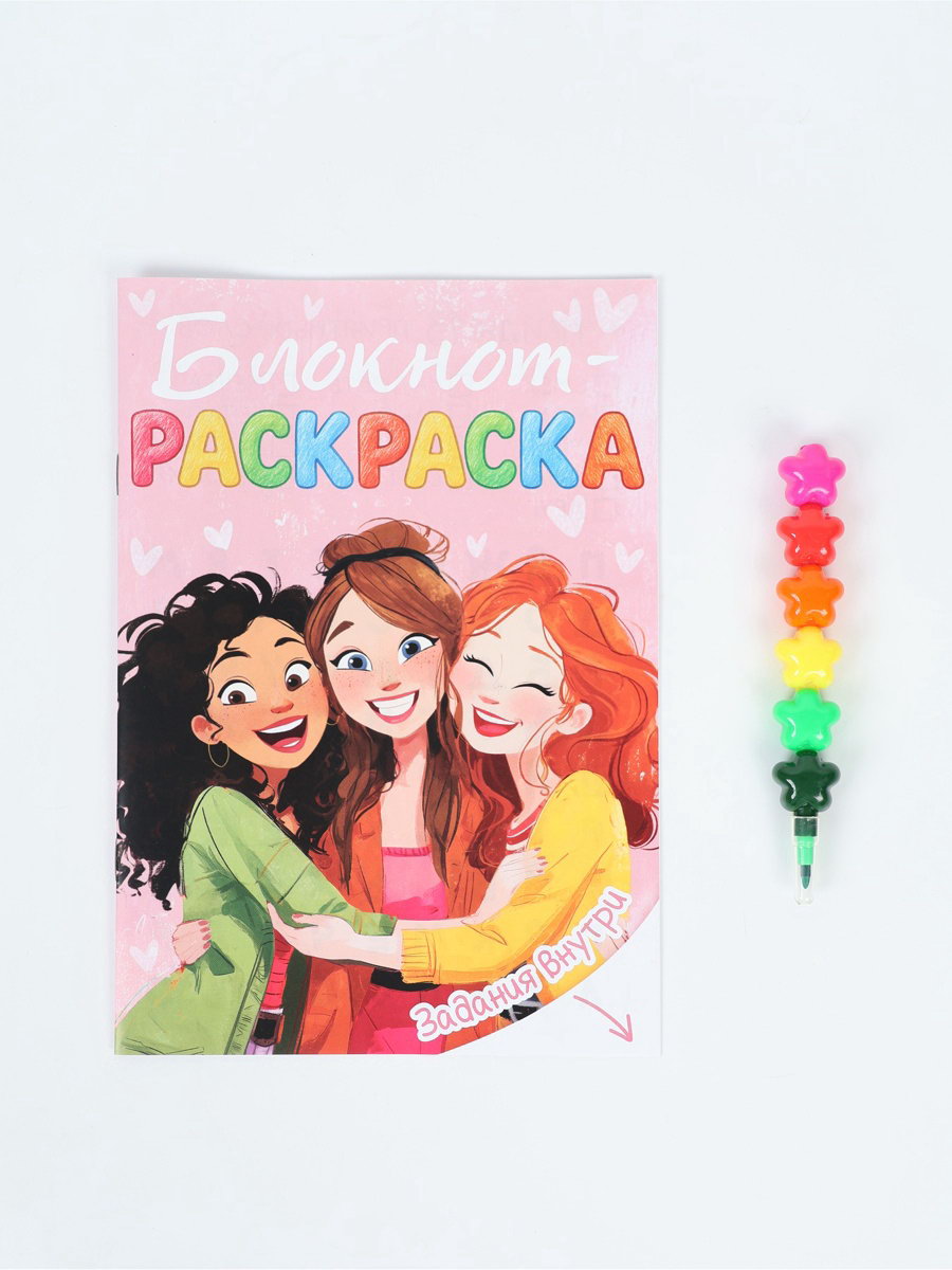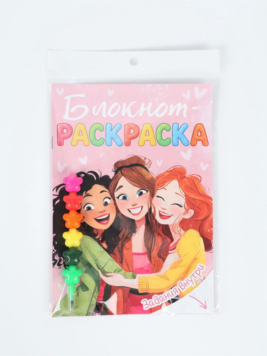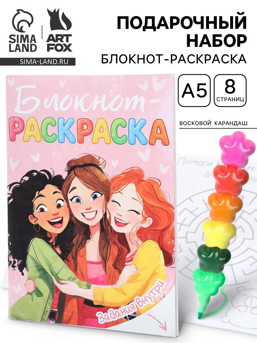 Подарочный набор, блокнот-раскраска А5, 8 страниц, восковой карандаш "Подружки", ArtFox, Россия