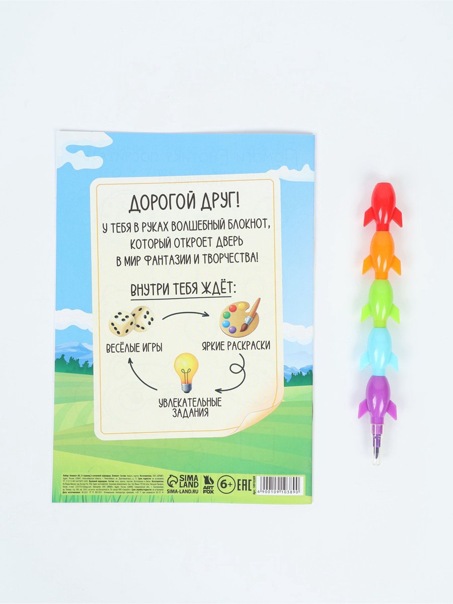 Подарочный набор, блокнот-раскраска А5, 8 страниц, восковой карандаш "Только вперёд", ArtFox, Россия
