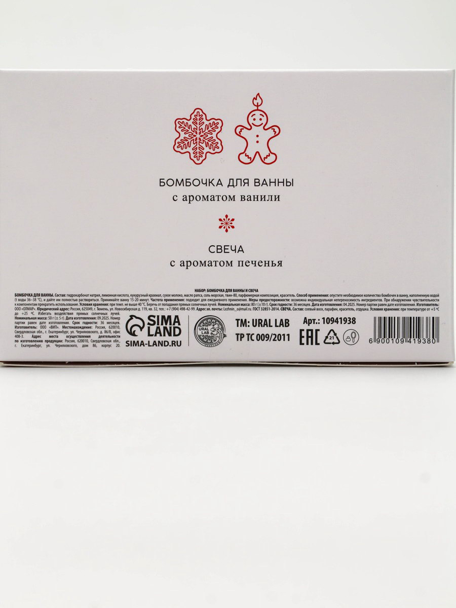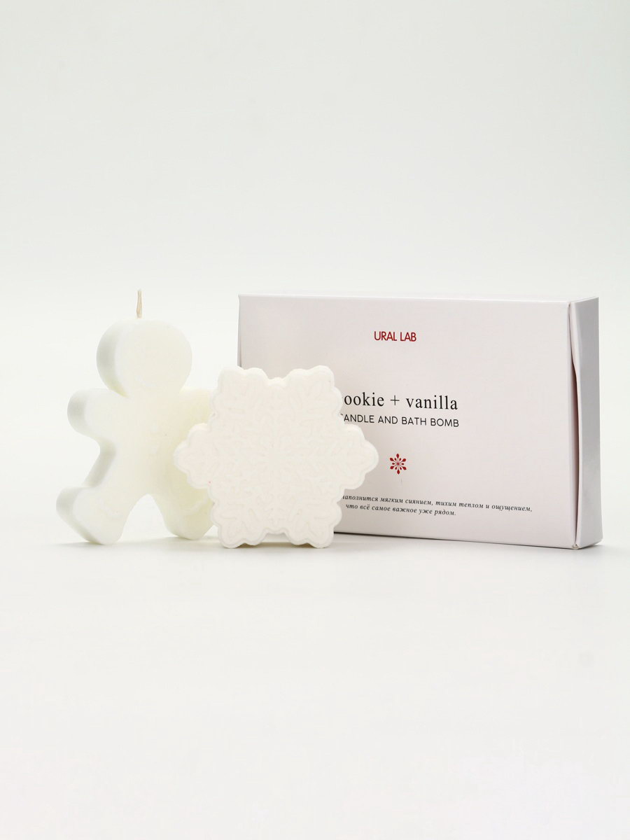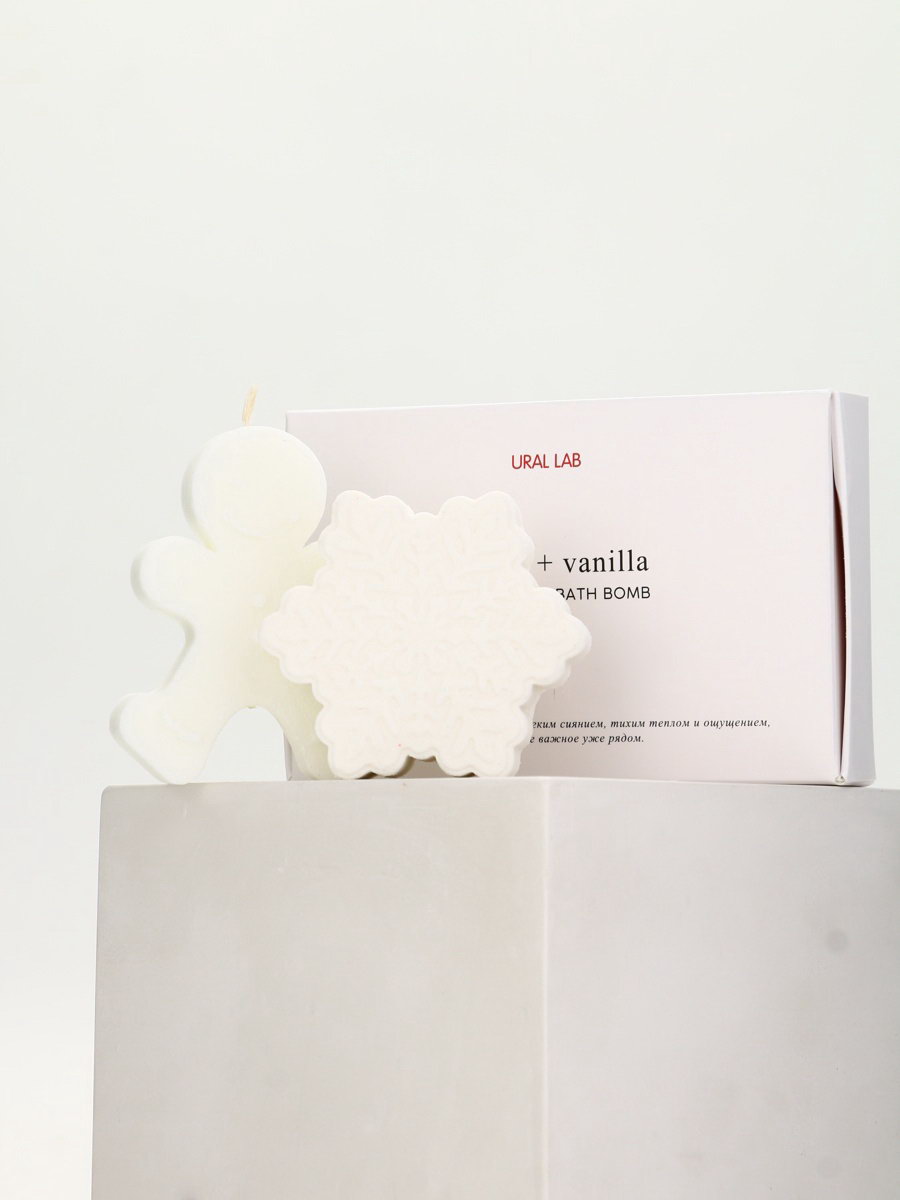 Подарочный набор новогодний: бомбочка снежинка и фигурная свеча пряня, URAL LAB, Россия