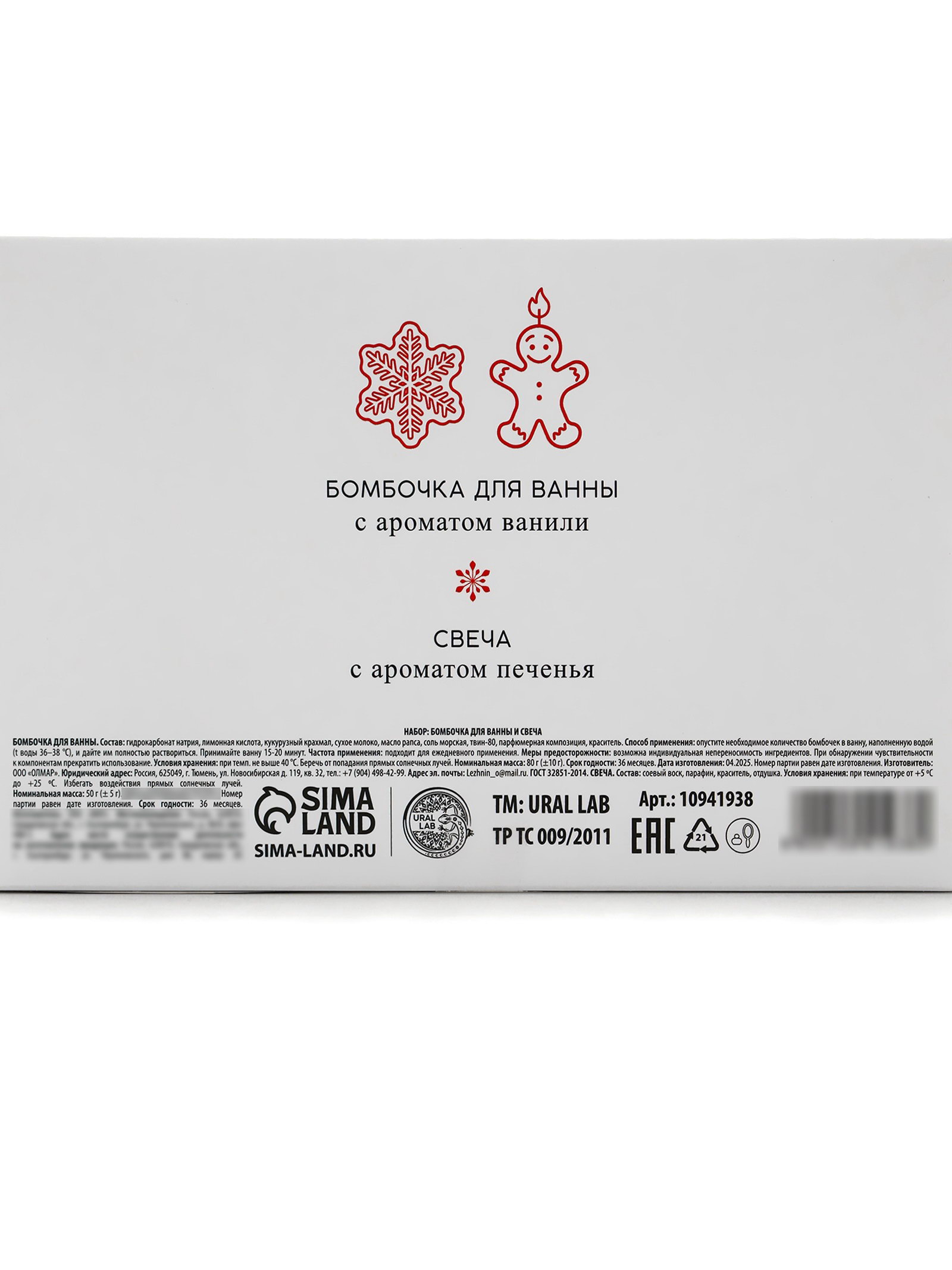 Подарочный набор новогодний: бомбочка снежинка и фигурная свеча пряня, URAL LAB, Россия