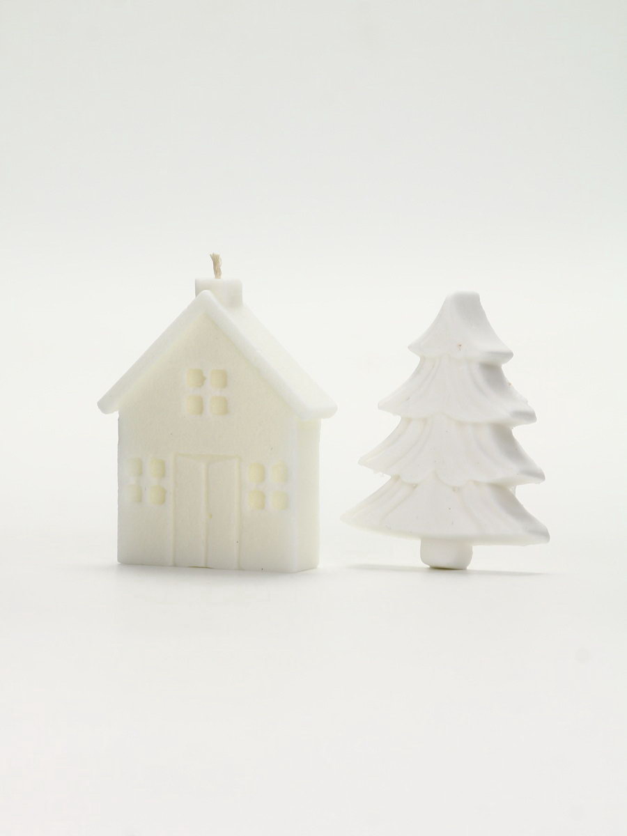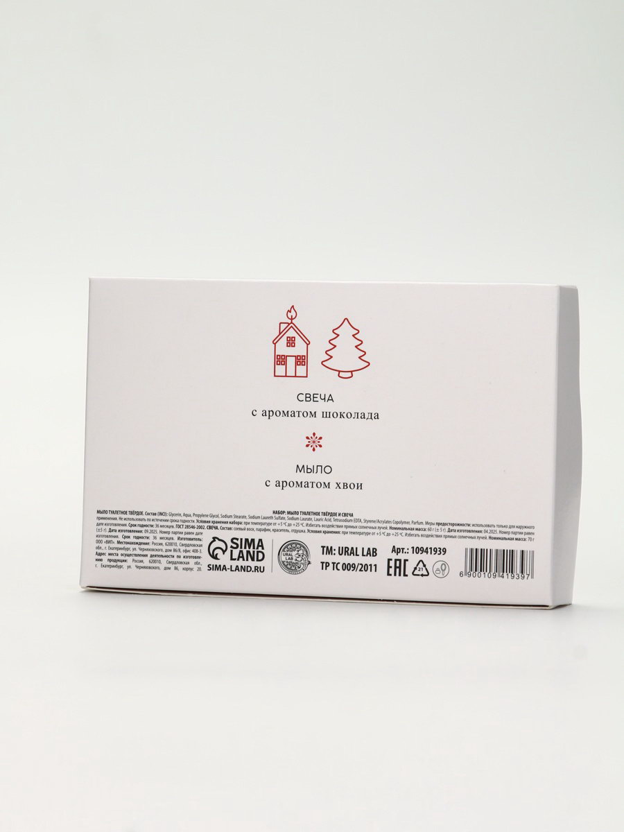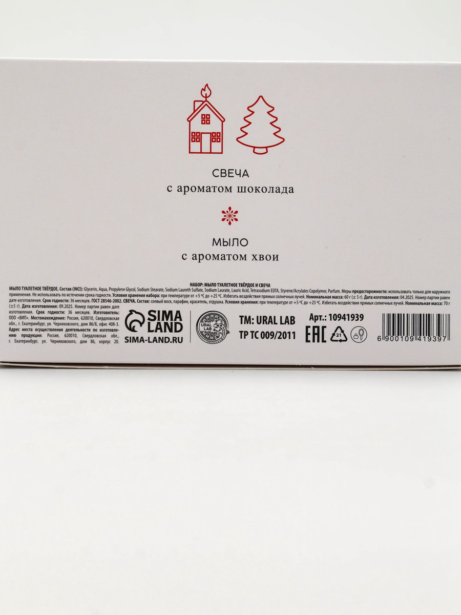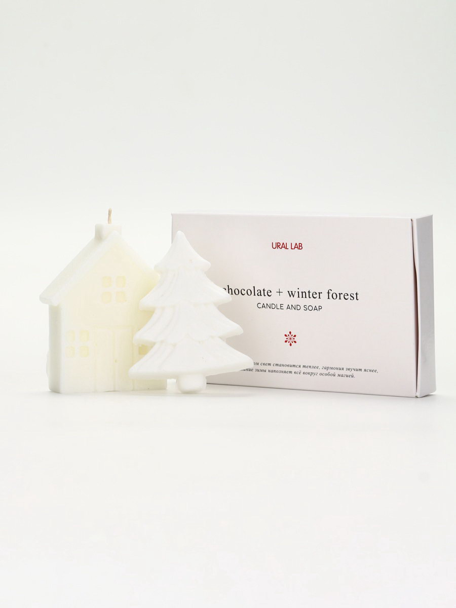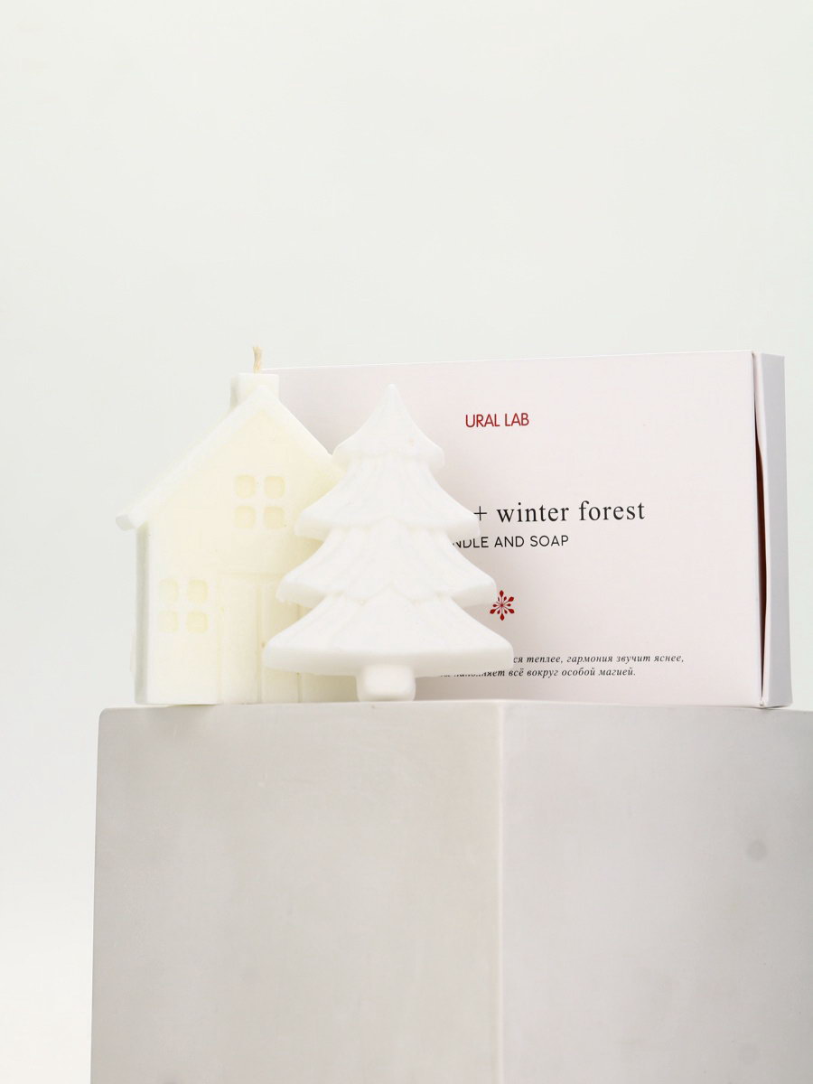 Подарочный набор новогодний: фигурное мыло ёлка и фигурная свеча дом, URAL LAB, Россия