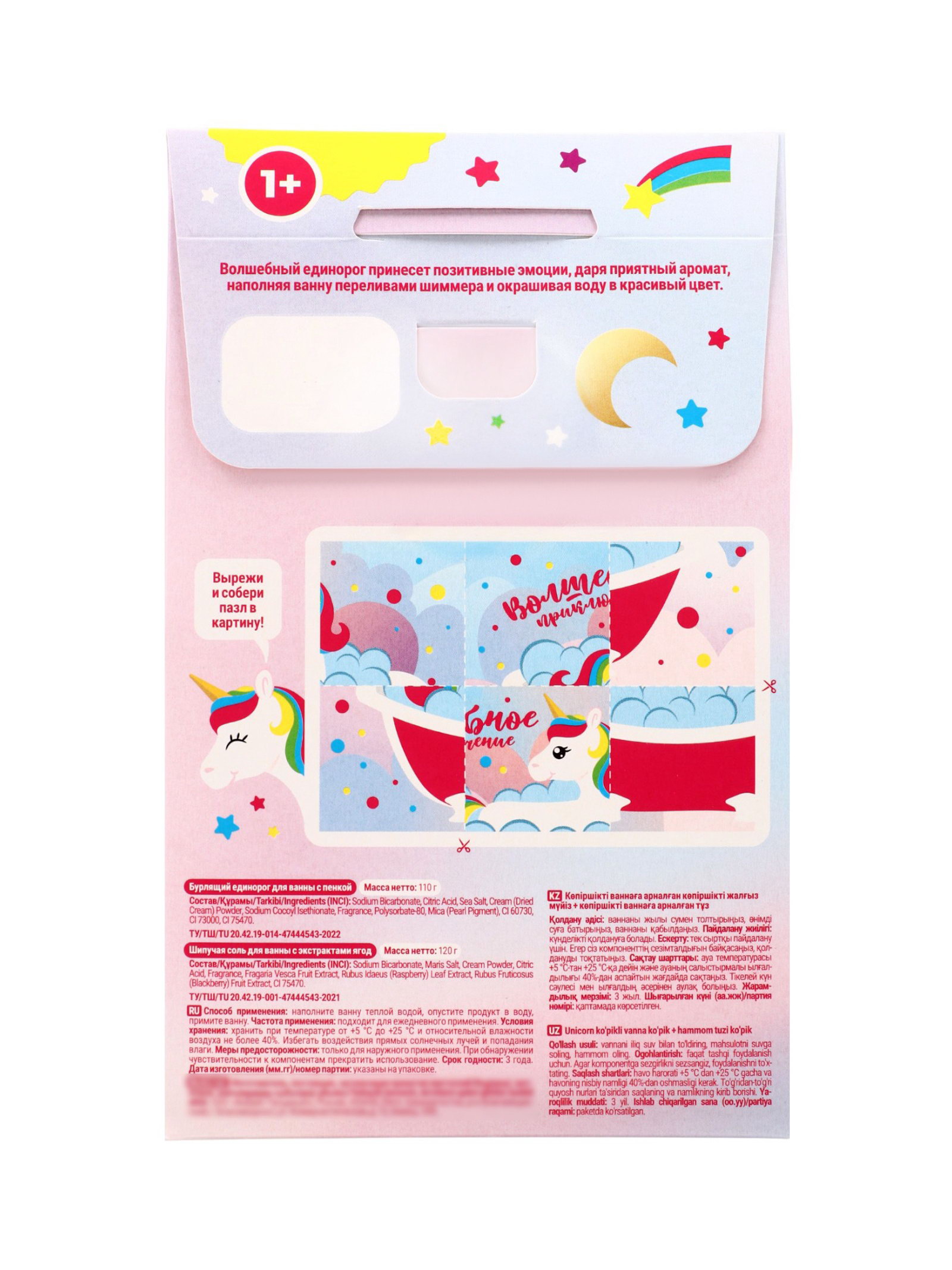Возраст: Взрослый, Детский, Для детей Составляющие набора: Бомбочка для ванн, Соль для ванны Размер упаковки: 11 x 5 x 17 см. tnved: 3307300000 tnved: 3307300000 Адресат: Без адресата Тематика подарка: Гигиена Вид упаковки: Картонная упаковка Тематика праздника: Универсальная тематика Температурное ограничение: Нет Для кого: Унисекс В наборе, шт.: 2 Форма: Фигурная Особенности: Без особенностей Вес, г: 230 Набор: Да Набор "Единорог + шипучая соль" FABRIK Cosmetology, 230 г это волшебное сочетание для яркого и ароматного купания. В набор входит фигурка единорога, которая при погружении в воду наполняет её переливами шиммера, окрашивая воду в красивый цвет и создавая сказочную атмосферу. Дополнительно шипучая соль для ванны с экстрактами ягод мягко очищает кожу, расслабляет и дарит ароматное удовольствие. Набор подарит позитивные эмоции и превратит обычное купание в маленький праздник. Состав единорога: Sodium Bicarbonate, Citric Acid, Sea Salt, Cream (Dried Cream) Powder, Sodium Cocoyl Isethionate, Fragrance, Polysorbate-80, Mica (Pearl Pigment), CI 60730, CI 75470, CI 73000 (Бикарбонат натрия, лимонная кислота, морская соль, сухие сливки, содиум кокоил изетионат, отдушка, ПАВ, слюда, красители). Состав шипучей соли: Sodium Bicarbonate, Maris Salt, Cream Powder, Citric Acid, Fragrance, Fragaria Vesca Fruit Extract, Rubus Idaeus (Raspberry) Leaf Extract, Rubus Fruticosus (Blackberry) Fruit Extract, CI 75470 (Бикарбонат натрия, морская соль, сухие сливки, лимонная кислота, отдушка, экстракты земляники, малины и ежевики, краситель). Особенности набора "Единорог + шипучая соль":