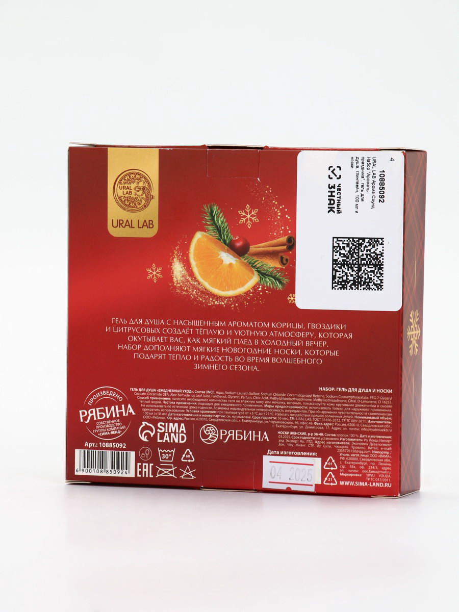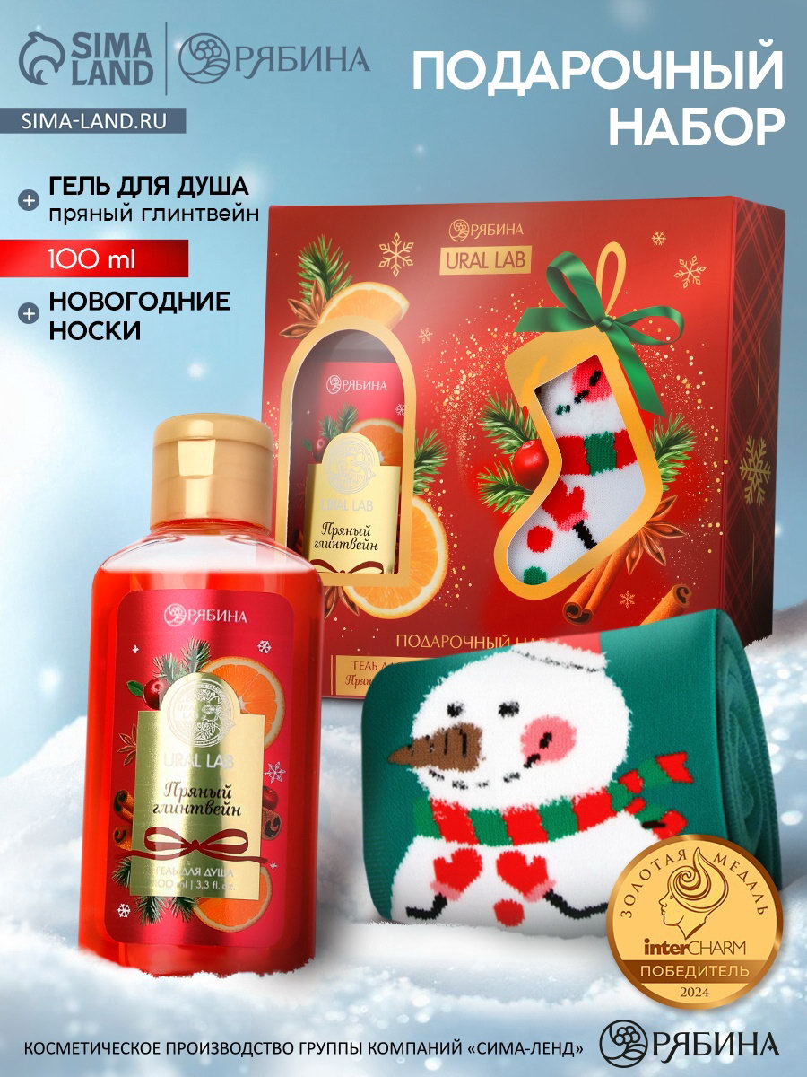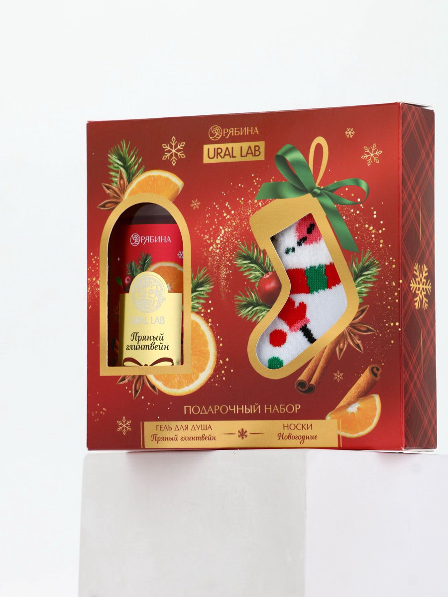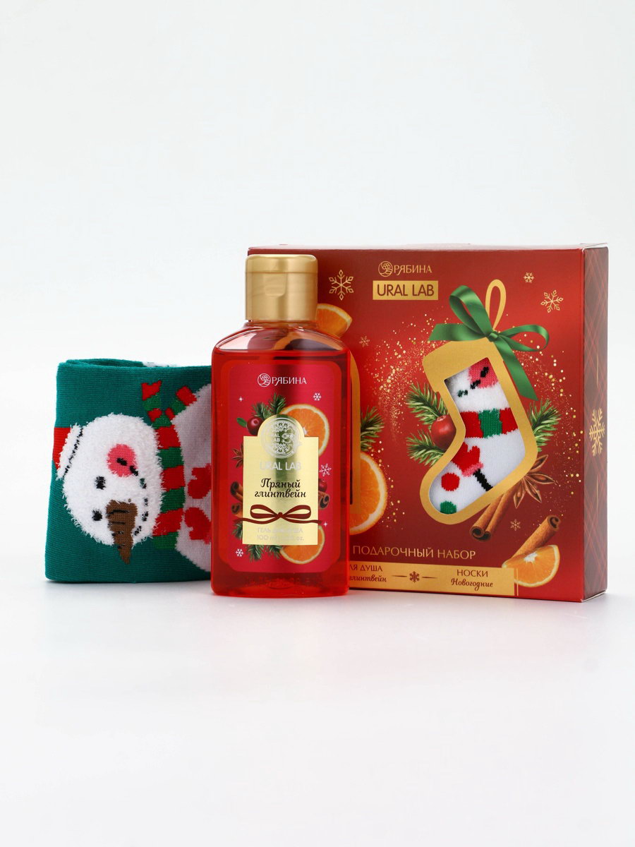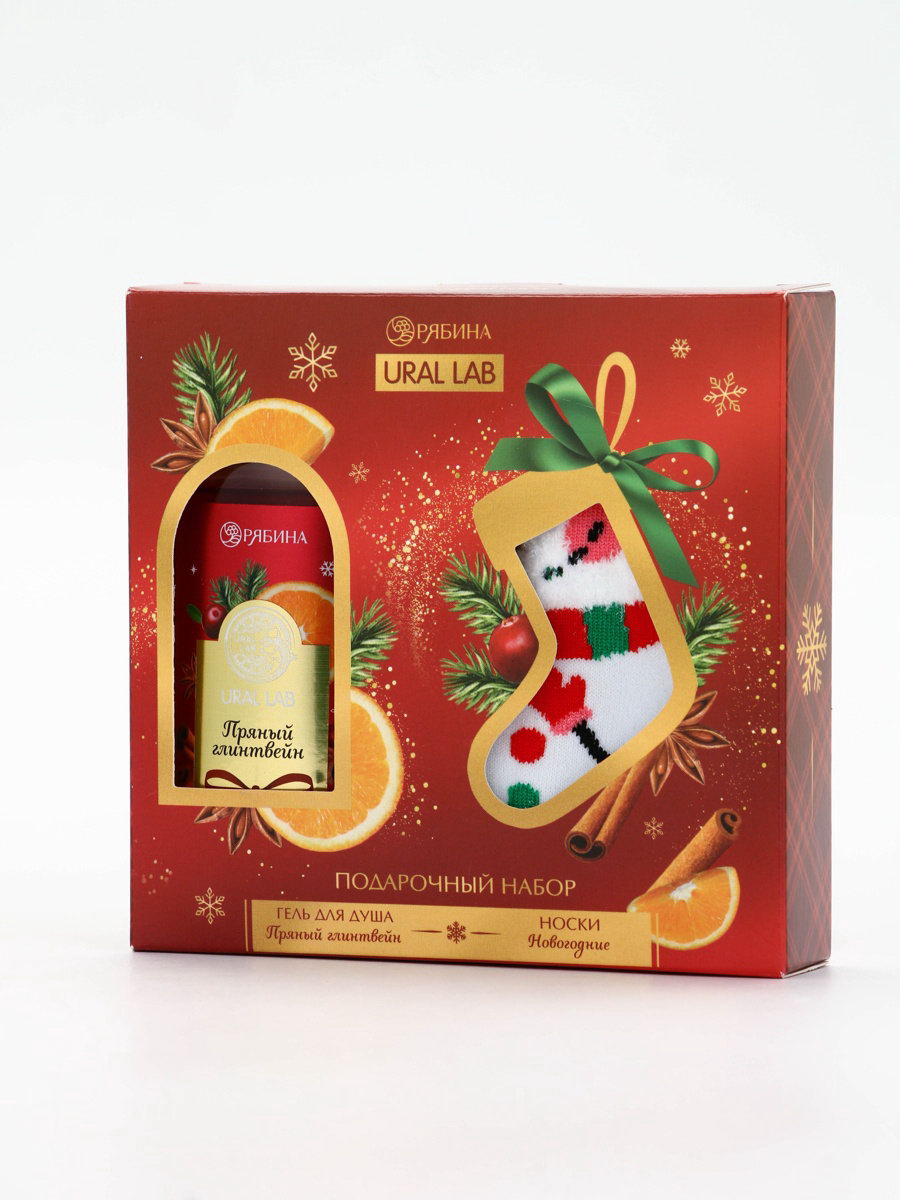 Подарочный набор новогодний "Ароматы праздника", гель для душа, глинтвейн, 100 мл и носки, URAL LAB, Россия